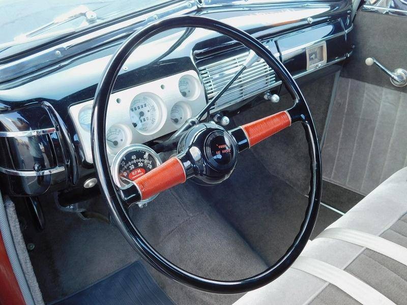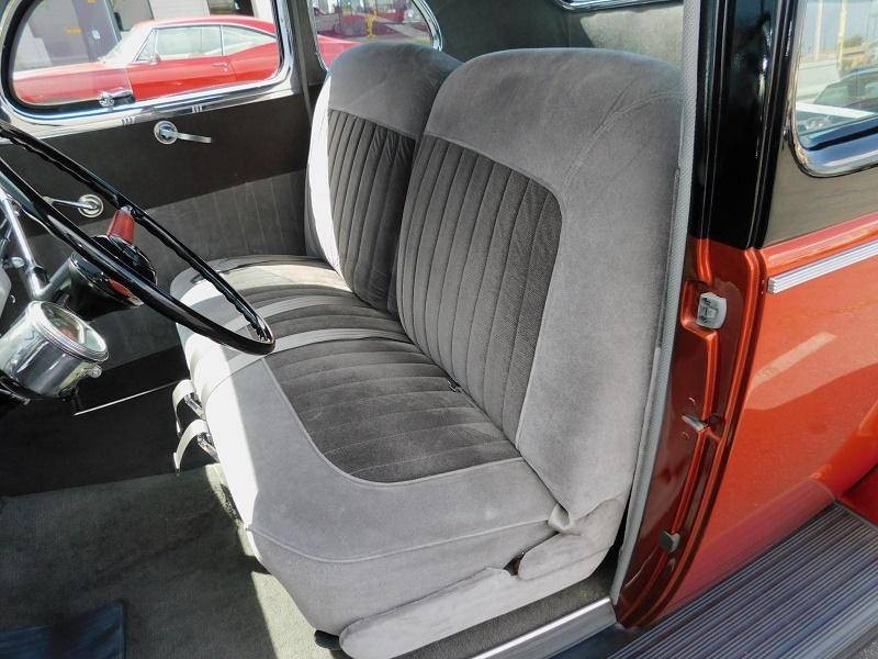 You are looking at a restored custom 1940 Ford Coupe hotrod. This restoration is not recent and has been done sometime around 2005 and comes with receipts of many upgraded parts including suspension upgrades. This quality build not only looks good but drives great with a Chevrolet 350 V8 that is connected to a Turbo Hydro 350 automatic rebuilt transmission. It also features triple Roschester carburetors, headers, camel hump heads, Mallory electronic distributor, custom brass radiator, and an MSD coil under the hood. The interior is in excellent condition and comes in two tone gray velour throughout, including the rear seat cover, and headliner. The Black dash features a custom gauge cluster done very nicely out of billet aluminum filled with VDO gauges, and also features its original steering wheel and a Sun tachometer. Other interior features include a kill switch, and custom pull start ignition. The custom two-tone Sun burnt Orange and Black exterior paint with flames up front is loud and aggressive and suites the hotrod style-build. Other exterior features include original style running boards, dual exhaust, and iconic a split rear window. This 40 sits on polished American Racing 5 spoke wheels that are wrapped in 235/70/15 BFGoodrich Radial T/A tires in the rear and 195/60/15 upfront and are stopped by disc brakes upfront and drum in the rear.