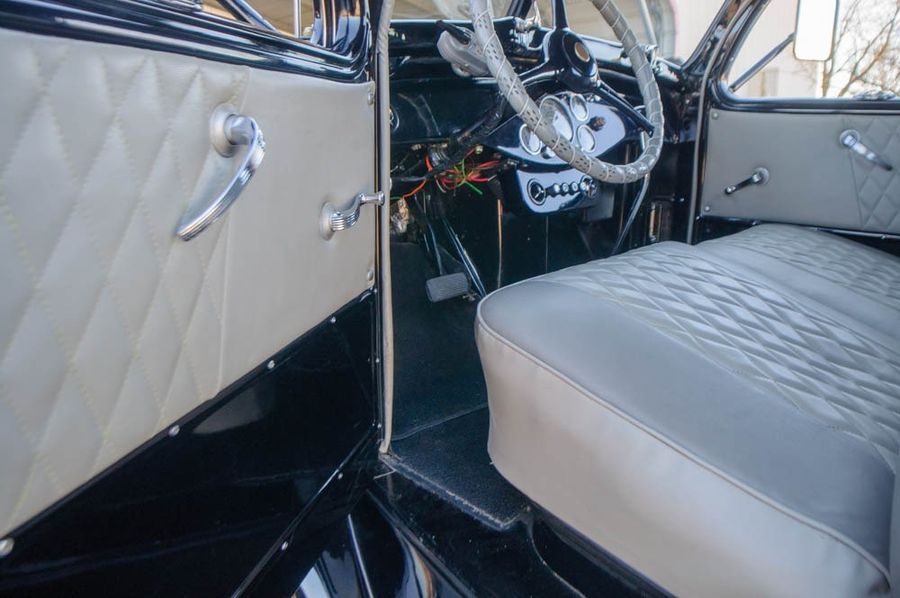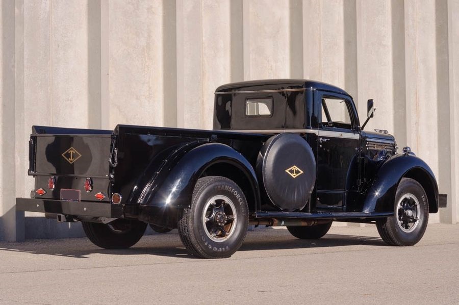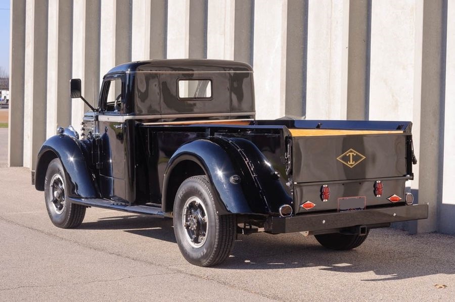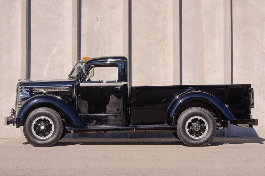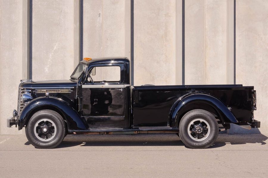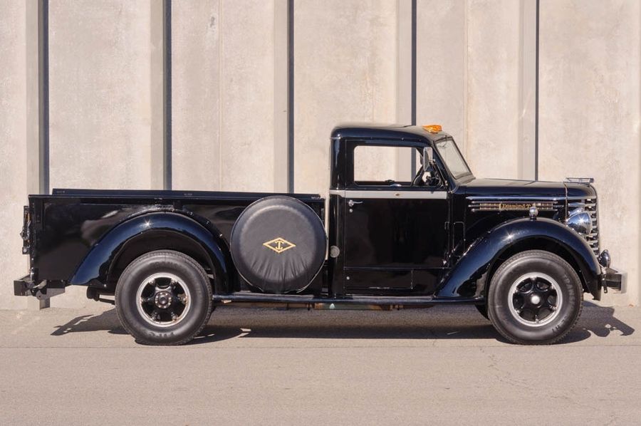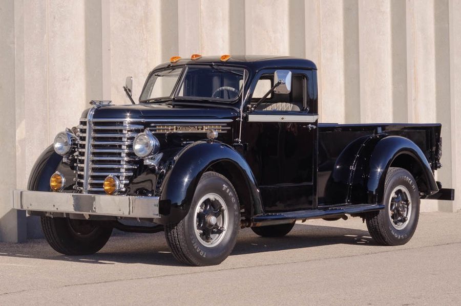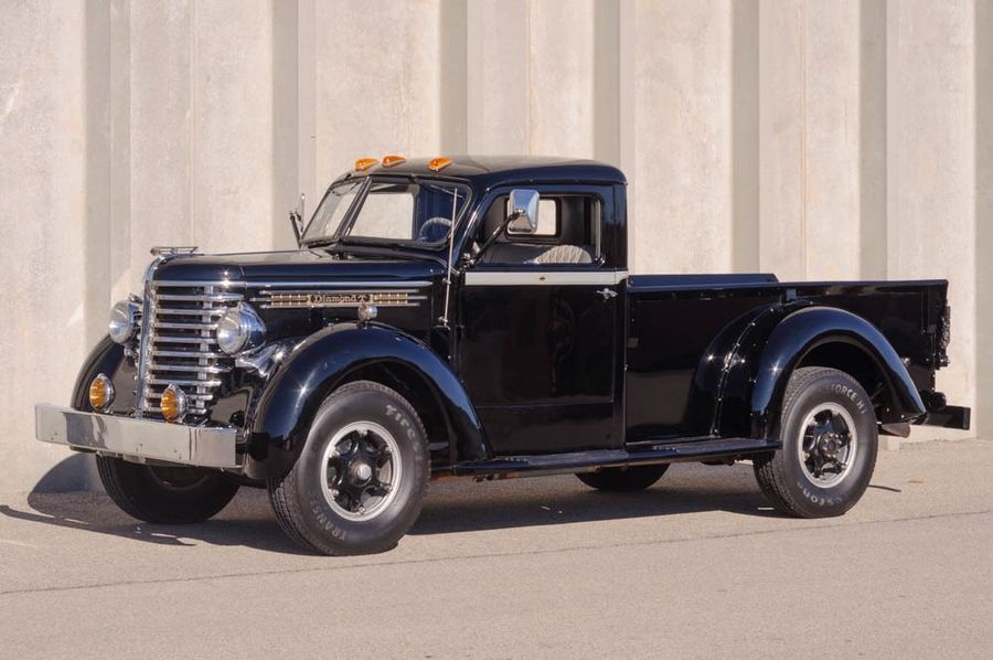 1948 Diamond T 201 One-ton Pickup Truck. Recent full restoration. Next-to-last model year for the Model 201. One of about 7,000 examples of the Diamond T 201. GM 350 CID V-8 crate engine with aluminum intake and Holley carb. 700R4 four-speed automatic transmission. Vintage air-conditioning, power brakes and split crank-out windshield. Black exterior and reupholstered gray-and-black interior with dual fold-out windshields. Original dashboard and gauges. 119-inch wheelbase and 8,000 GVWR. Side-mounted spare tire and amber fog lights If a unique classic truck with hidden modern conveniences sounds appealing, read on. It has also been upgraded with modern running gear to better cope with contemporary highway speeds. Dressed in shiny black, this truck’s paint and trim are in overall excellent condition, as expected after its restoration. The body is straight and solid, there?s a side-mounted spare tire on the passenger side, complete with Diamond T cover, a pair of amber foglights are perched over the front bumper and the cargo bed sports a wooden floor. A chrome front bumper and a black rear one fit tightly to the body. This Diamond rolls on Firestone Transforce HT tires, size 235/85R16 at every corner and each tire is mounted to a black, steel wheel. The tires and wheels are all in very good order. It has a 119-inch wheelbase and an 8,000 GVWR, signifying that even Diamond?s light-duty trucks were made for heavy-duty work. Under the hood is a GM 350 CID V-8 engine backed by a 700R4 four-speed automatic transmission. This trusty combination allows this Diamond T to keep up easily with modern traffic. Driver convenience features include vintage air-conditioning, power brakes and a split windshield with separate crank-outs for each pane. Inside, the gorgeous black and gray cab has a gray split bench seat, black carpet and a gray headliner. A black, three-spoke steering wheel with a gray wrap echoes the rest of the interior?s tone, as do the black and gray inner door liners and the black metal instrument panel with the gorgeous original center-mounted gauges but the fuel gauge works intermittently and the horn, wipers are inoperable. Crank-out windshield panes and a floor-mounted shifter complete the interior.