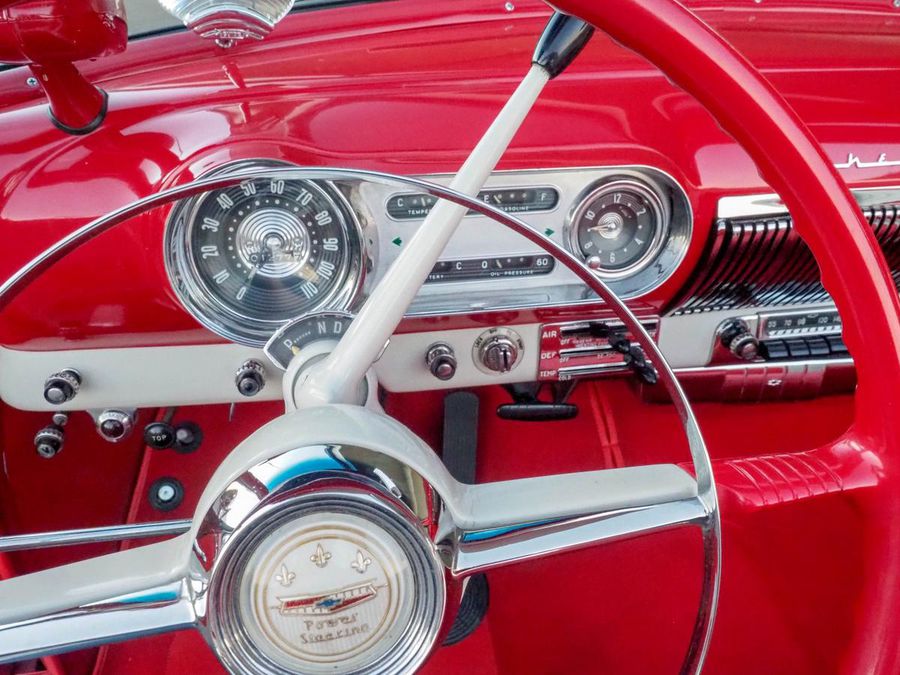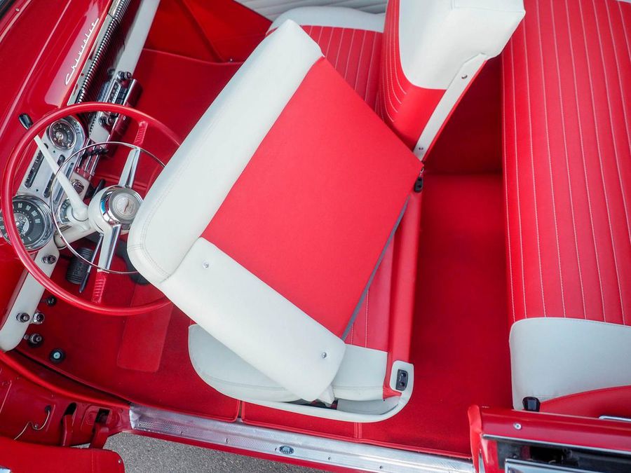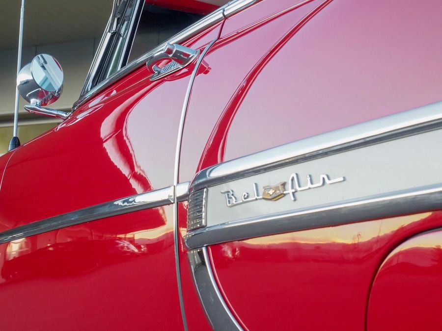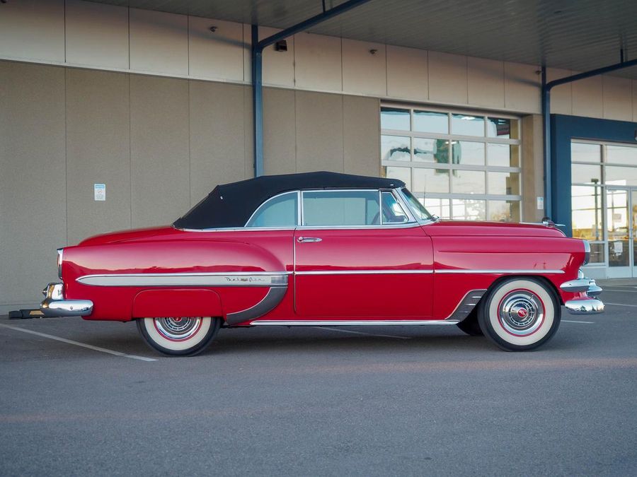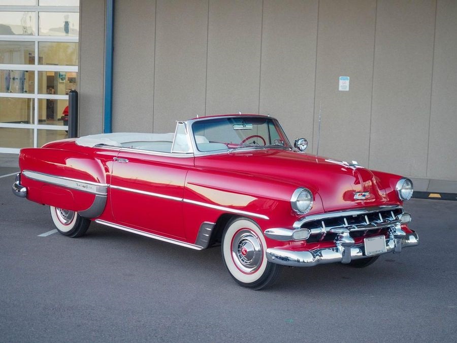 Beautifully restored 1954 Bel Air Convertible: Highly optioned example, Blue Flame 235 inline 6 engine, Powerglide automatic, Power steering, Power brakes, Power front windows, Power bench seat, Power black convertible top, Spotlight, Spare tire and jack, Original style radio, Older whitewall tires.