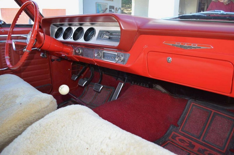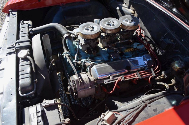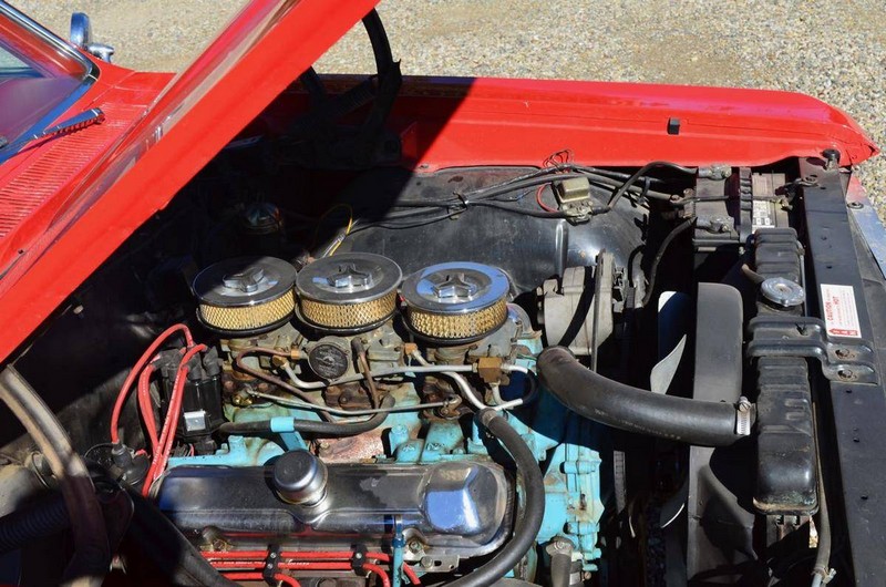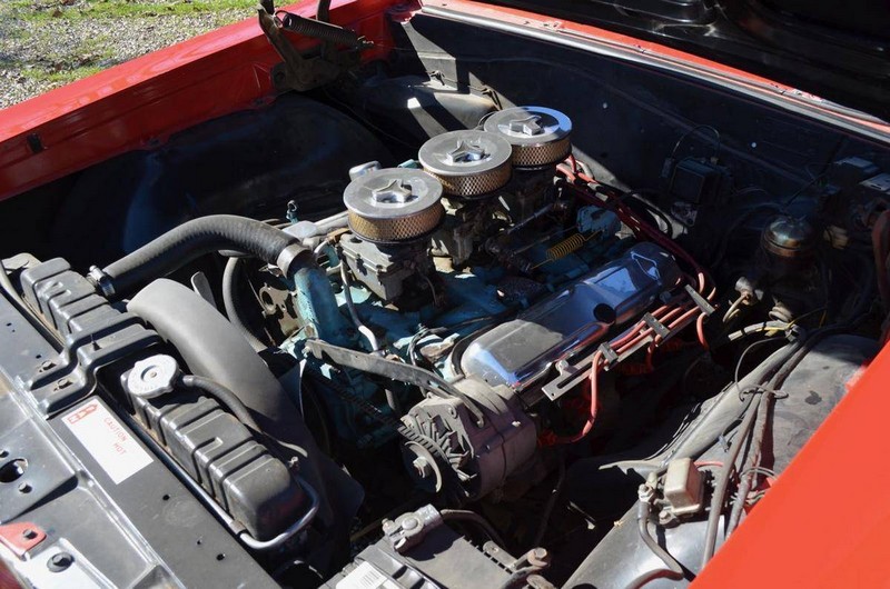 The odometer reads an incredible 21,297 original miles since new. Power is provided by by a 389 V/8 with Tri-Power matched to a factory 4-speed standard transmission. Factory Vinyl interior upholstery is outstanding. Interior hardware, control levers, handles, dashboard, garnish moldings, steering wheel, dash pad, seats, doors, panels, headliner plus sun visors are rated #2 (Excellent). Back seating appears to be rarely if ever sat-in. The spare tire including tools are still mounted in the trunk.