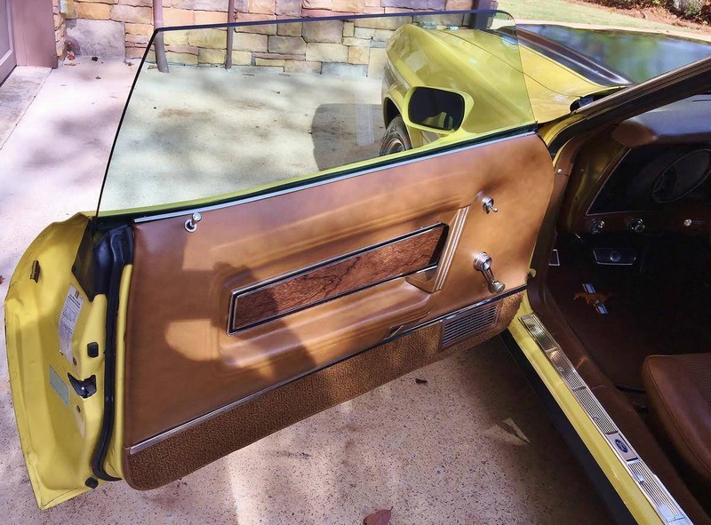 The car has front and rear spoilers, as well as side stripes and the “Tu-tone Hood,” complete with a NASA style scooped hood painted with the correct matte black finish and sporting functional hood locks. It also has a dual exhaust system with the correct H pipe, mufflers, and turn downs, a honeycomb rear panel, and an NOS pop open gas cap. The factory copper color was changed to its’ current (and more desirable) color of Medium Bright Yellow.