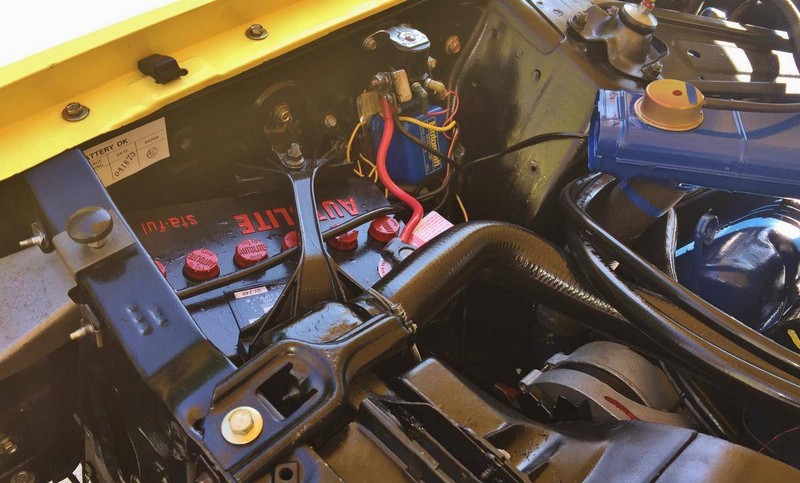 Open the trunk and you will find the correct splatter paint, a new trunk mat, the correct scissors jack, lug wrench, spare tire, and mounting hardware. This car even has a new top boot with its’ original born with top boot bag!