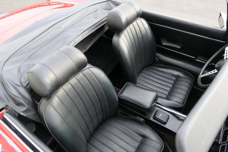 This color combination shows so well for the Jaguar E-Type. Paint is in great shape. Body-lines all align nicely. Owners manual. Air conditioning and power steering. Tools and jack set. Car has always been serviced. She is ready for a new home and tons of enjoyment for the new owners.