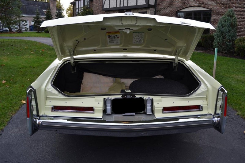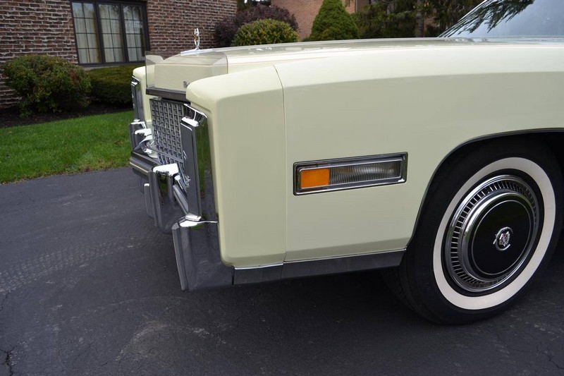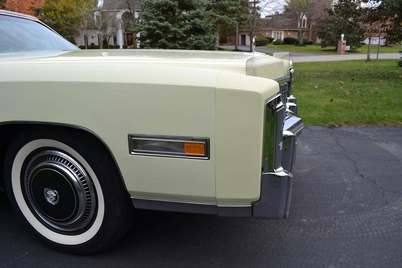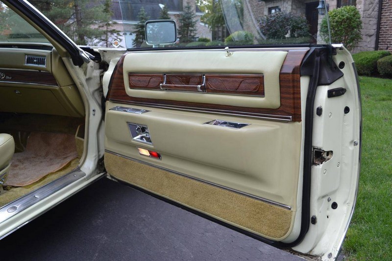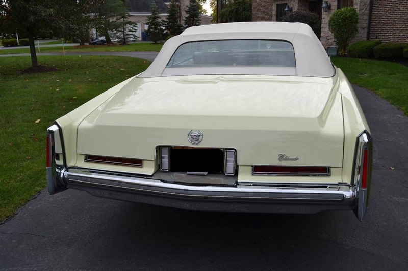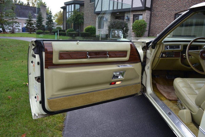 The phoenician ivory paint (code 52) is completely original and the car has never been in an accident. The white top (code A) is original and has never been down. The leather upholstery (trim 532 light ivory-gold) is in as new condition. The original carpeted front full piece floor mat has always been covered. The backseat has rarely been used. The tires are the original replacement Uniroyal tires which were replaced by the manufacturer in the late 1970s as the Uniroyal original equiptment tires all suffered from problems with the steel belts. The trunk is unused. The convertible top boot is original and has never been put on the car. The spare is a new American classic tire with the correct 1.6 inch whitewall.