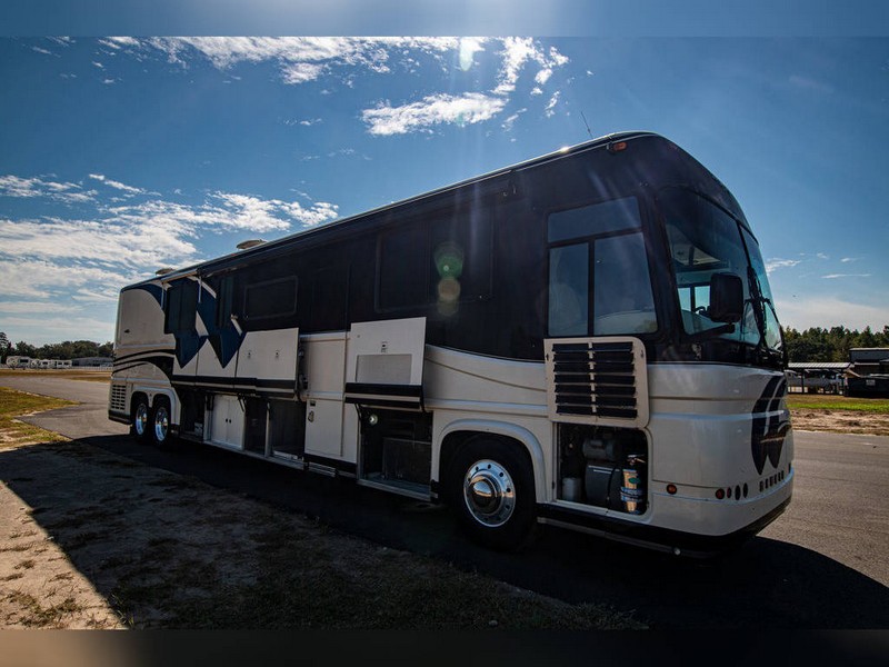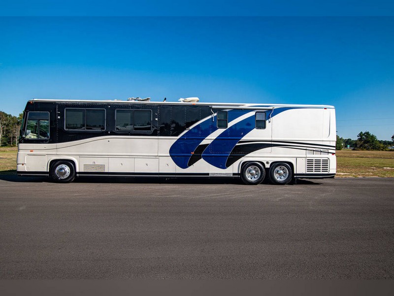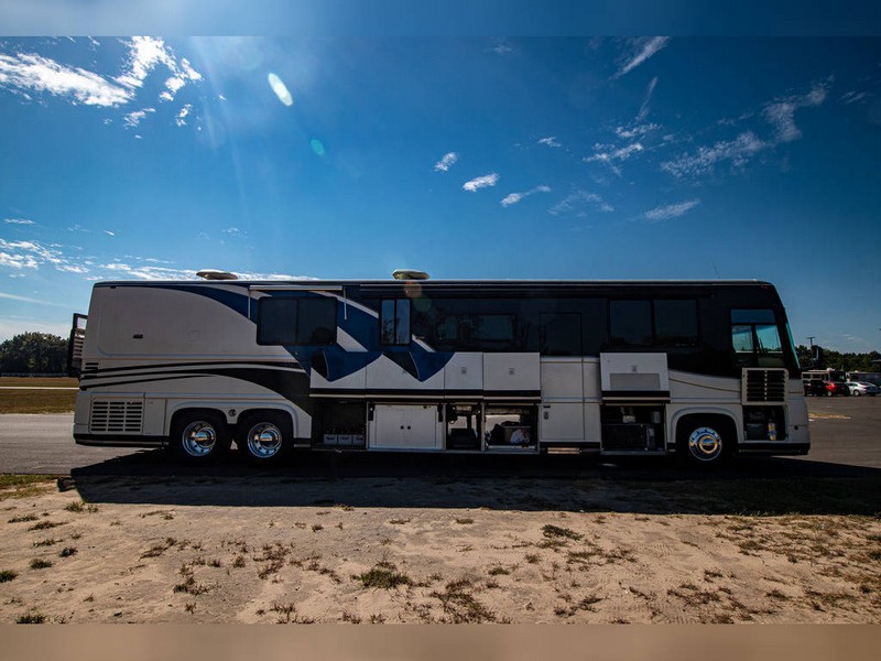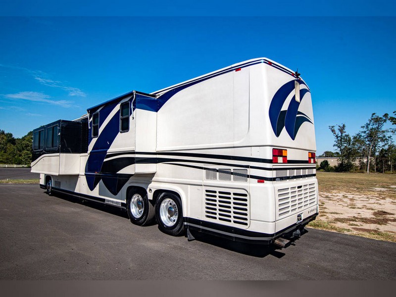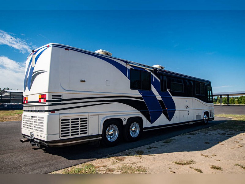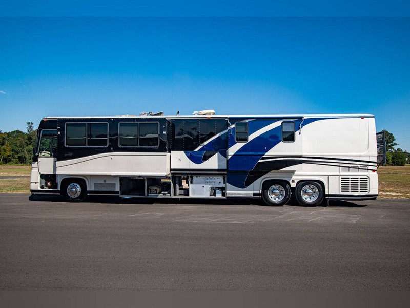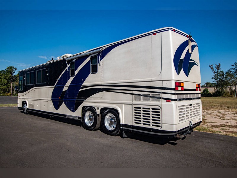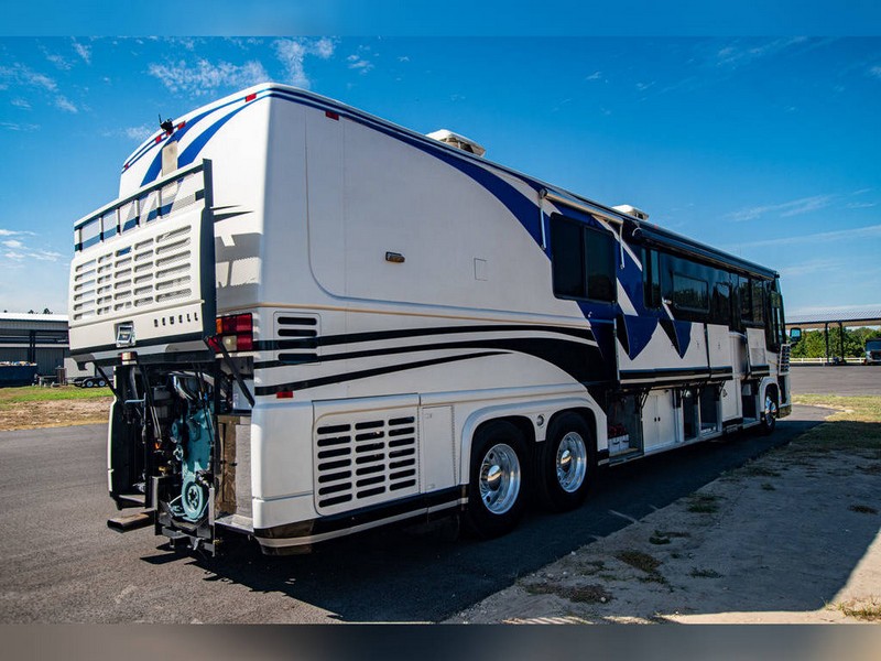 This 45′ bath and 1/2 Newell Bus Could Easily Pass For A Much Newer Model! Very Well Designed And Maintained. This Coach Has Aqua-Hot Diesel Fired Hydronic Heat, A Big Detroit 4 Cycle 500 HP Turbo Diesel with A “Jake” Brake And A 6 Speed Allison Heavy Duty Bus Transmission. The Fit And Finish Of The Body And Interior Cabinets Leaves No Doubt That This Is The Top Rung Of The RV Ladder.