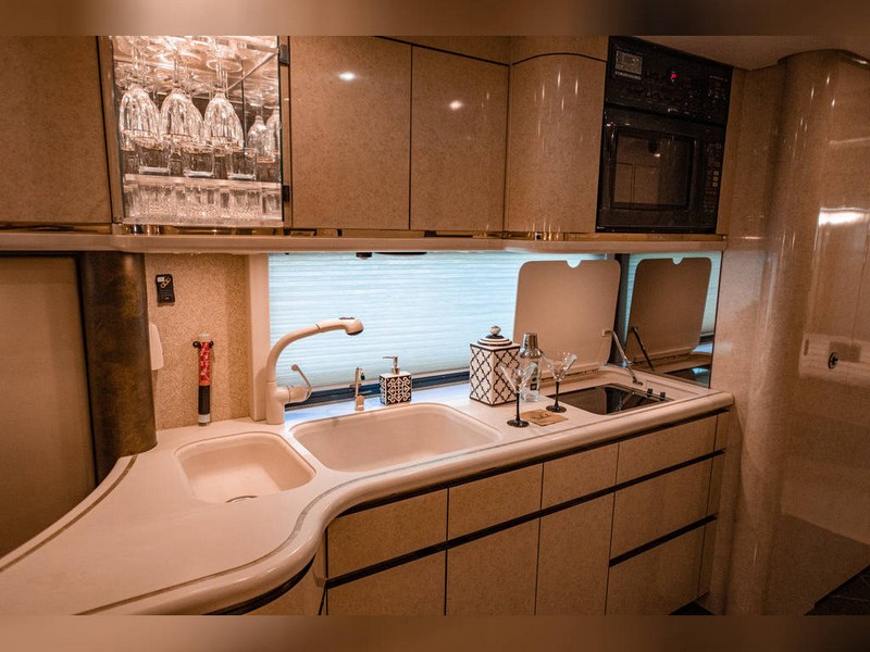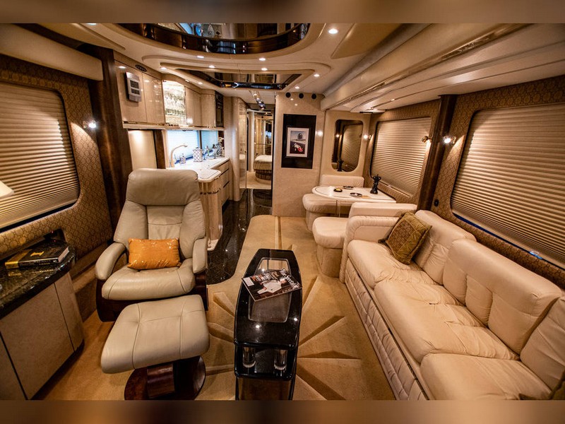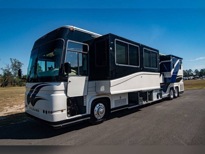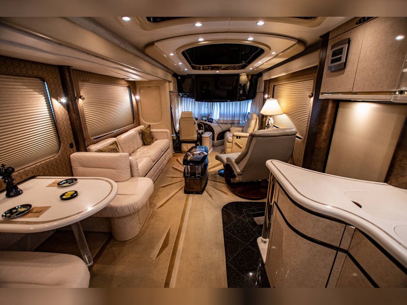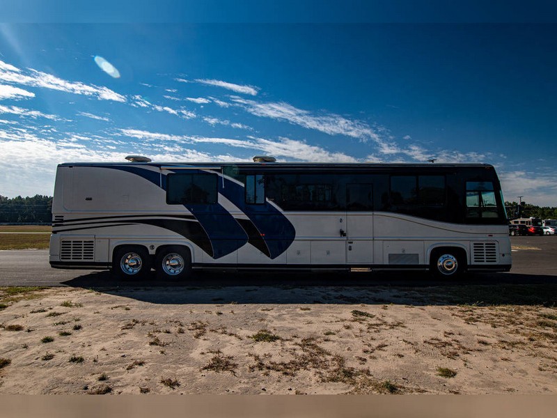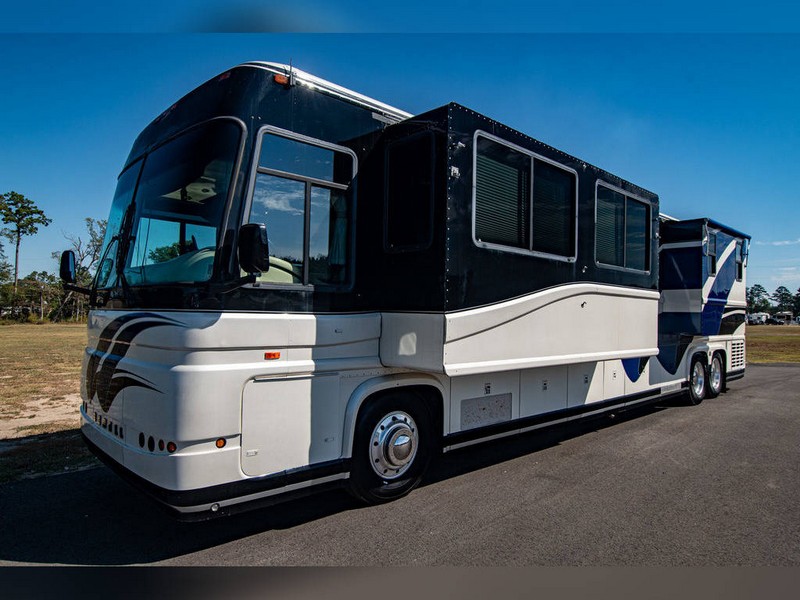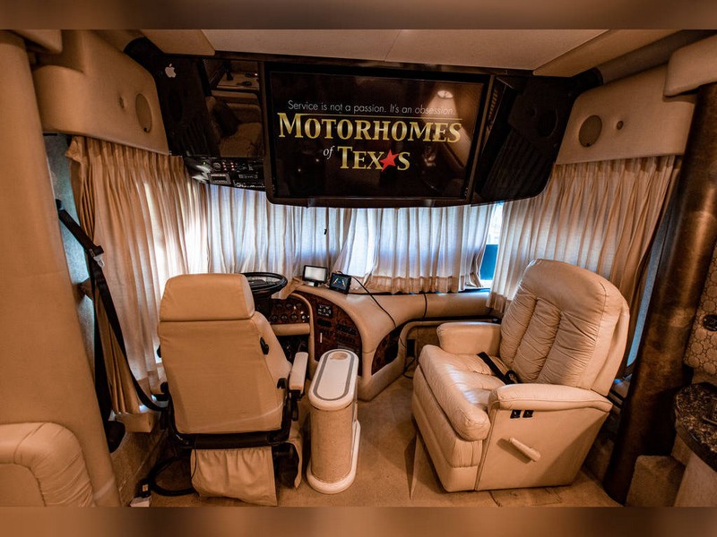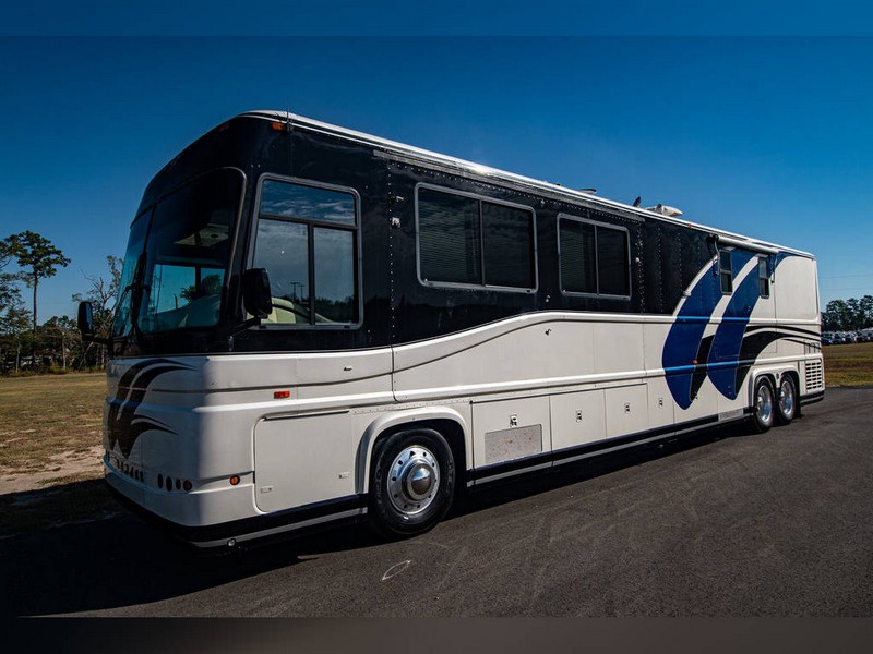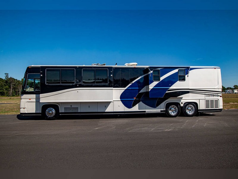 This 45′ bath and 1/2 Newell Bus Could Easily Pass For A Much Newer Model! Very Well Designed And Maintained. This Coach Has Aqua-Hot Diesel Fired Hydronic Heat, A Big Detroit 4 Cycle 500 HP Turbo Diesel with A “Jake” Brake And A 6 Speed Allison Heavy Duty Bus Transmission. The Fit And Finish Of The Body And Interior Cabinets Leaves No Doubt That This Is The Top Rung Of The RV Ladder.