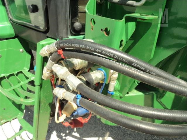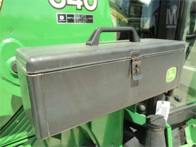 1310 HOURS, CAB/HEAT/AIR/RADIO, 2 HYD, 540 PTO, 15.5X38 @ 95%, 10.00-16 @ 95%, JOHN DEERE 640 QUICK TATCH LOADER, w/84″ QUICK TATCH BUCKET, FRONT WEIGHT BRACKET, 2 SETS REAR WEIGHTS, HOOD GUARD, 16 SPEED PQ w/ LEFT HAND SHUTTLE SHIFT, EXCELLENT SEATS & INTERIOR, TOOL BOX.