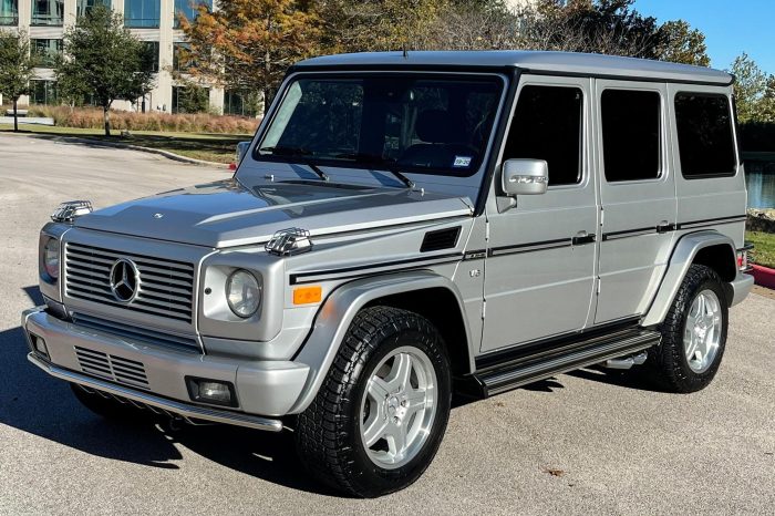 THIS… is a 2004 Mercedes-Benz G55 AMG, finished in Brilliant Silver with an Anthracite interior. No accidents or mileage discrepancies in this Mercedes-Benz’s past. Factory equipment includes 18-inch AMG wheels, solid front and rear axles, triple locking differentials, Designo Nappa leather upholstery, heated front seats, a heated steering wheel, and more as detailed below. Modifications reported by the seller include the installation of Koni adjustable shocks, springs from a 2011 G55, and a new suede headliner. Mercedes-Benz joined forces with Steyr-Daimler-Puch to create the original G-Class (W460). It was released in 1979 and aimed largely at farmers and adventurers; Beverly Hills wasn’t on the company’s radar yet. The G’s upmarket ascent started when the extensively updated W463 arrived in 1990. It looked a lot like the original G, but it gained a longer list of features and a permanent 4-wheel-drive system. Civilian production ended in 2018. Power comes from an AMG-built 5.4-liter V8, rated at 349 horsepower and 387 lb-ft of torque.