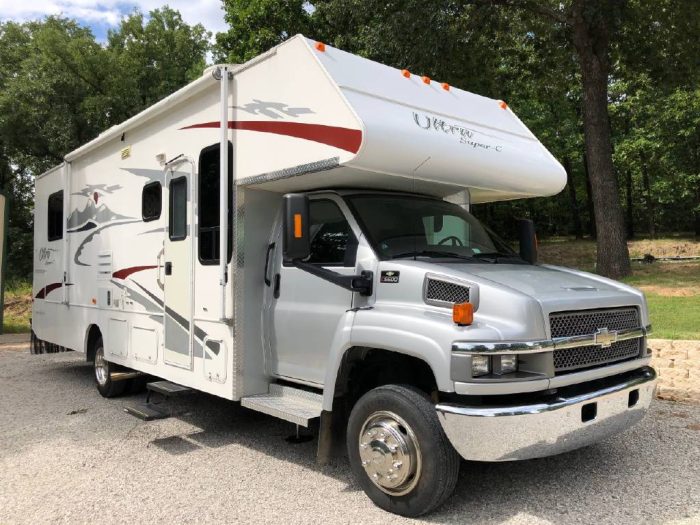 This Ultra Super C motorhome, by Gulf Stream, is in excellent condition and has a single super slide, queen bed in the rear with a wardrobe, custom dual leather recliners across from the swivel chair. Next to that is a 4 seat dinette. The overhead bunk area has a queen size sleep by number bed. The kitchen offers a stove, microwave with convection, refrigerator, and plenty of storage!