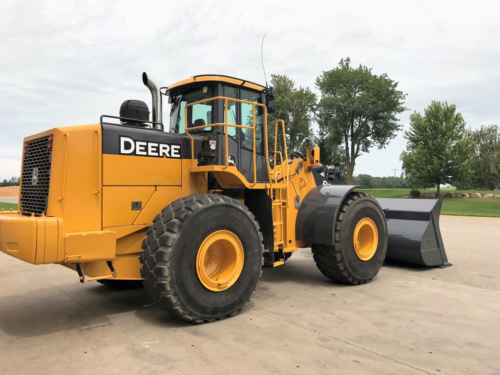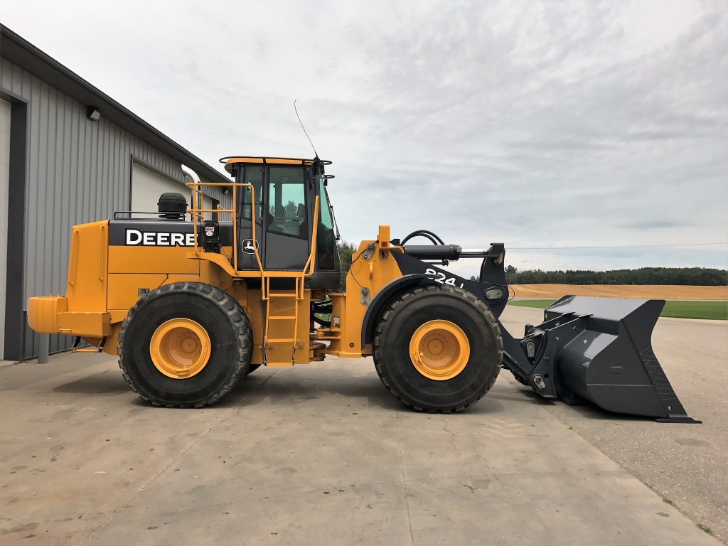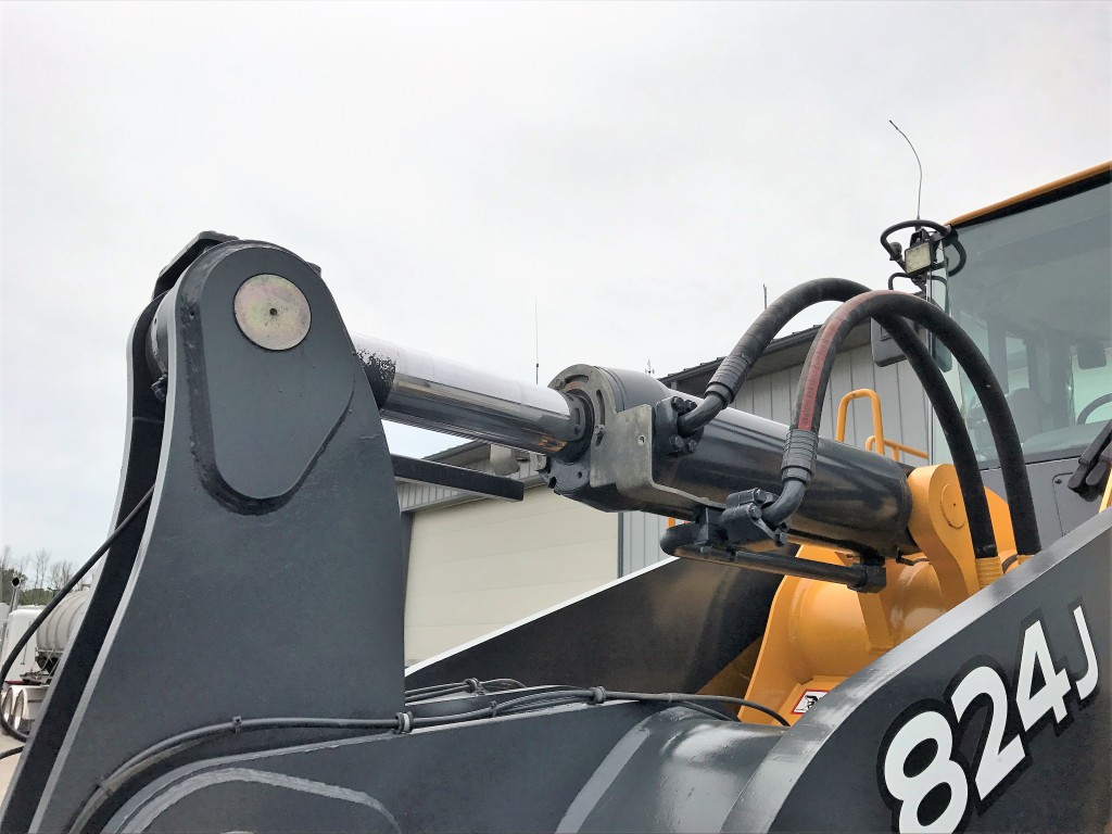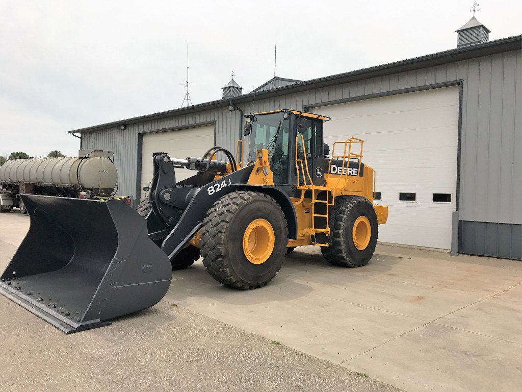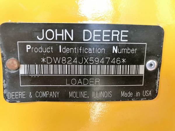 2005 John Deere 824J Wheel Loader, John Deere 6125H 275 HP Diesel Engine with 11,798 Hours, Rubber is 90% Fronts, 75% Rears, JRB Quick Tach Coupler with 6 Yard General Purpose Bucket, Lincoln Auto Grease System, Extremely Clean with Complete New Paint Job.