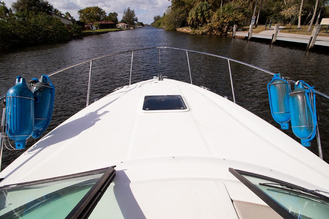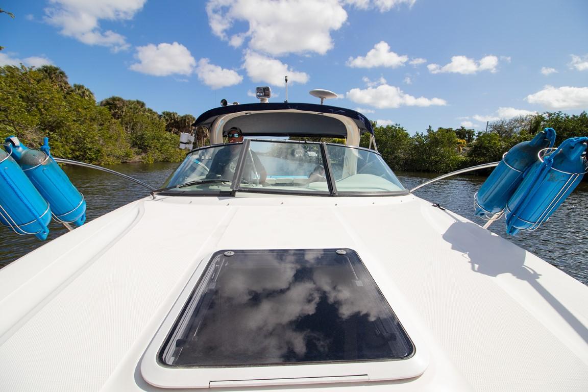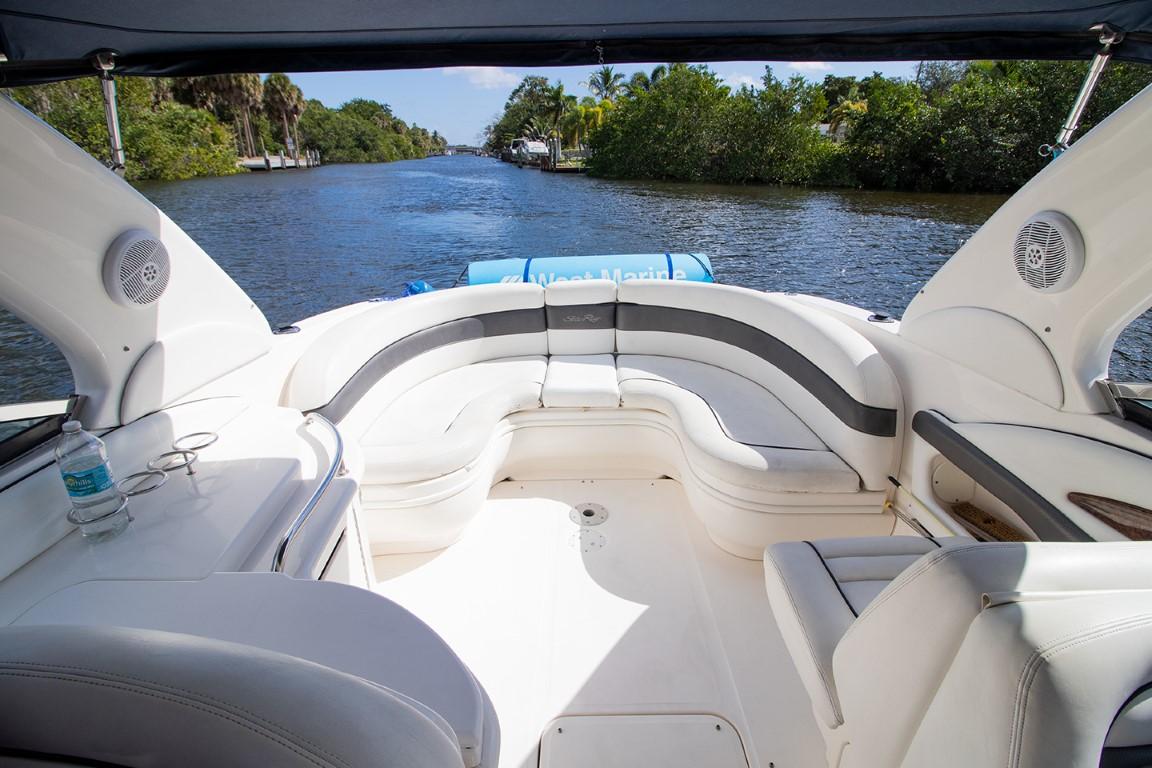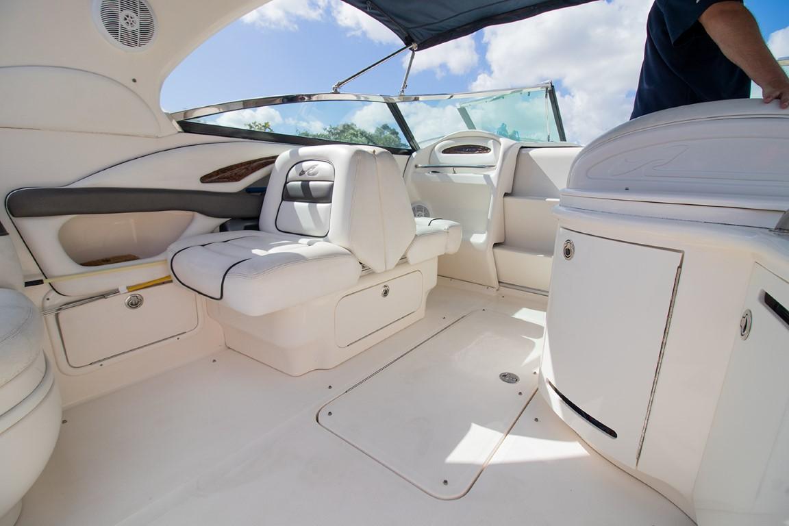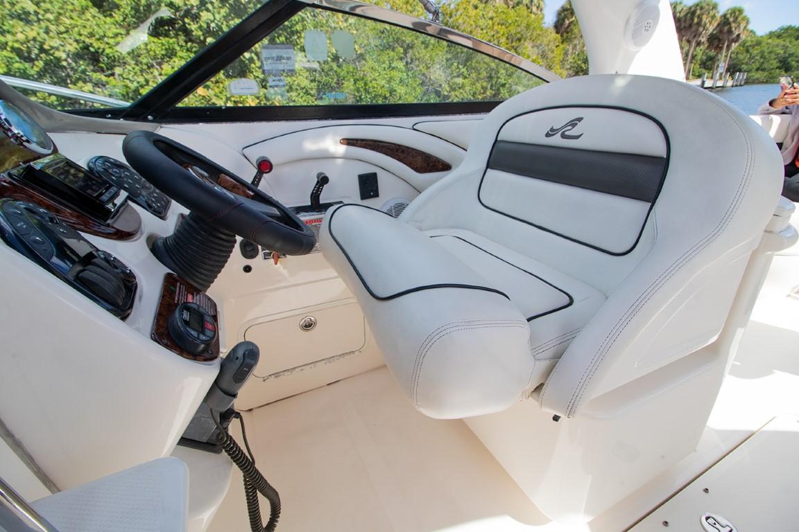 Other features on this vessel are trim tabs, vhf radio, extended swim platform, snap on cover, sub w/amp, bimini top, shore power, battery charger. windlass, extended swim platform with extension, boarding ladder & aft cooler, cockpit shower, and double wide adjustable helm seat with thigh bolster & storage below.