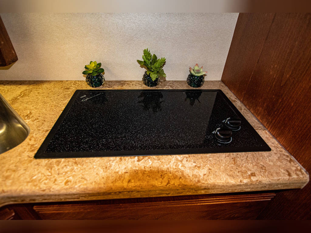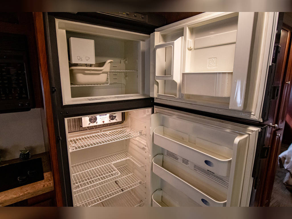 Ice maker in refrigerator freezer Filtered Drinking and Ice Maker Water 2 15,000 BTU Ducted Roof A/C’s 2 Burner Surface Mount Electric Cook Top 2 Door Dometic AES Refrigerator