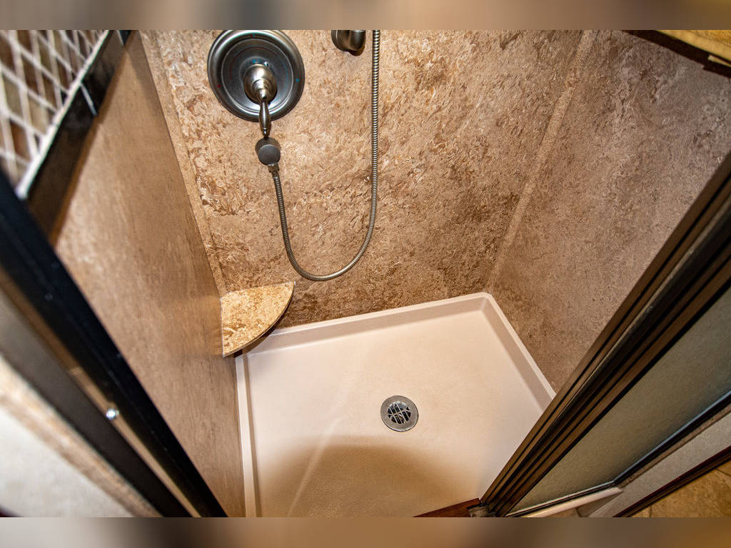 Air operated stepwell cover Heated bay for tanks Entry door screen Fresh Water Capacity 95 Gal. Black Water Capacity 50 Gal. Lighted Entry Grab Handle Window Awnings RS Living Room/Dinette Slide 12′ 1″ X 20″ RS Bed Room Dresser Slide 8′ X 16″ One Piece Crowned Fiberglass Roof