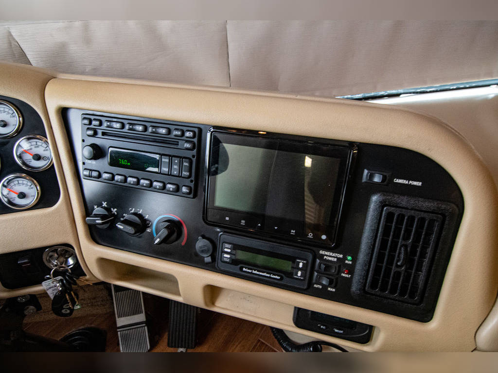 All wheel air disc ABS brakes 8 bag outboard air ride suspension “Smart” steering wheel GVWR 34,880# Automatic Traction Control Automatic Air Dryer Rear Side Mount Engine Radiator 3 8D House Batteries Tow Car Air Brake Connection