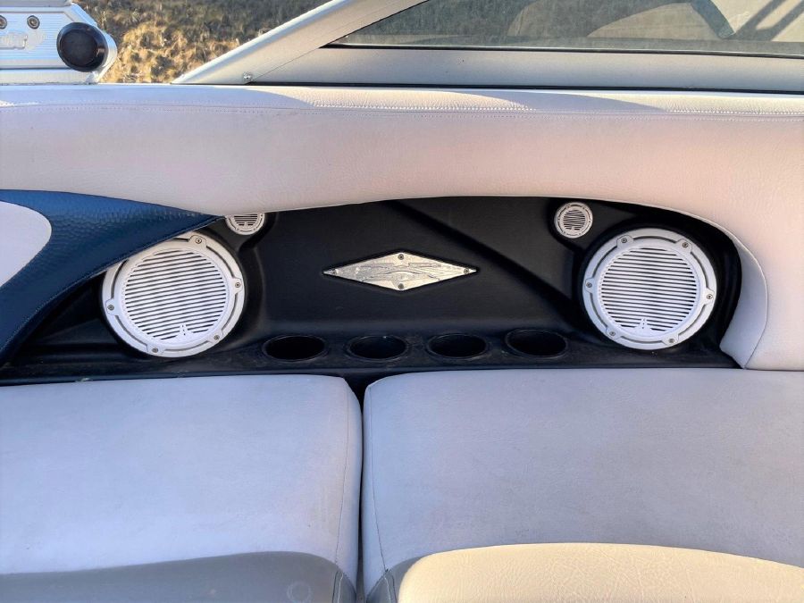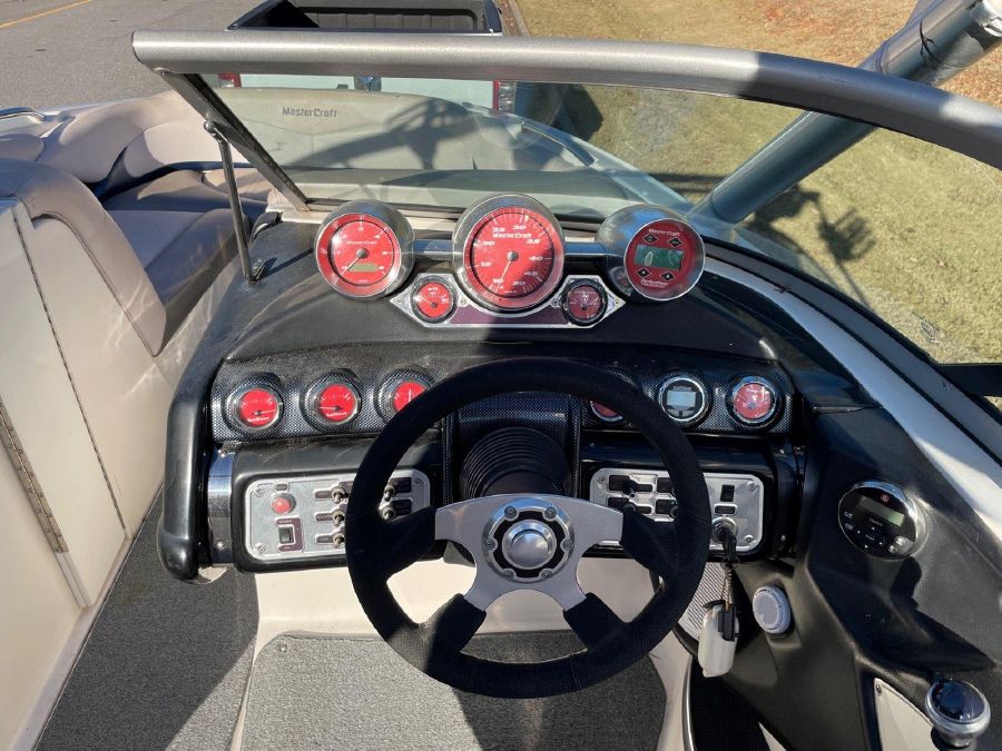 Wakeboarding enthusiasts will have a difficult time finding a more accommodating boat than the X-Star. The boat’s unique hull deserves much of the credit for both the exhilarating wake and the comfortable ride of the boat. The AP-1 (Anything’s Possible) hull’s four terraced chines have been designed to manipulate and enhance wake shape. Located at the helm console, the X-Pod is a bullet-shaped configuration of billet aluminum gauges that suspend the speedometer, tachometer and Perfect Pass cruise control in full view of the driver. At the center of the boat, you’ll find wrap-around seating covered in dense 34 ounce vinyl. All of the seats have storage space underneath, and the observer’s seat (opposite the driver) flips up for storage, forming a dual access compartment that is accessible from the bow or amidships. The X-Star has been the best-selling boat in MasterCraft’s 35 year history, so everyone at the company was understandably nervous about taking part in such a radical redesign, but they are confident that they have given their customers and prospective buyers exactly what they want: a no-nonsense wakeboarding boat that looks and rides like a dream.