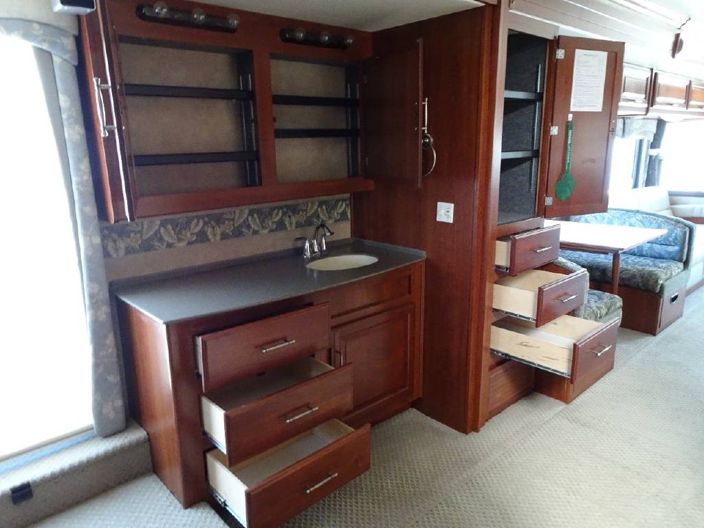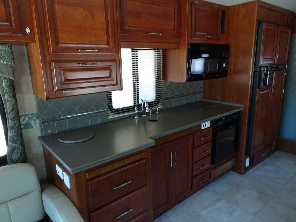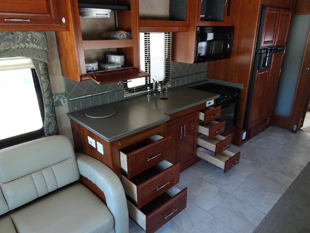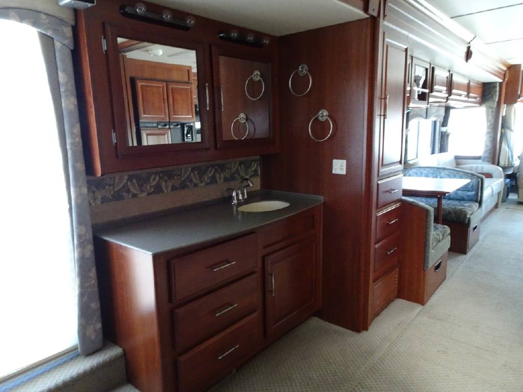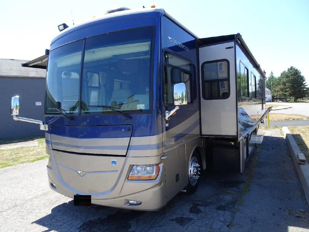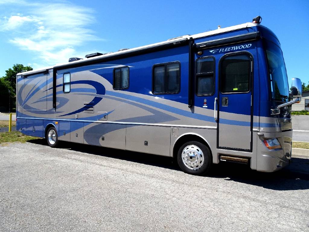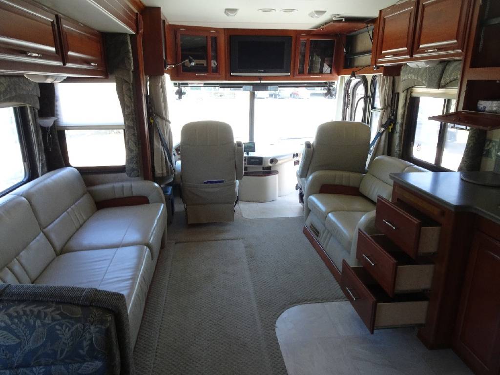 2007 Fleetwood DISCOVERY 39V, Sleeping 6, Air Conditioners 2, Slide outs 2. It has the desirable Caterpillar 330 Turbo Diesel mated to the ever reliable Allison Transmission – 30,370 miles ! Full Queen Aft berth on additional slide out for bedroom with plenty of windows for lighting and additional large view window serving as rear emergency exit. Big windows provide visibility and if not, you also have the luxury of cameras on the sides and rear while driving so you can stay safe in lane and while turning.