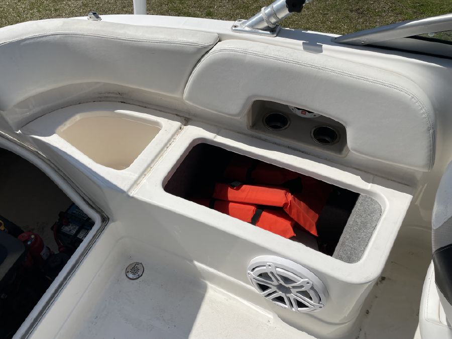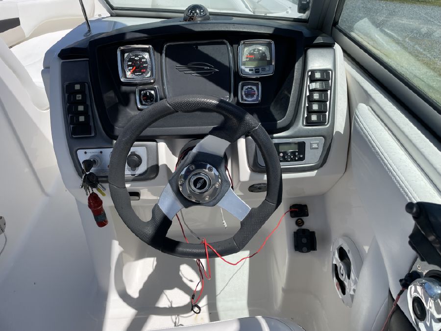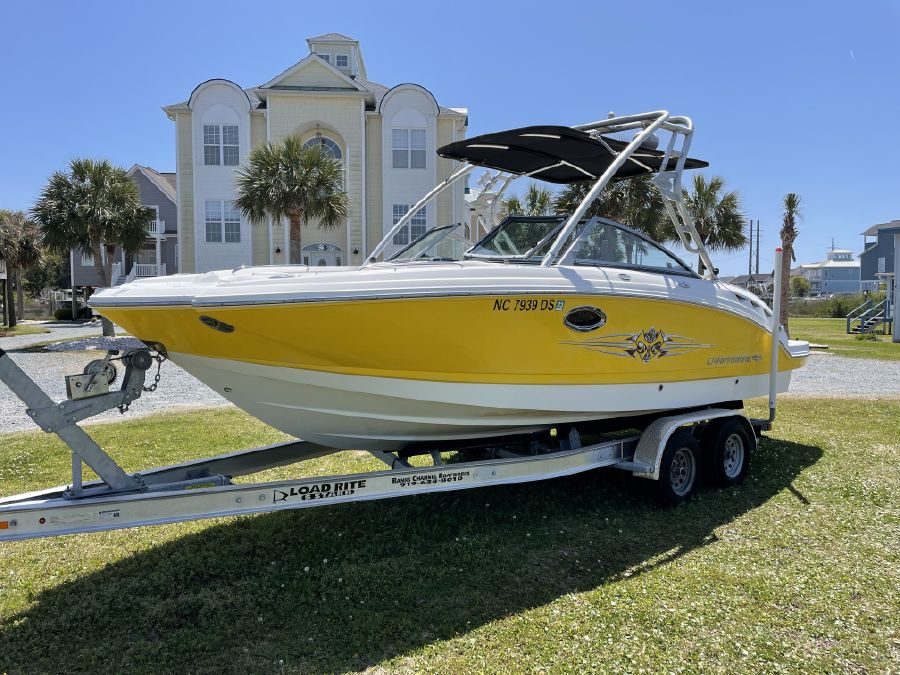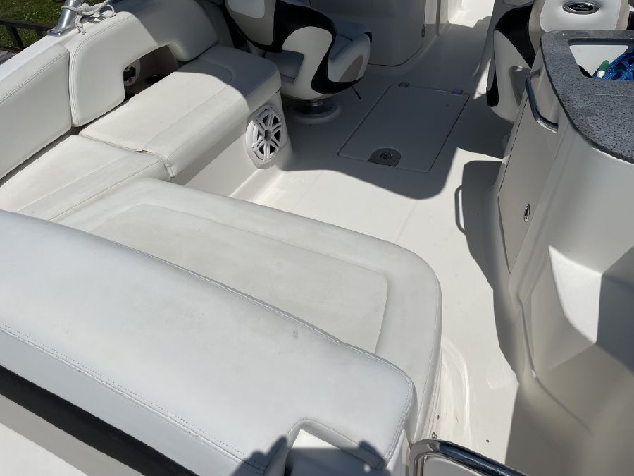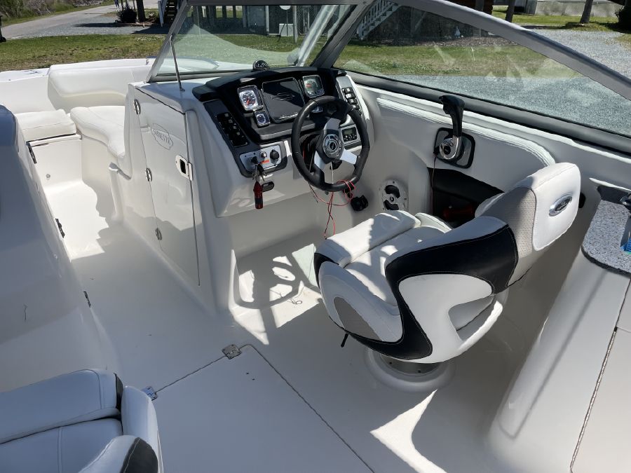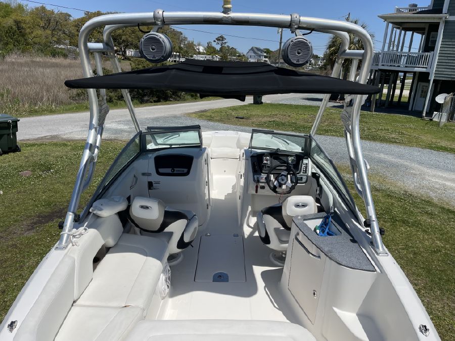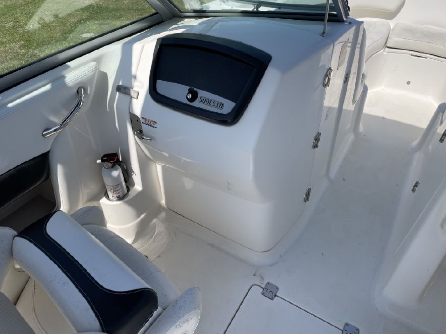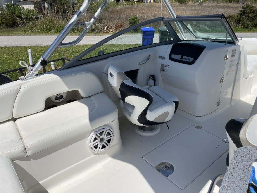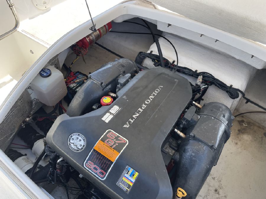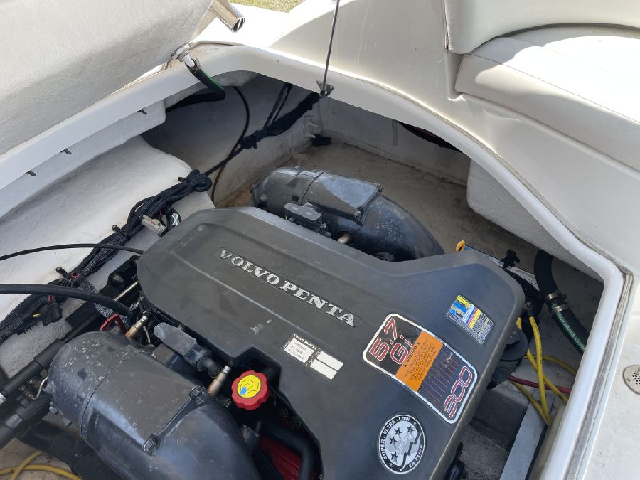 Engine has been inspected by a local mechanic, compressions are all strong 190 – 200psi. Engine has been serviced including fluids and new spark plugs. Manifolds, Risors & Elbows all have been inspection and are in great shape. Yes, this boat has been been run in saltwater, but her engine is strong and you should not hesitate to buy her because of the saltwater. Powered by a Volvo Penta 5.7 300hp engine makes this boat more than powerful when you need to get back to the dock. Wakeboard Tower and Trailer is included, plus she is equipped with all the factory goodies, it’s time to get out on the water and pull the kids or head to your favorite sandbar, secure the anchor and lower the ladder. Set up the beach chairs and put your toes in the sand. The kids are growing up so fast, so it’s time to make memories!