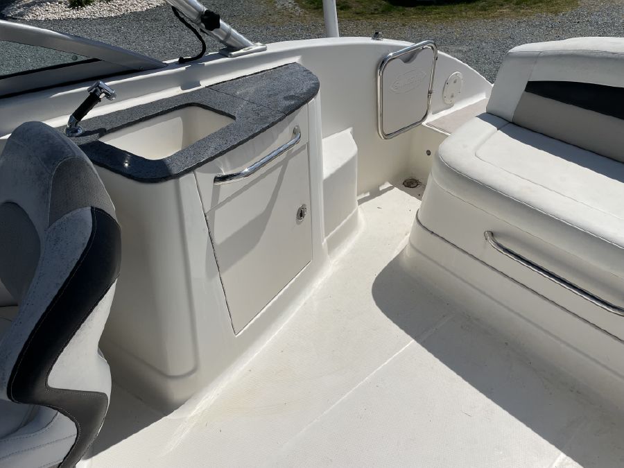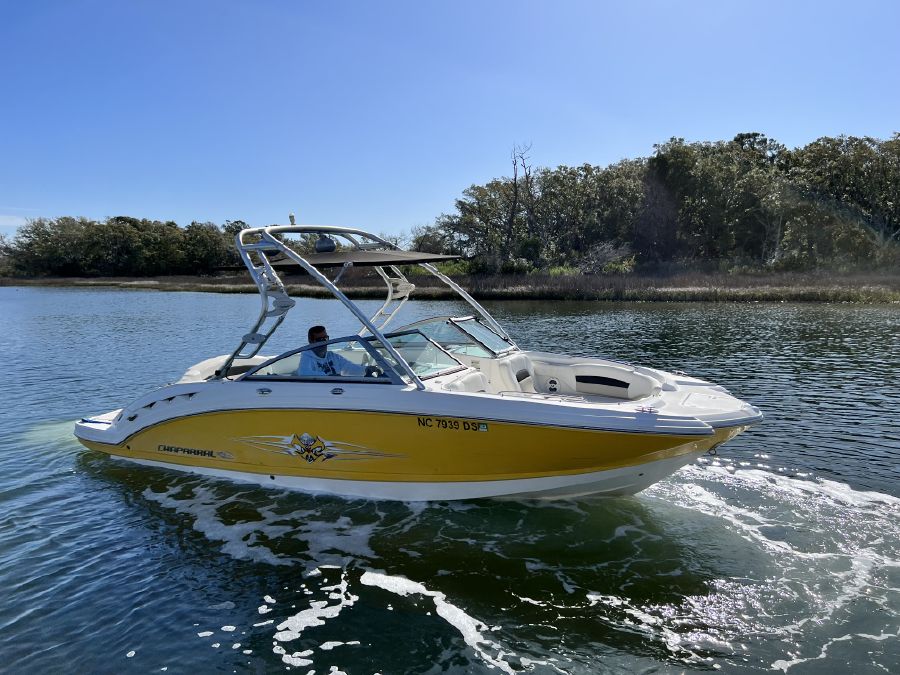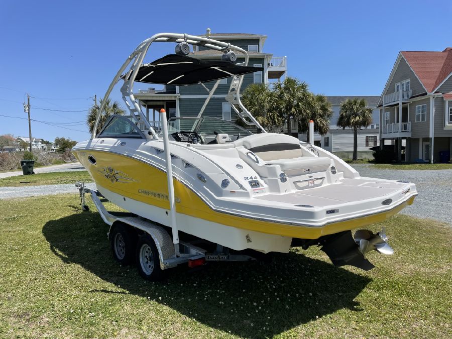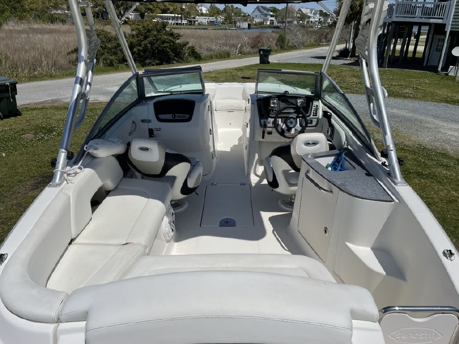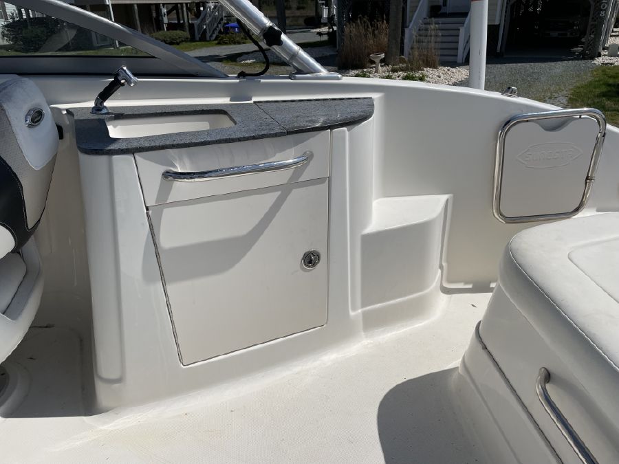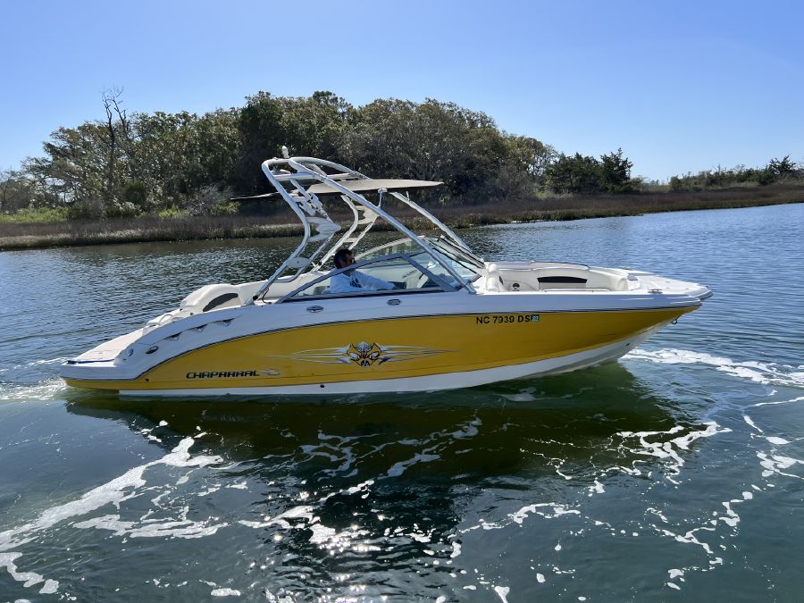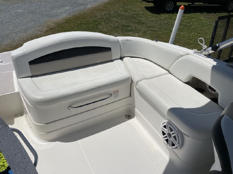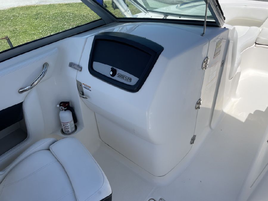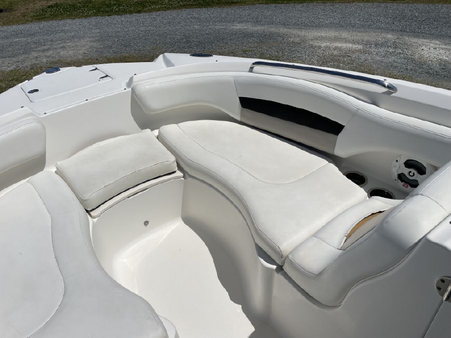 Engine has been inspected by a local mechanic, compressions are all strong 190 – 200psi. Engine has been serviced including fluids and new spark plugs. Manifolds, Risors & Elbows all have been inspection and are in great shape. Yes, this boat has been been run in saltwater, but her engine is strong and you should not hesitate to buy her because of the saltwater. Powered by a Volvo Penta 5.7 300hp engine makes this boat more than powerful when you need to get back to the dock. Wakeboard Tower and Trailer is included, plus she is equipped with all the factory goodies, it’s time to get out on the water and pull the kids or head to your favorite sandbar, secure the anchor and lower the ladder. Set up the beach chairs and put your toes in the sand. The kids are growing up so fast, so it’s time to make memories!