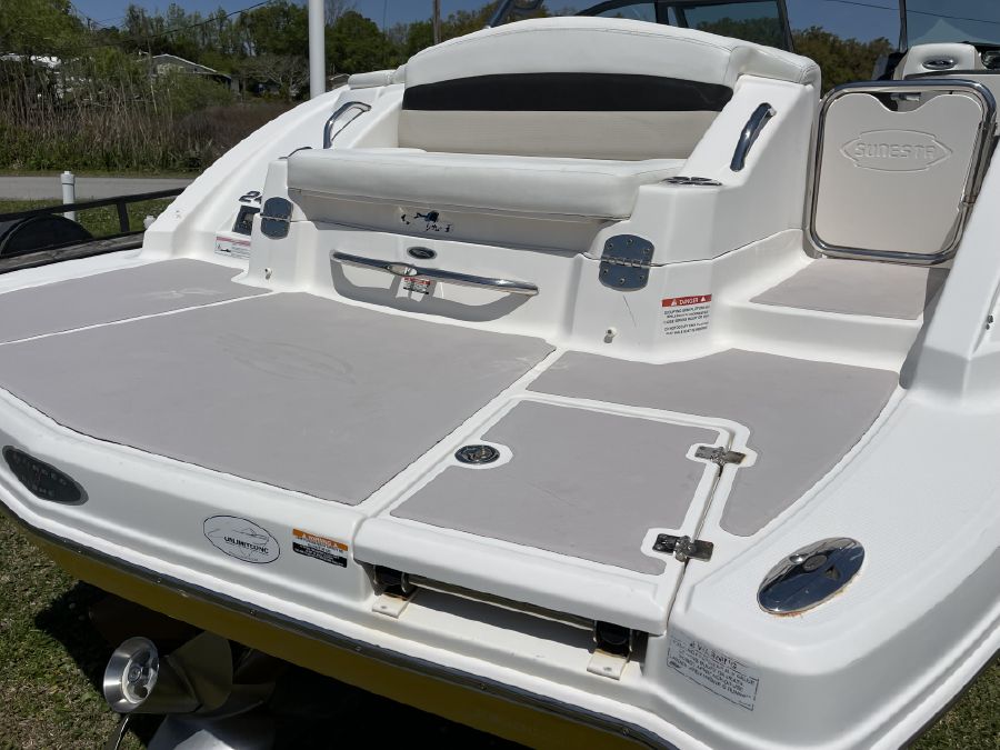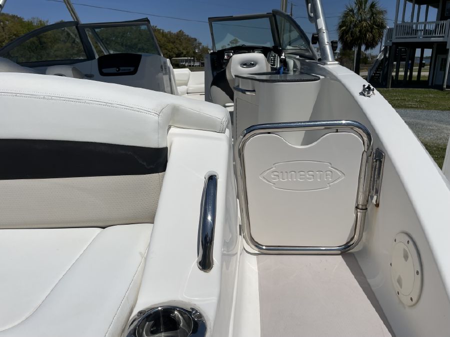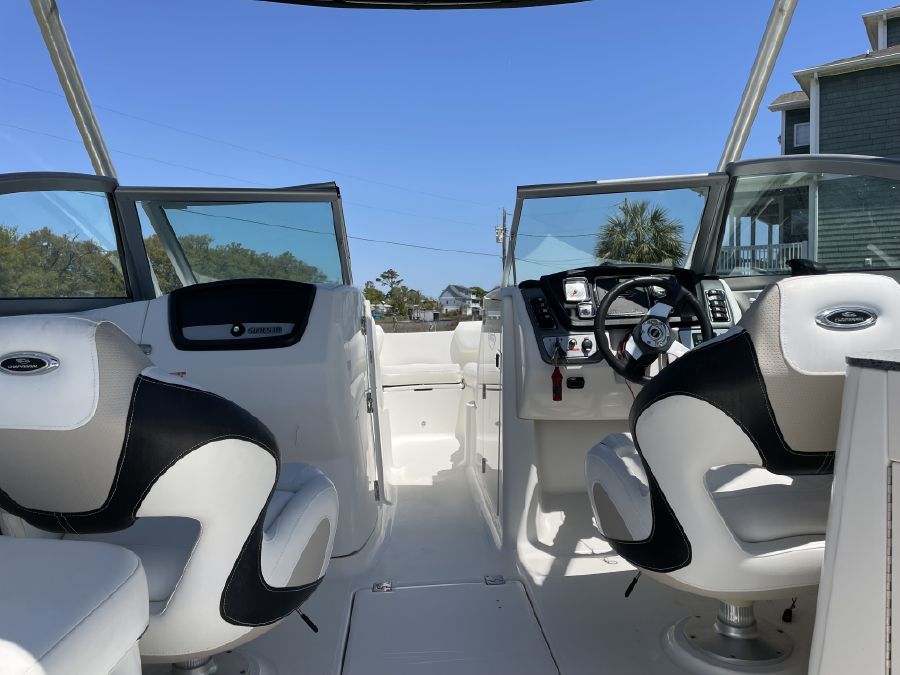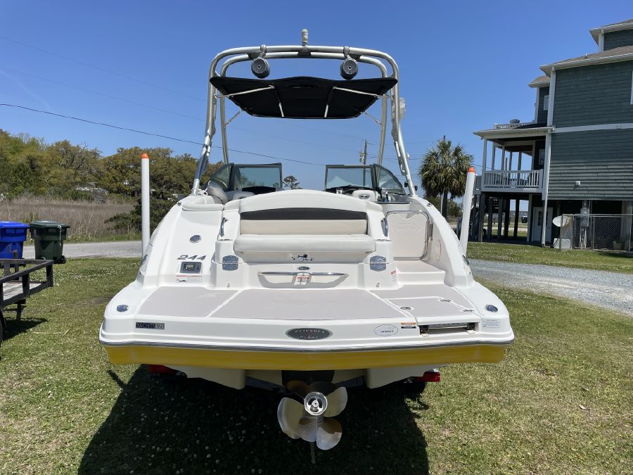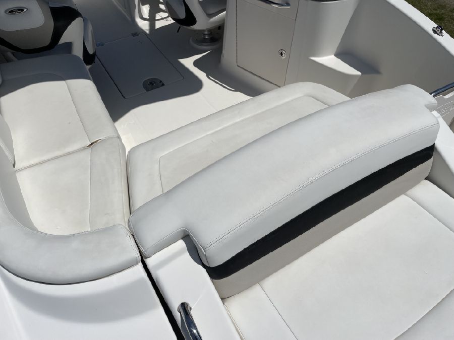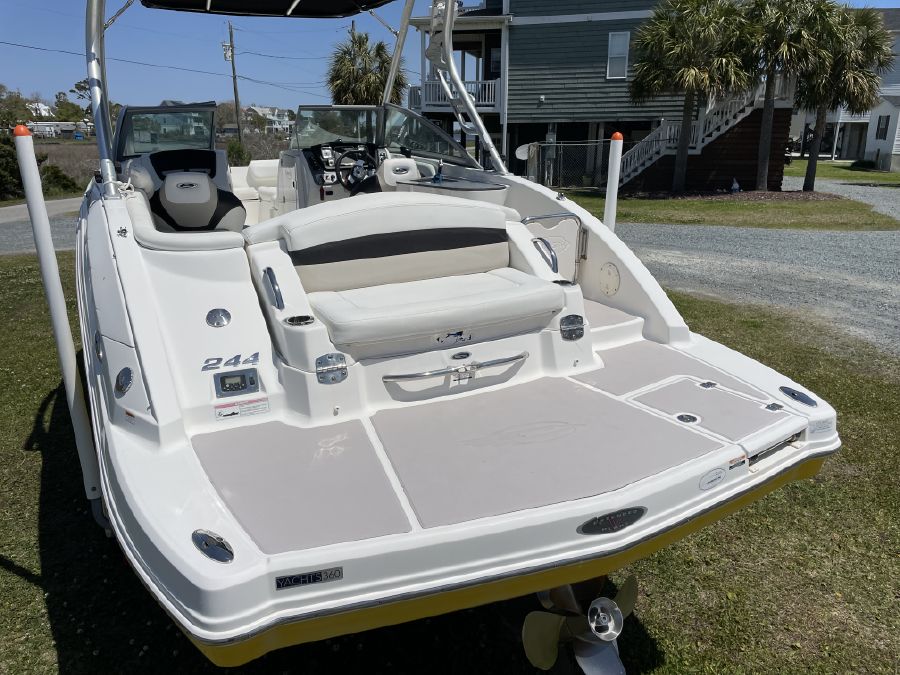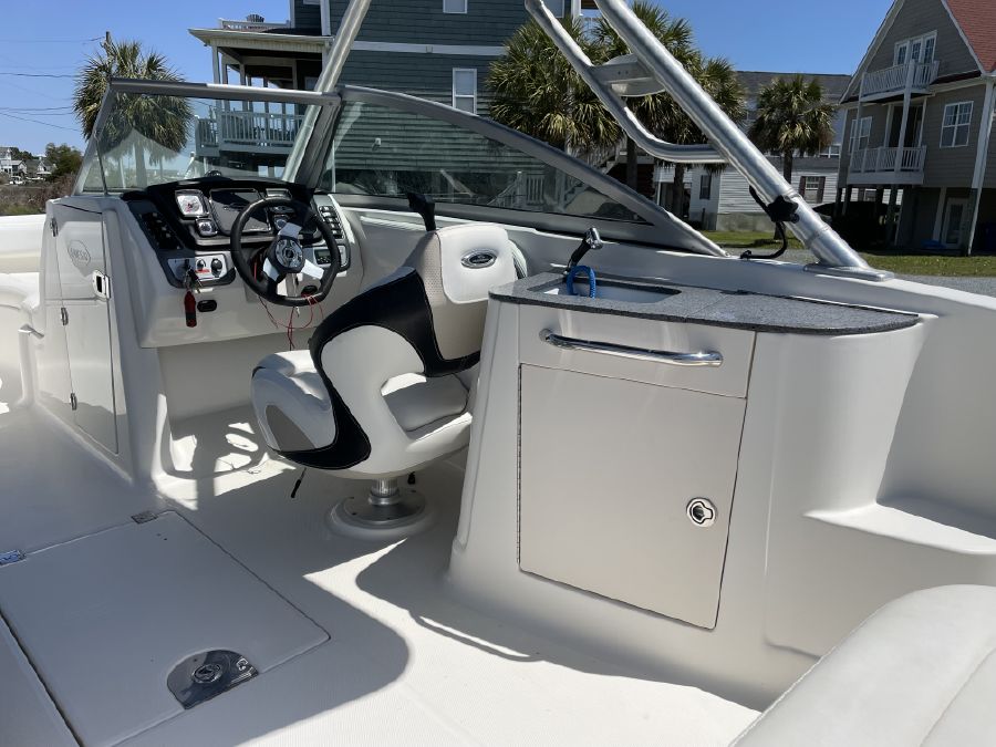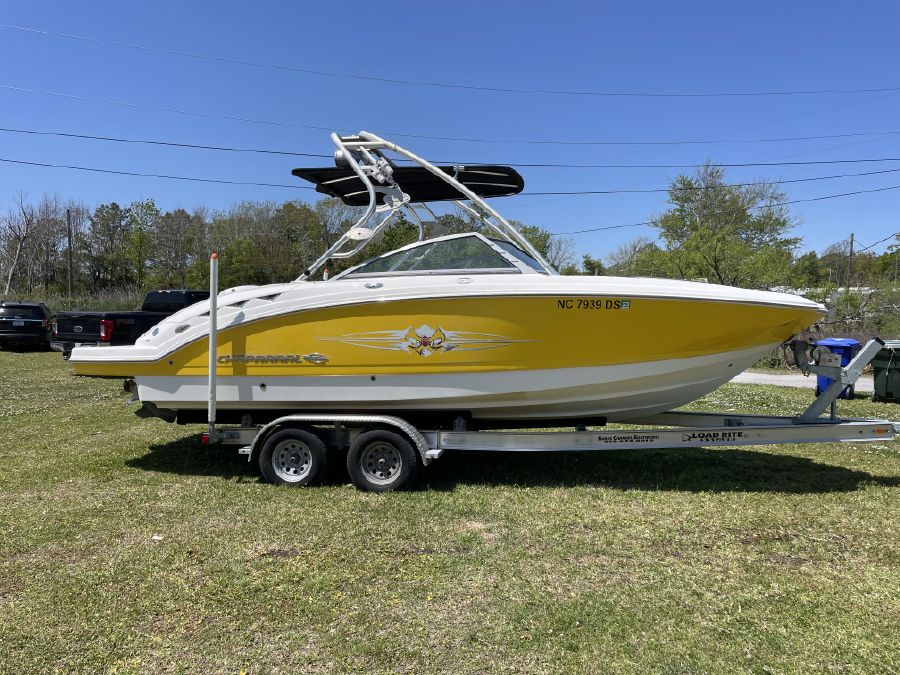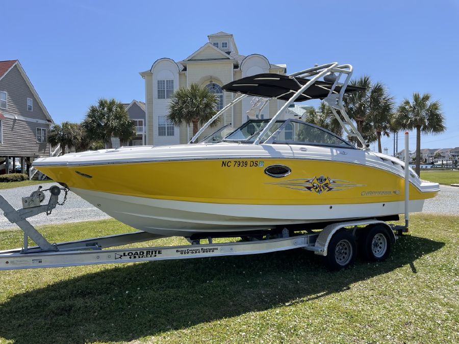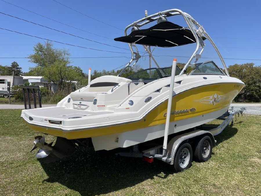 Engine has been inspected by a local mechanic, compressions are all strong 190 – 200psi. Engine has been serviced including fluids and new spark plugs. Manifolds, Risors & Elbows all have been inspection and are in great shape. Yes, this boat has been been run in saltwater, but her engine is strong and you should not hesitate to buy her because of the saltwater. Powered by a Volvo Penta 5.7 300hp engine makes this boat more than powerful when you need to get back to the dock. Wakeboard Tower and Trailer is included, plus she is equipped with all the factory goodies, it’s time to get out on the water and pull the kids or head to your favorite sandbar, secure the anchor and lower the ladder. Set up the beach chairs and put your toes in the sand. The kids are growing up so fast, so it’s time to make memories!