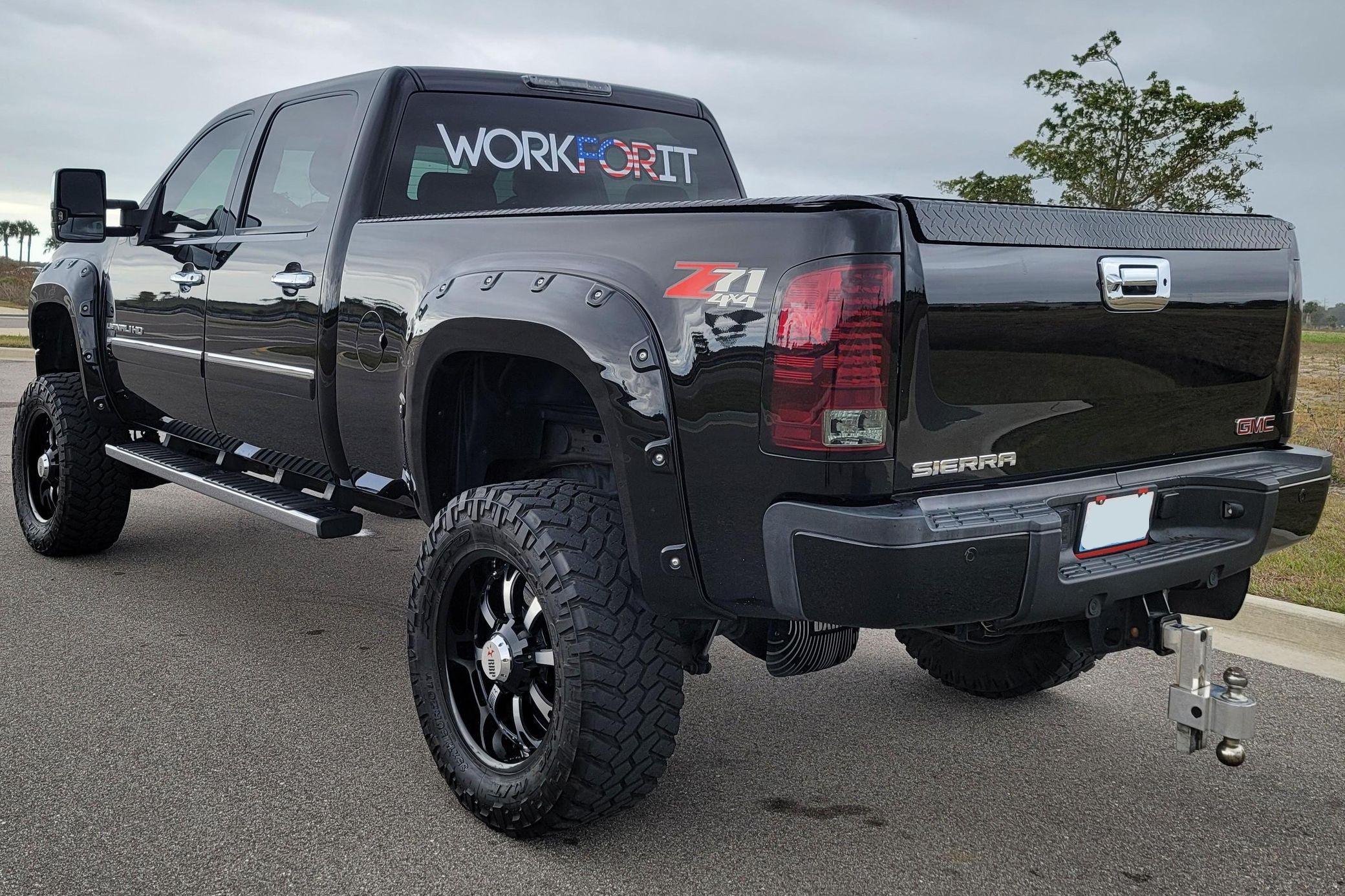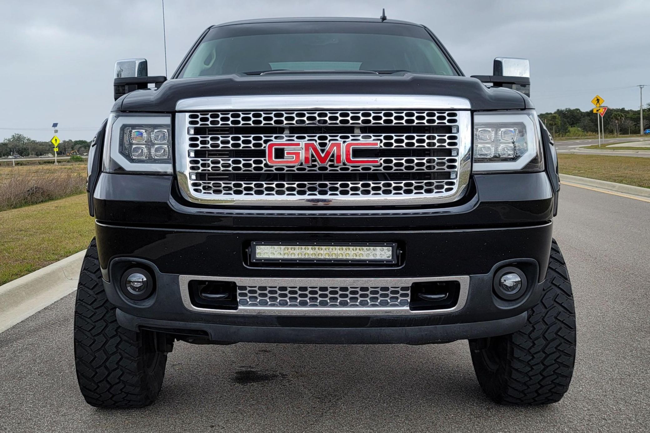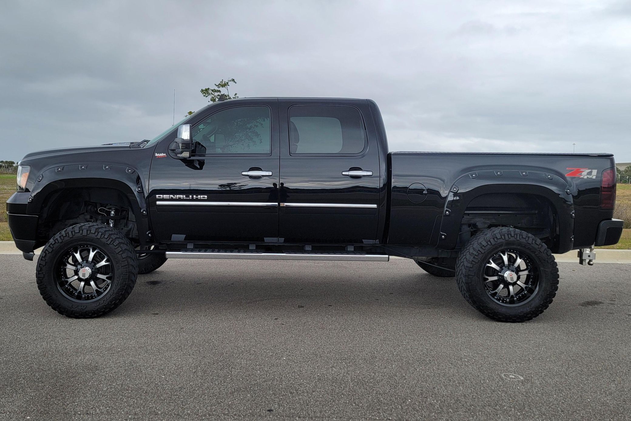 THIS… is a 2011 GMC Sierra 2500 Denali 4×4, finished in Onyx Black with an Ebony interior.This Sierra is equipped with the desirable Duramax turbodiesel V8 and Allison 6-speed automatic transmission. The attached Carfax history report shows no accidents or mileage discrepancies; it also shows that this truck has been registered in Arizona and Washington state since new. It came equipped with the Z71 Off-Road Suspension Package (off-road jounce bumpers, skid plates, Z71 decals), a locking rear differential, leather upholstery, heated and cooled front seats, power-adjustable pedals, dual-zone automatic climate control, a rearview camera, a navigation system, and more as detailed below. Modifications reported by the seller include 20-inch RBP wheels with 35-inch Nitto Trail Grappler tires, a custom exhaust system, a Banks Power intake, a Banks Power ECU tune, a Fabtech 6-inch lift kit, Fox shocks, an aftermarket front light bar, a Pioneer head unit with Apple CarPlay and Android Auto capability, and more as detailed below. The GMC Sierra Denali was marketed as the most luxurious version of GM’s trucks, offering not only a very long list of features as standard but also a distinct look from its siblings. It was seen as one of the first luxury-focused trucks in the market. Power comes from a 6.6-liter turbodiesel V8, which produces 397 horsepower and 765 lb-ft of torque in stock form. The modifications likely increase those figures, but a dyno sheet was not provided to confirm. Output is sent to the rear or all four wheels through an Allison 6-speed automatic transmission and a 2-speed transfer case.