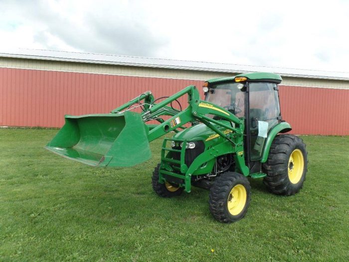 2011 JOHN DEERE, 4320 Tractors – 40 HP to 99 HP, Hydro R4 tires John Deere 400cx loader 6 bucket with John Deere quick attach.