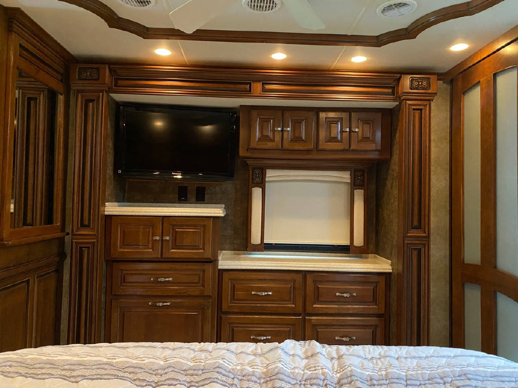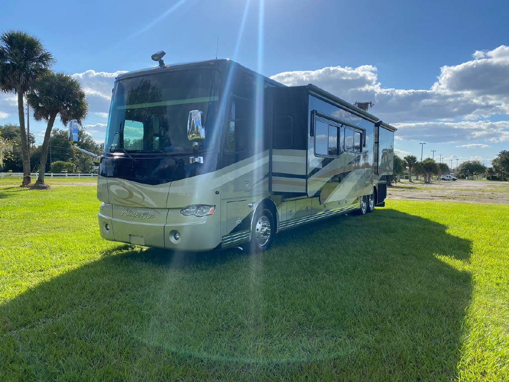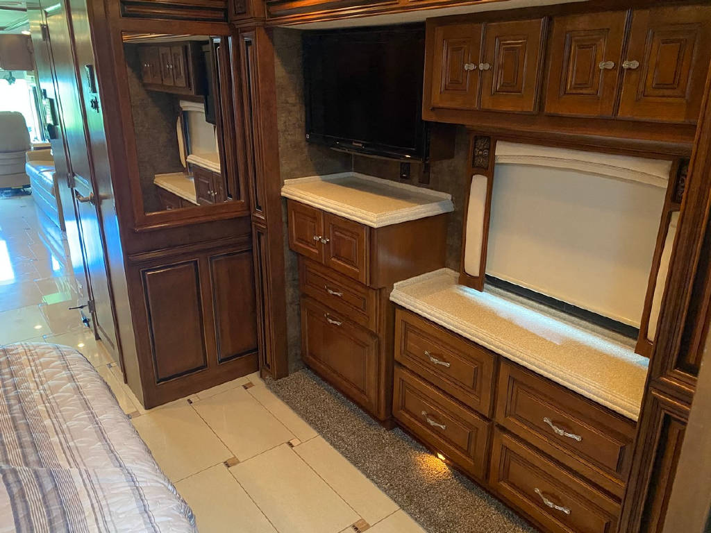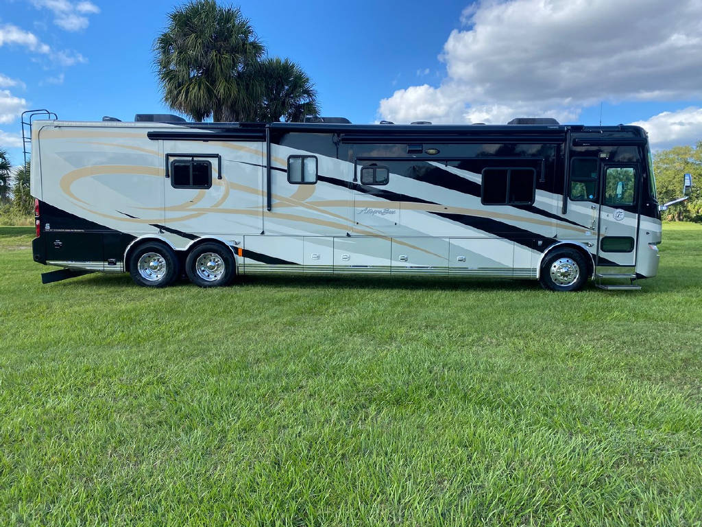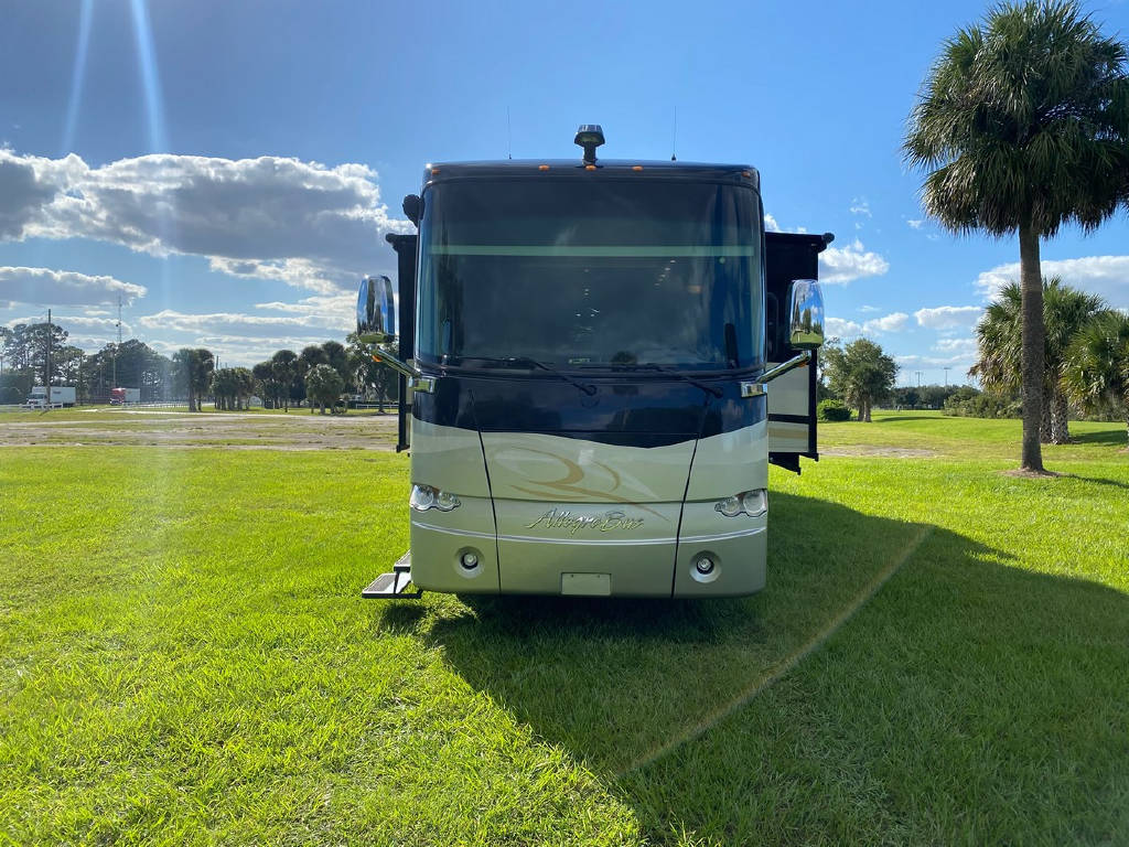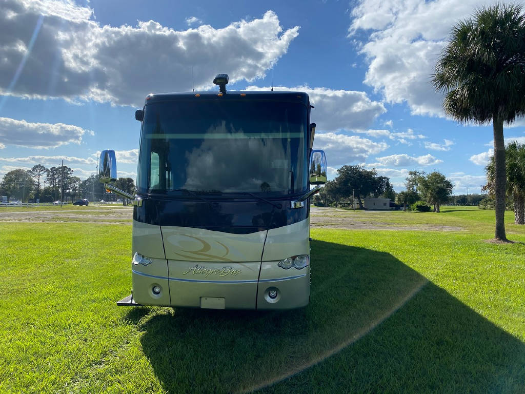 2011 Tiffin Allegro Bus 43 QGP, bath and a half, 4 slide tag axle motorhome with 77427 miles. This coach is on a Power Glide Chassis with a 450 Cummins Diesel and an Allison Transmission. This beautiful motorhome has Glazed Cherry Cabinets, Triple Crown Fabrics, Ultra leather Air Coil Hide a bed, Basement Electric Refer, Dinette Computer Work Station,In-Dash Navigation, Dishwasher, Electric Coach, Extended drop down the awning, In-motion Sat, Safe in the bedroom, Select Comfort King Bed, Stacked Washer Dryer, Bedroom tile and more !!!!