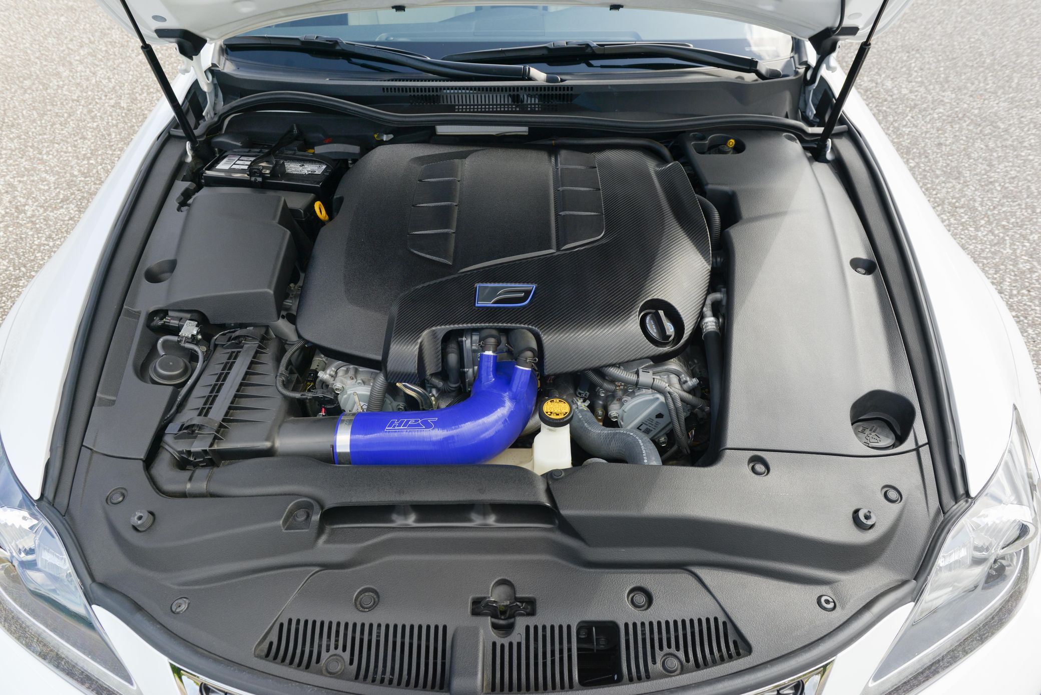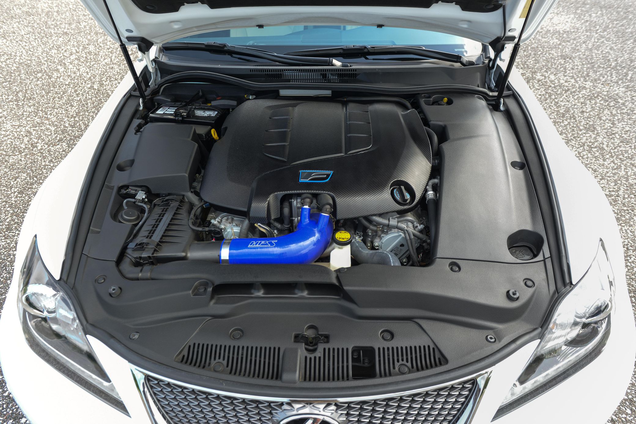 Modifications include PPE Engineering unequal length headers, a Joe Z exhaust, an HPS intake kit, 19-inch Lexus RC-F wheels, and an HKS Hipermax IV GT coilover kit, among other listed below.