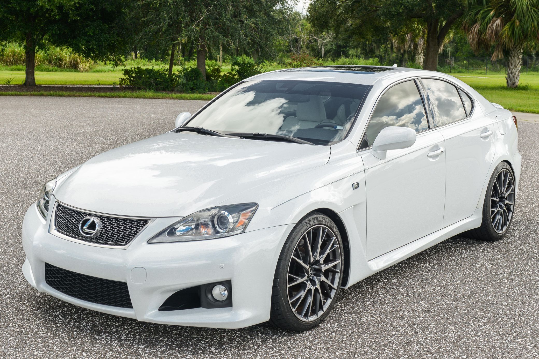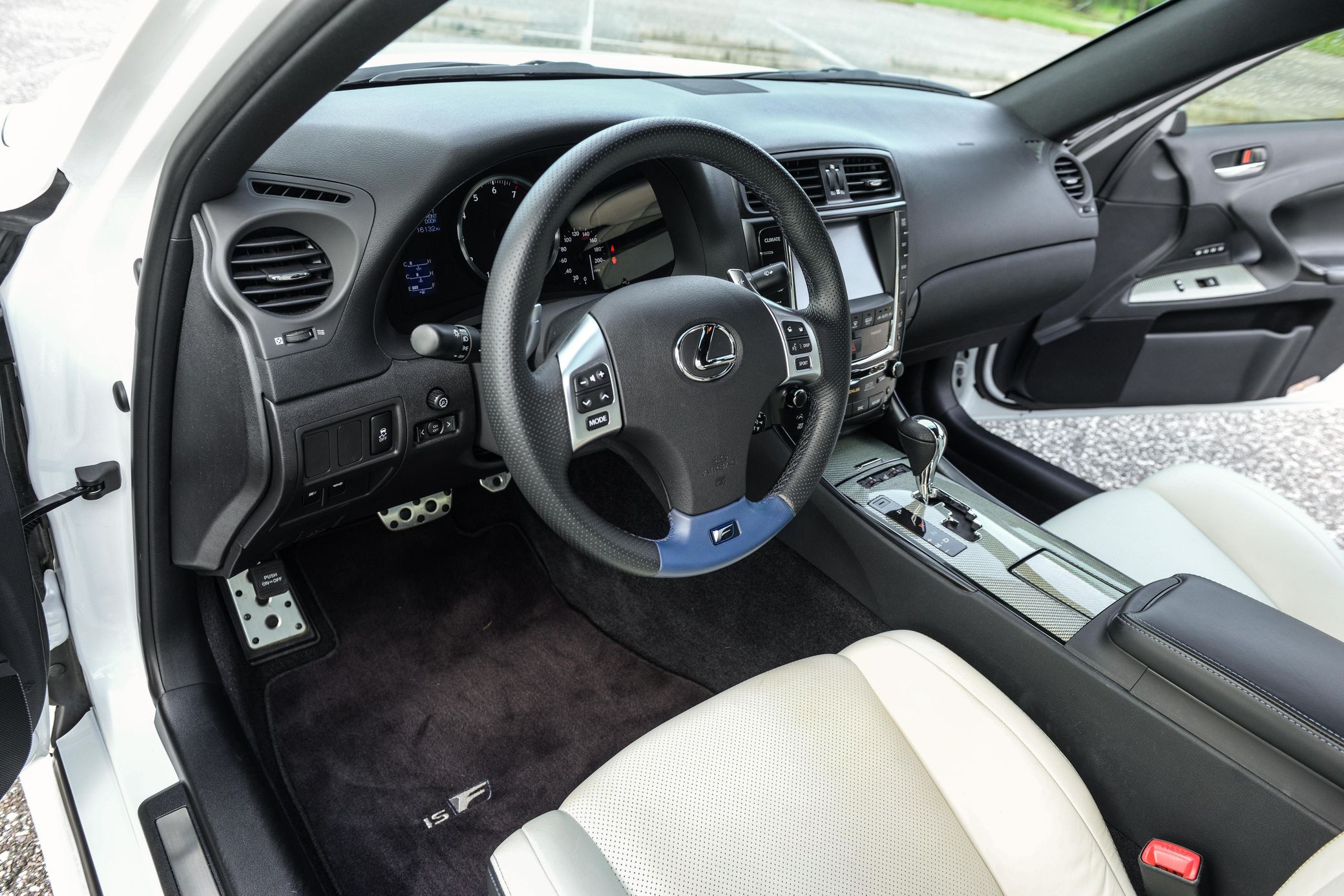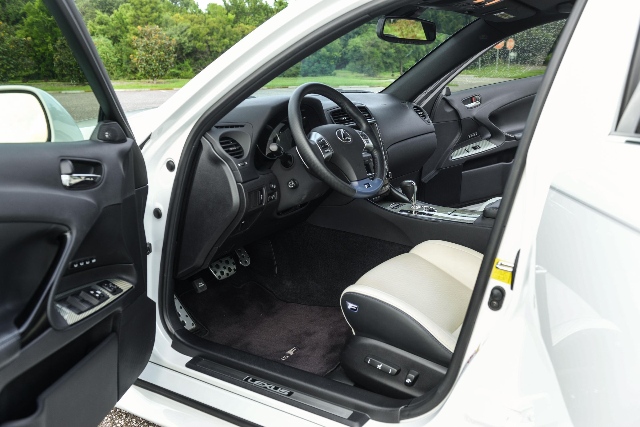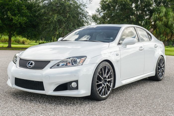 THIS… is a 2012 Lexus IS F, finished in Starfire Pearl White with a cream and black leather interior.