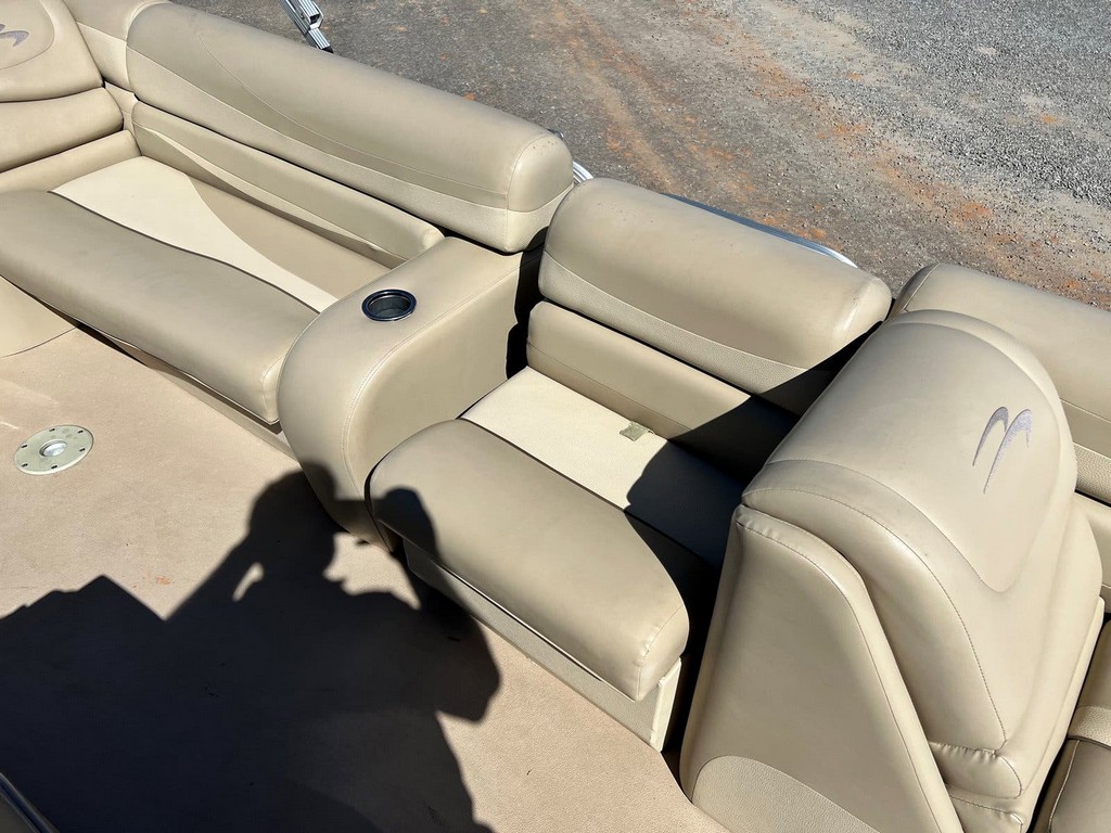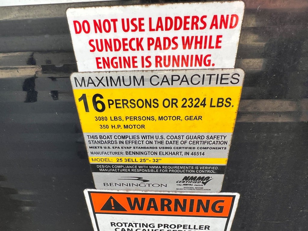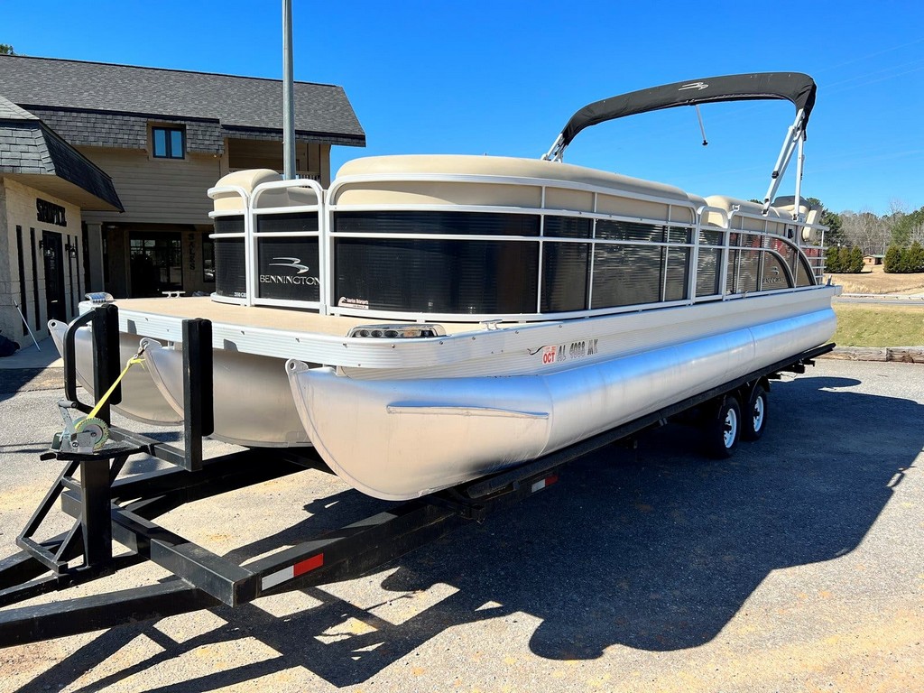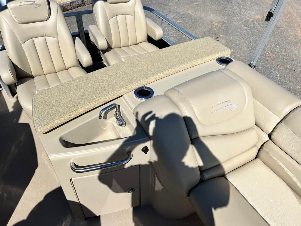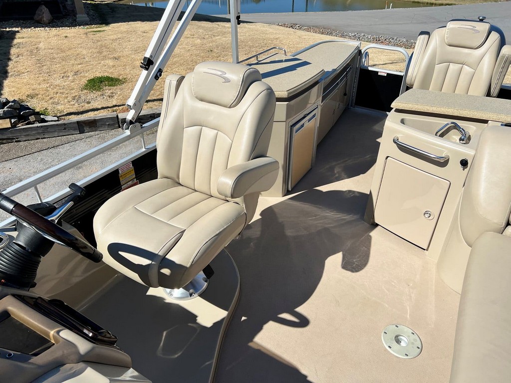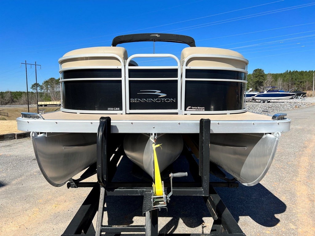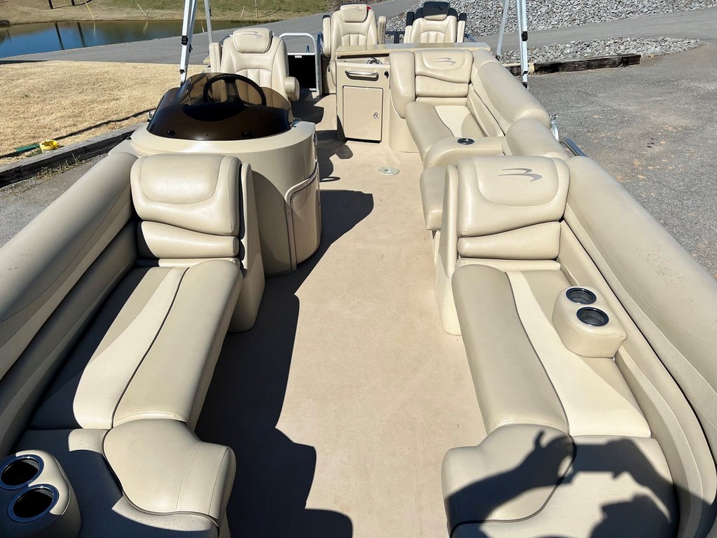 Check out this 2013 Benington 2550 GBR with the Yamaha 200 HP four-stroke motor! This 25 foot boat has 420 fresh water hours and an aluminum prop! It also comes with a full snap-on cover, bimini top, movable bolster seat, stereo, dual batteries with selector switch, Garmin GPS and depth finder, ski tow bar, entertainment bar, and more! Rated for 16 persons, this boat is perfect for you and friends or family to hit the water!
