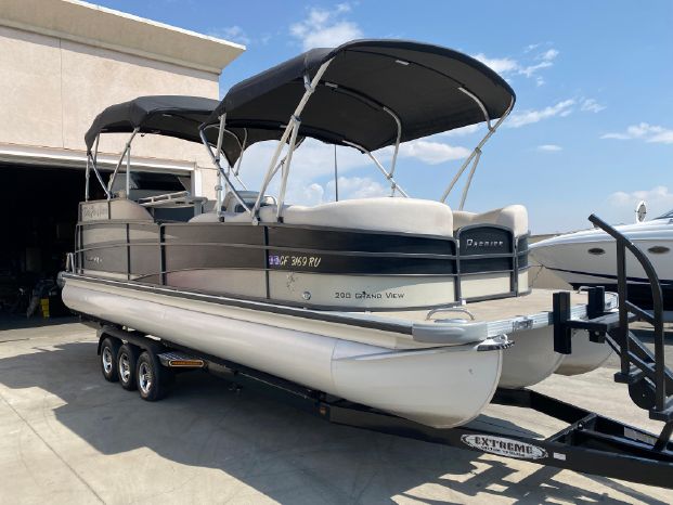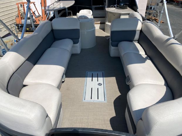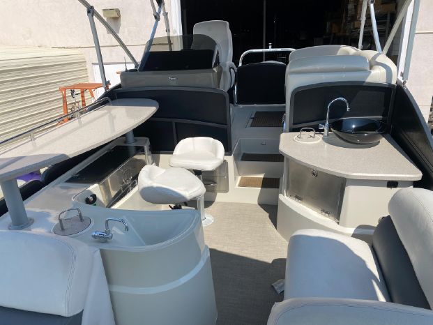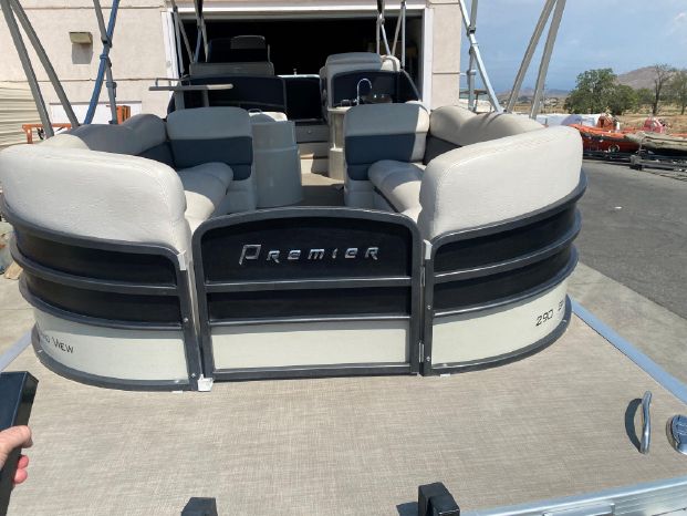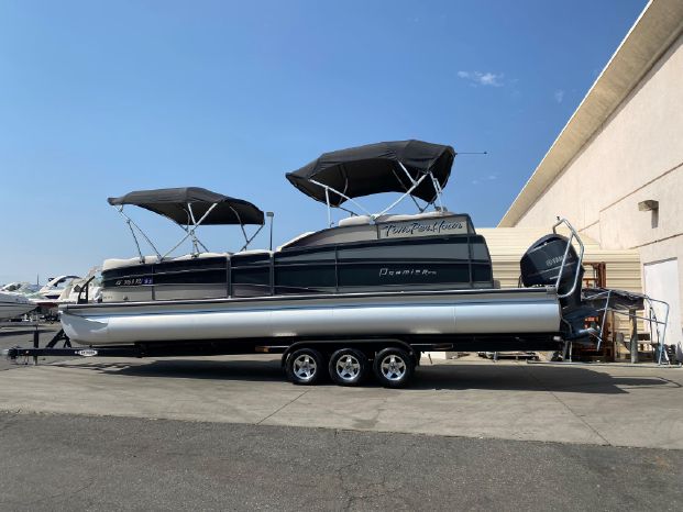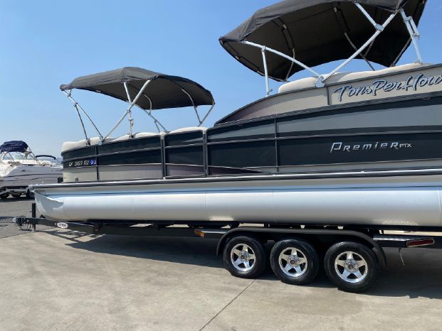 This Is A Used 2013 Premier 290 Grand View Tritoon. This 29′ Boat is Powered With A Yamaha 350hp Fourstroke Outboard With Only 23 Hours! It Includes Options Like Double Bimini Top, Playpen Cover, Triple Pontoon, Hydraulic steering, Pressure Water System, Docking Lights, Fuel Injection, Stainless Steel Props, Dual Batteries With Switch, Depth Sounder, Power Trim/Tilt, Ski Tow Bar, Drivers Bucket Seat, 2 Bar Stools With Bar, Cockpit Sink X2, Pop Up Changing Curtain, 3 Gate Entry, Seagrass Flooring, 2 Forward Couches, Tilt Wheel, And More.