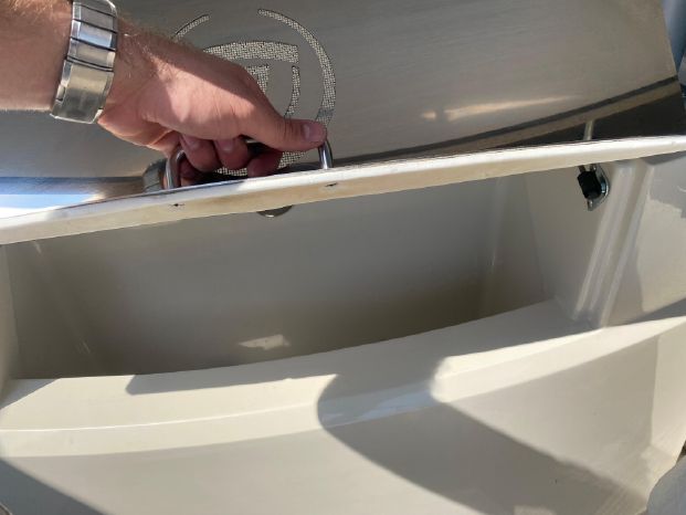 -Elevated aft deck area with fantail aft steps & under-deck storage compartment