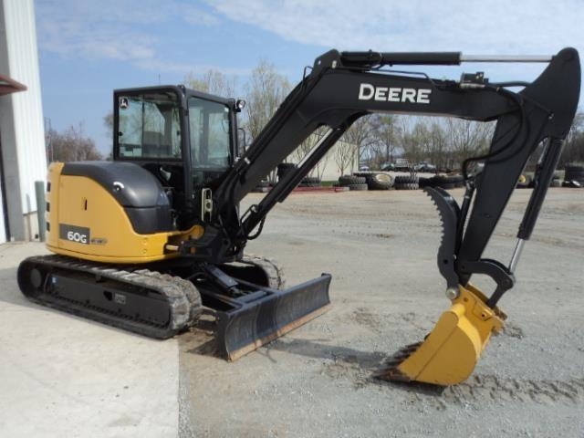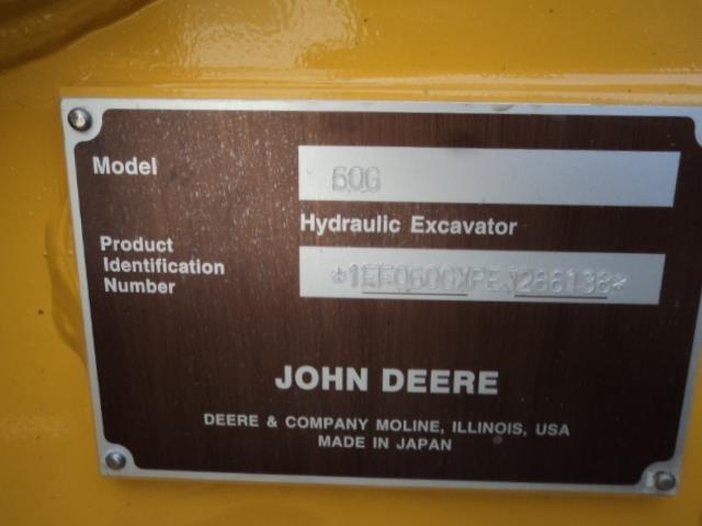 DEERE 60G EXCAVATOR, CAB/HEAT/AIR, 79″ FRONT BLADE, 36″ TOOTH BUCKET, HYD THUMB, BACKHOE & EXC CONTROLS, LIKE NEW.