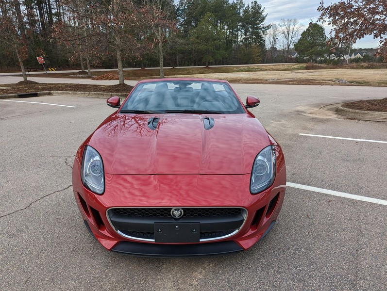 THIS… is a 2014 Jaguar F-Type convertible, finished in Italian Racing Red Metallic with a black soft top and a Jet interior. The odometer on this F-Type currently displays approximately 19,100 miles. The attached Carfax vehicle history report lists no accidents or mileage discrepancies in this Jaguar’s past. According to the Monroney Label provided in the gallery, factory equipment includes a power-operated soft top, sport tuned suspension, leather and suede upholstery, power-adjustable seats, a touchscreen infotainment system, and dual-zone climate control.