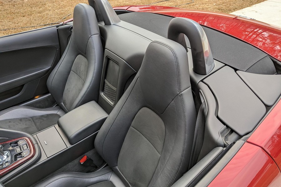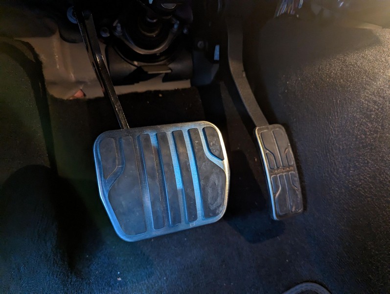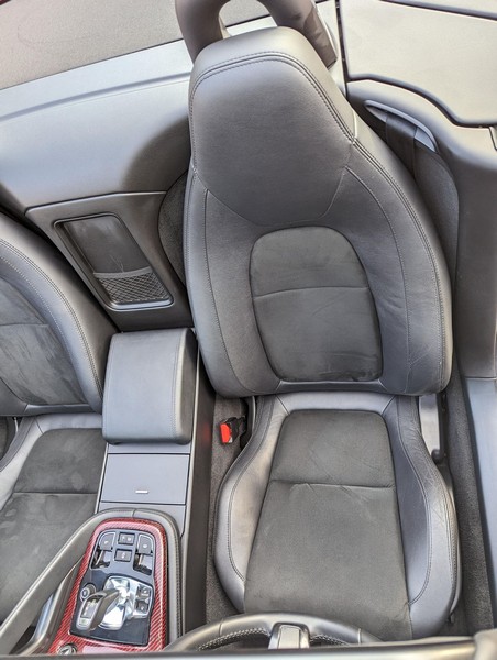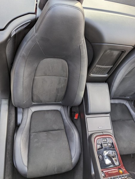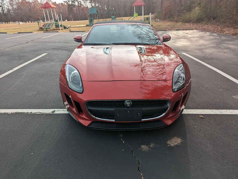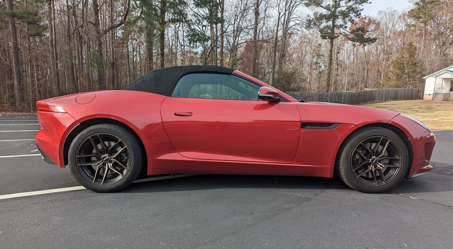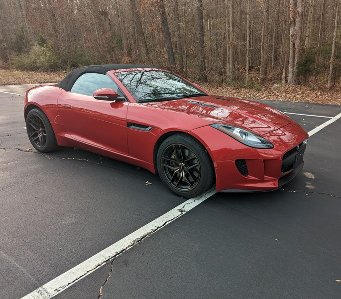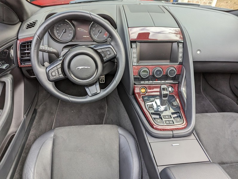 Modifications reported by the seller include a Velocity AP Stage 2 ECU tune and crank pulley, 18-inch Fast Wheels Aristo wheels, Eibach 15mm rear wheel spacers, gloss black hood and side vents, and red carbon fiber interior trim. A set of factory wheels and the removed trim components are included with the sale. Power comes from a 3.0-liter supercharged V6, rated at 340 horsepower and 332 lb-ft of torque. Due to the modifications performed to this F-Type, it may produce more power, but a dyno sheet was not provided to confirm. Output is sent to the rear wheels via an 8-speed automatic transmission.