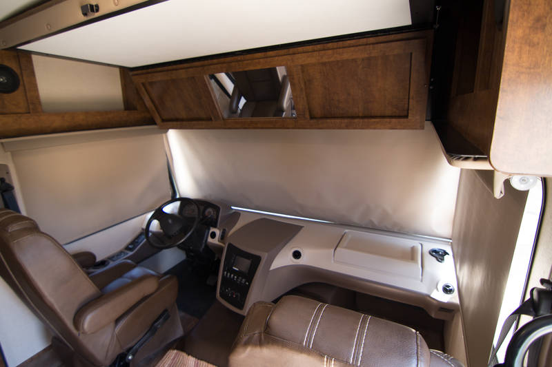 Power front fold-away bunk over driver area with ladder