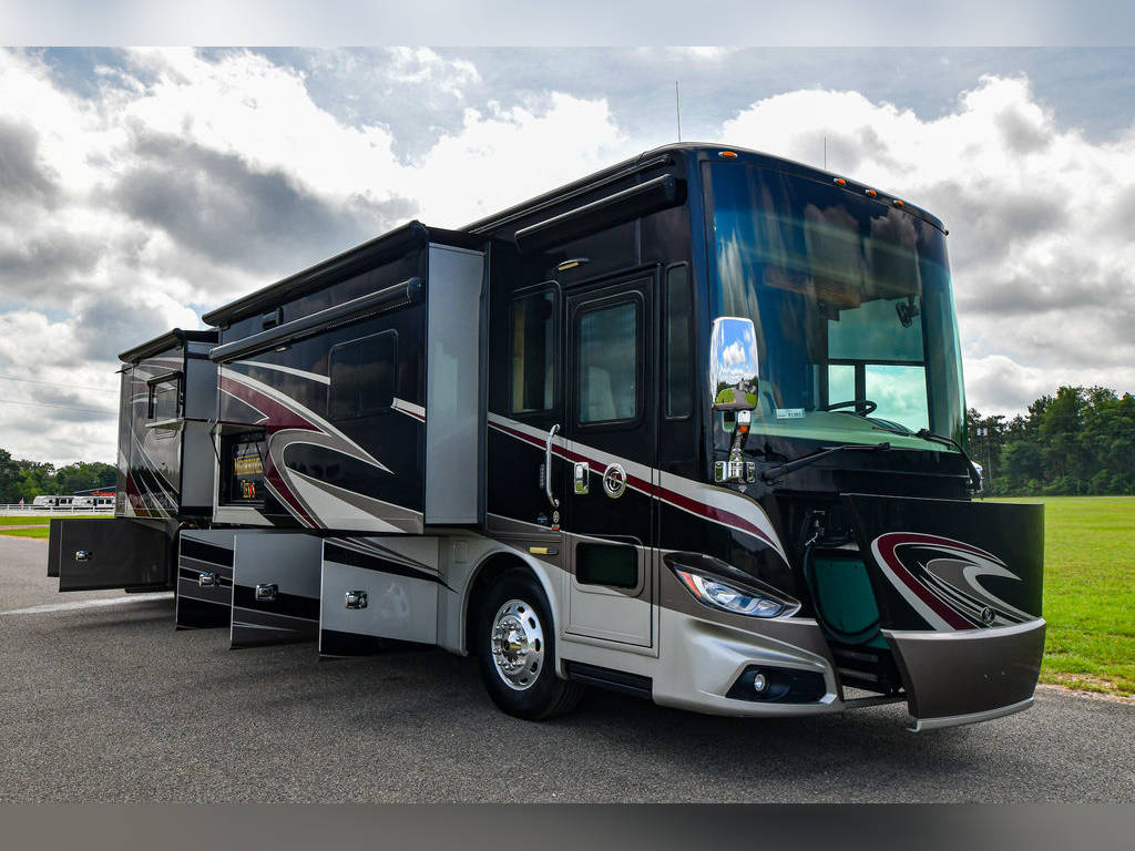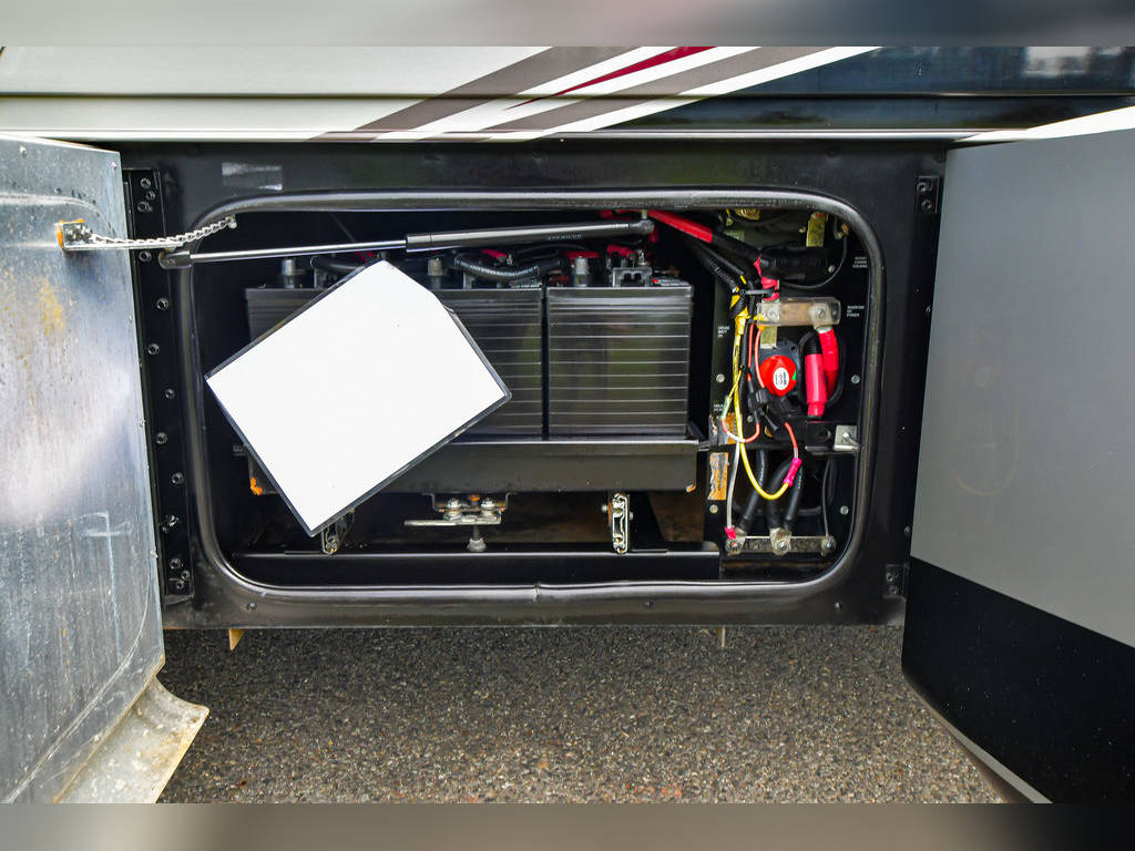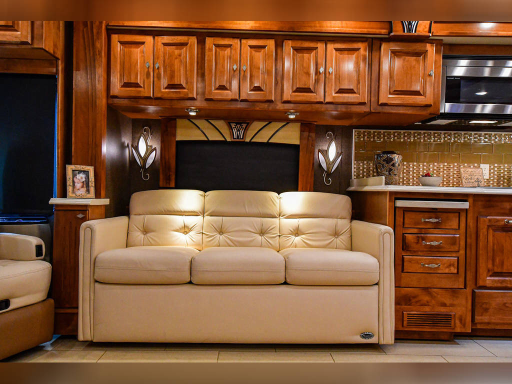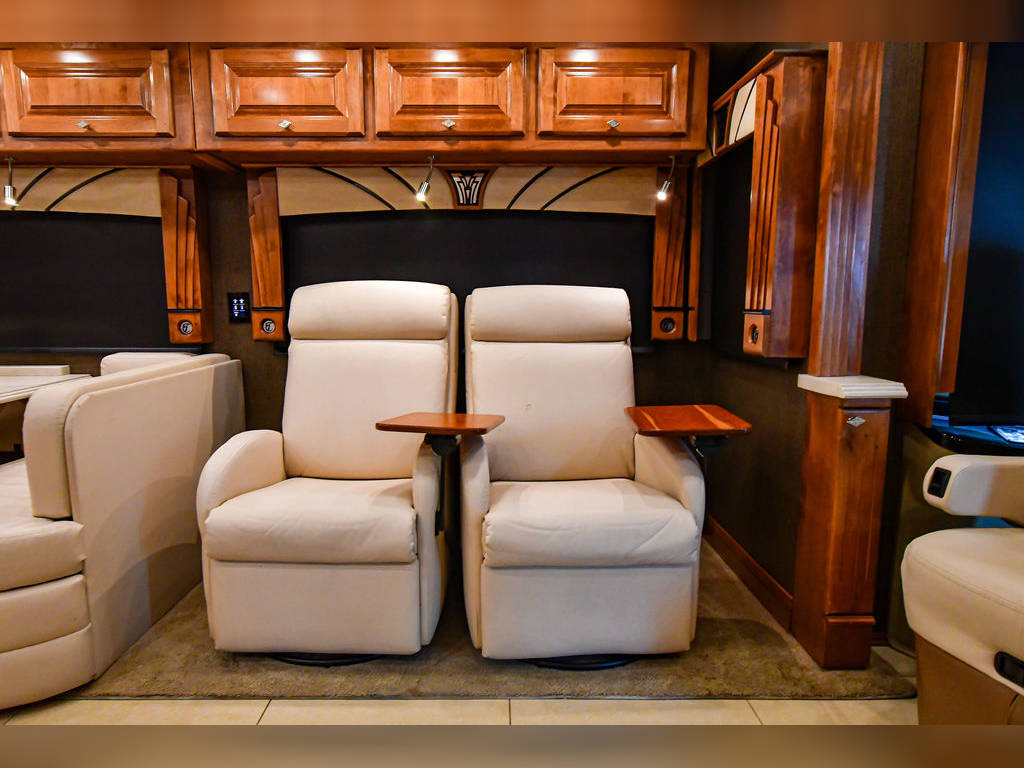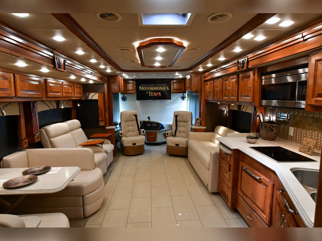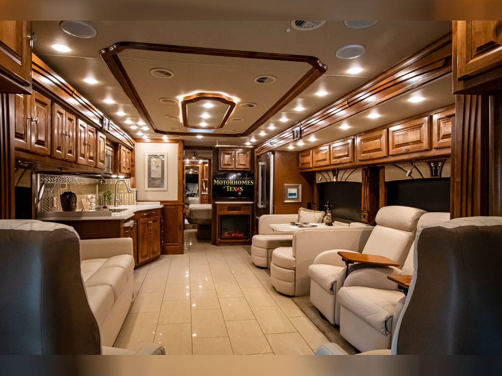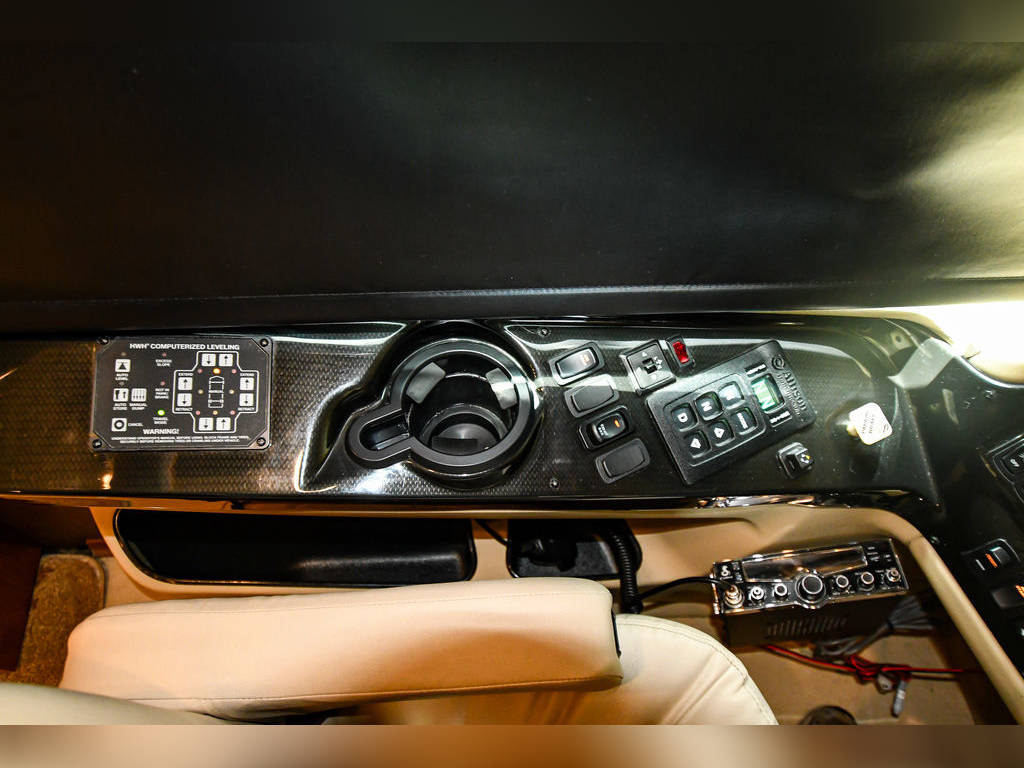 Air Horns, 10,000 lbs. Hitch Capacity, All Wheel Air ABS Brakes, Adjustable Brake and Accelerator Pedals, 2 12v Engine Batteries, Polished Aluminum Wheels, DEF Tank Capacity 13 Gal., Extended Cycle House Batteries, Tow Car Brake Air Connection, Full Width Rear Mud Flap, Fuel Capacity 100 Gal, Automatic Air Dryer, Air Ride SuspensionRear Mount Engine Radiator, Six 6 V Auxiliary Batteries, 18″ VIP Steering Wheel, Computerized Hydraulic Leveling System