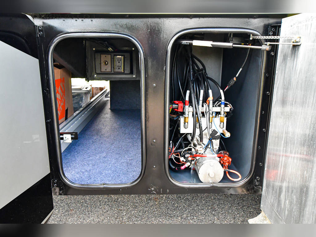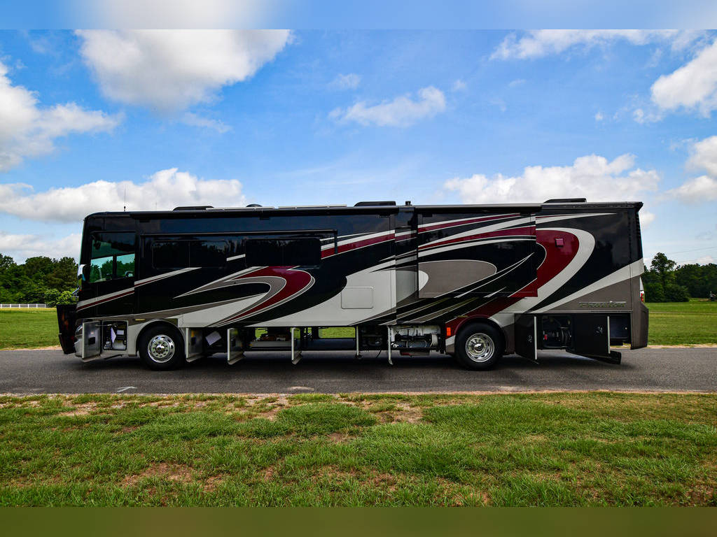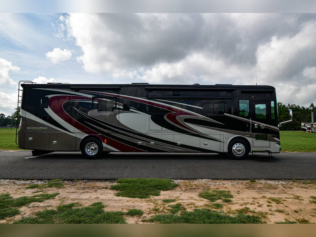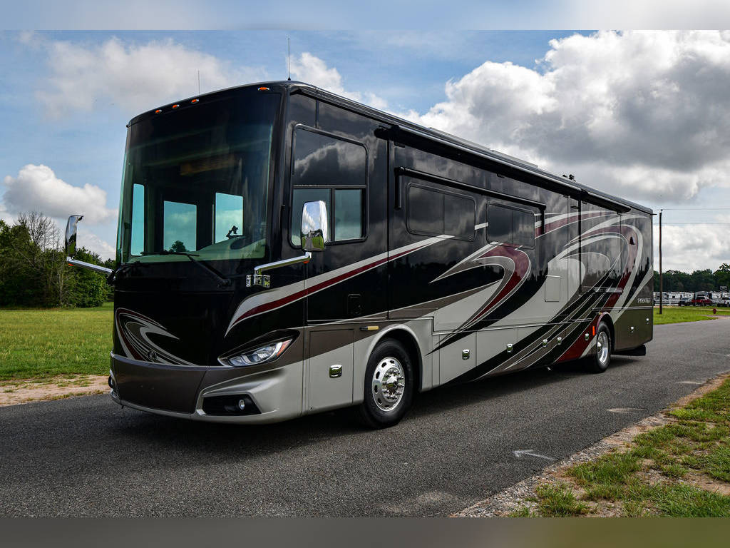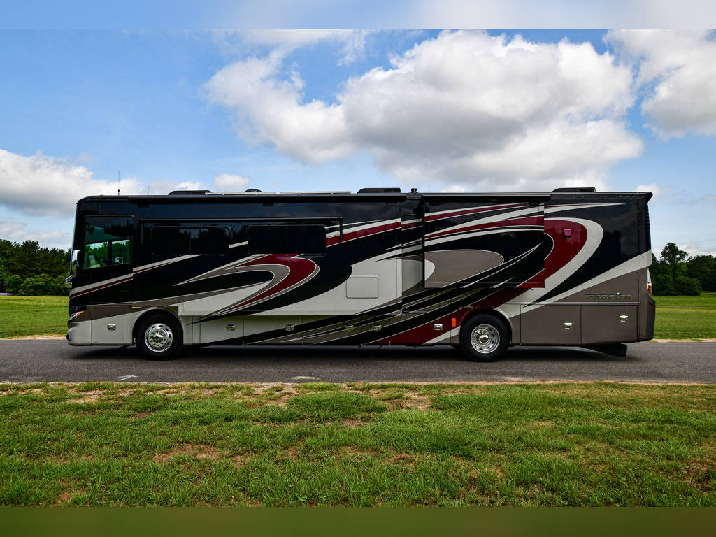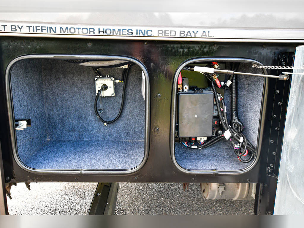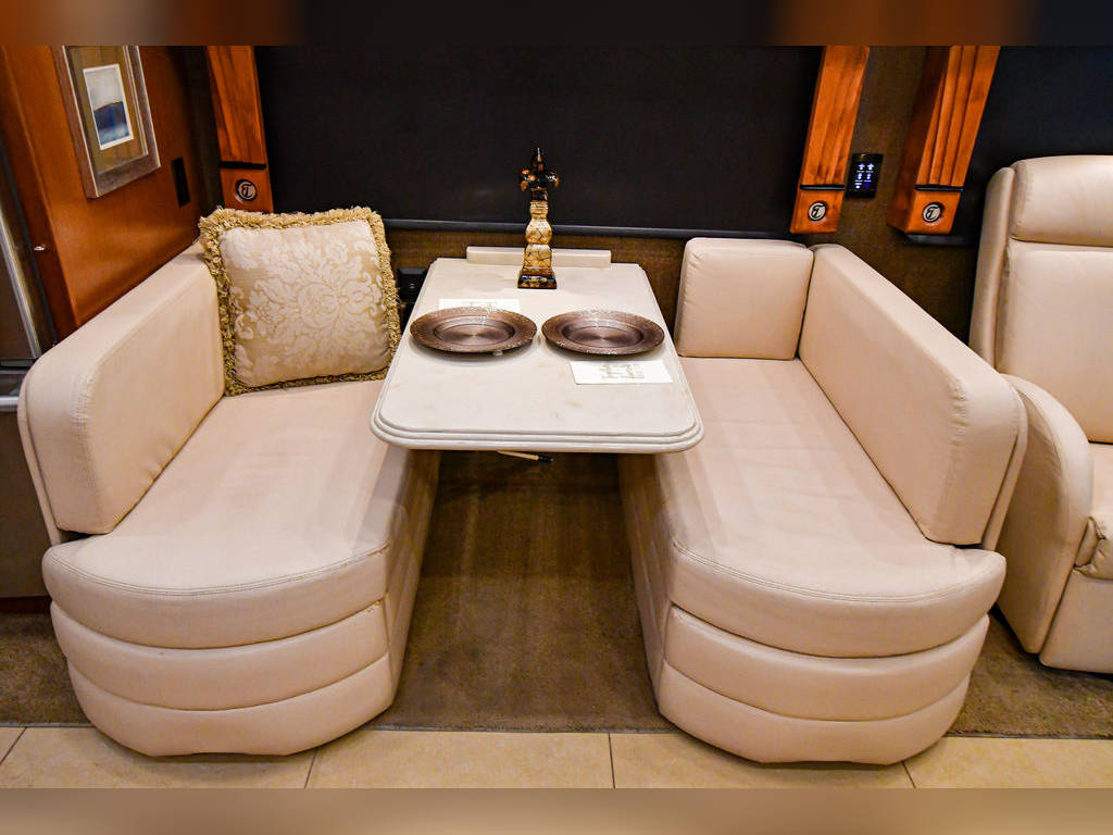 Air Horns, 10,000 lbs. Hitch Capacity, All Wheel Air ABS Brakes, Adjustable Brake and Accelerator Pedals, 2 12v Engine Batteries, Polished Aluminum Wheels, DEF Tank Capacity 13 Gal., Extended Cycle House Batteries, Tow Car Brake Air Connection, Full Width Rear Mud Flap, Fuel Capacity 100 Gal, Automatic Air Dryer, Air Ride SuspensionRear Mount Engine Radiator, Six 6 V Auxiliary Batteries, 18″ VIP Steering Wheel, Computerized Hydraulic Leveling System