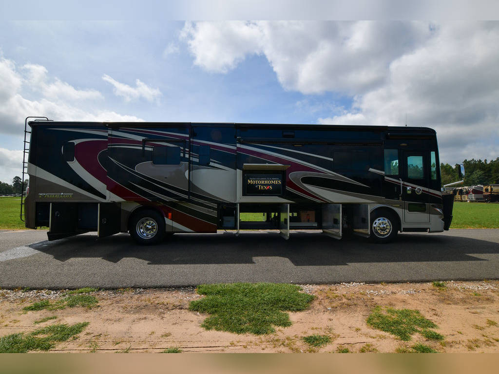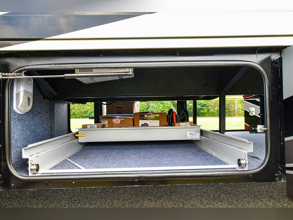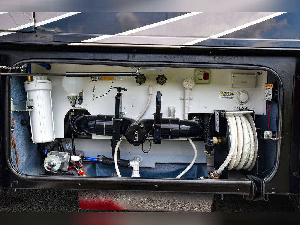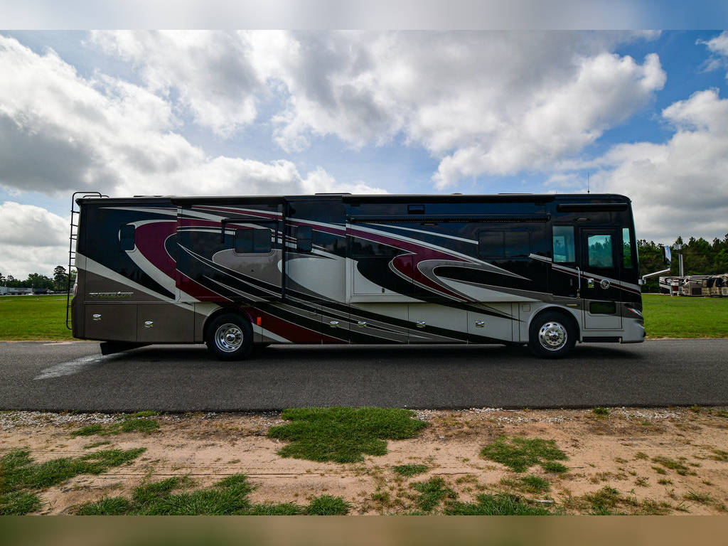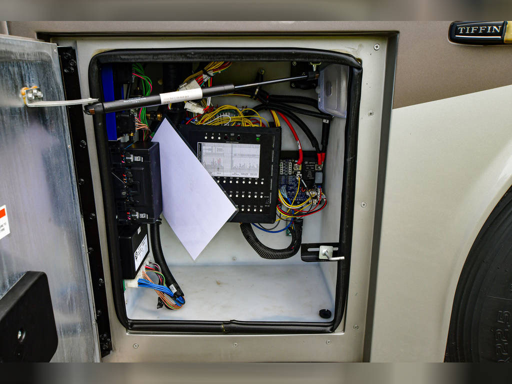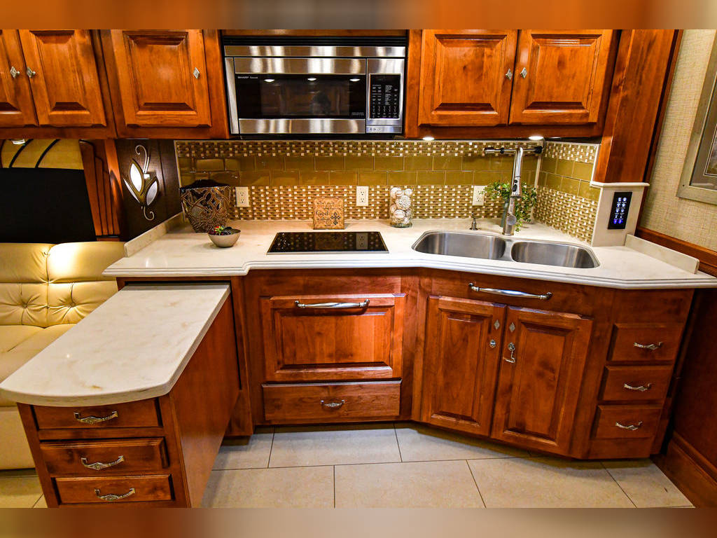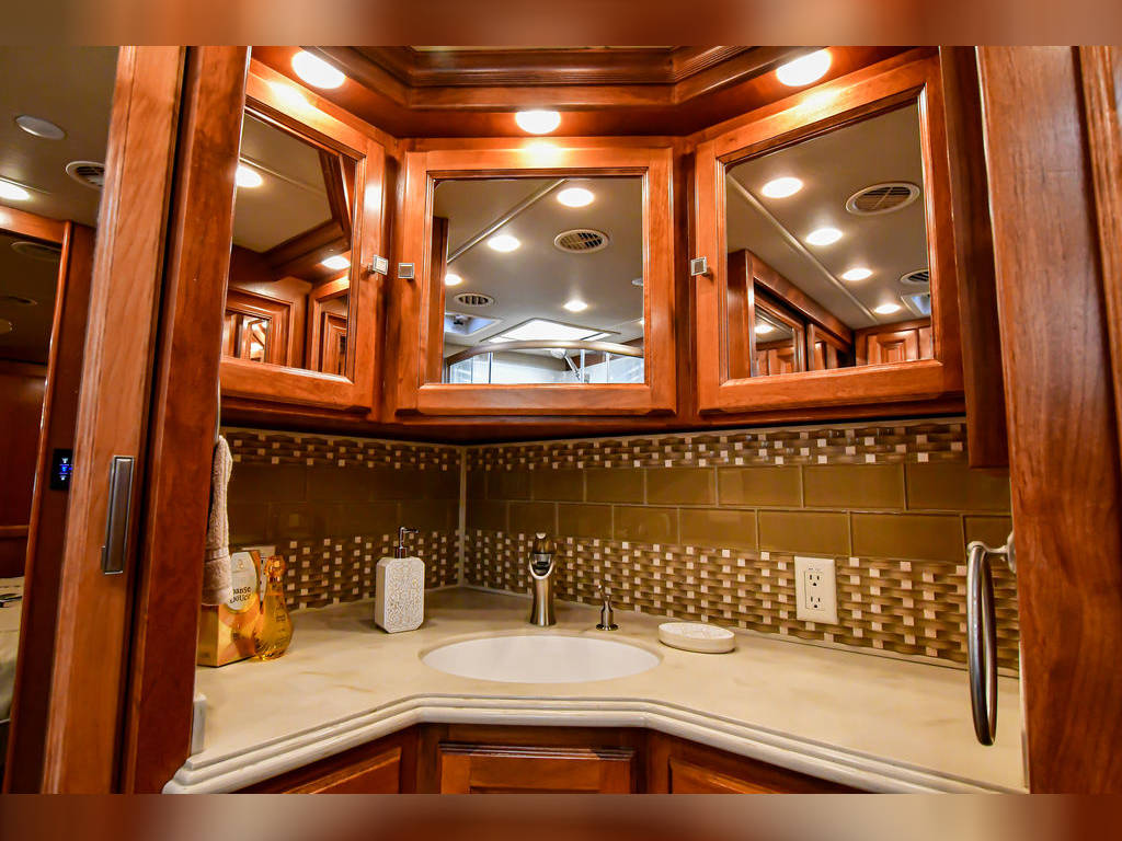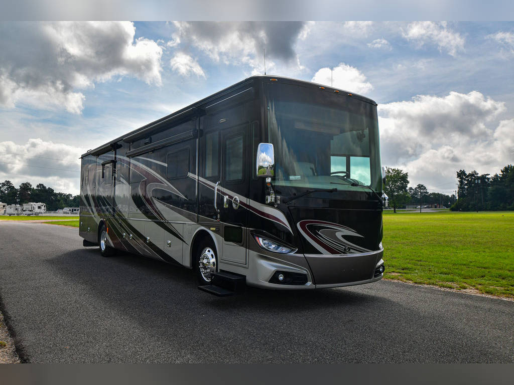 Air Horns, 10,000 lbs. Hitch Capacity, All Wheel Air ABS Brakes, Adjustable Brake and Accelerator Pedals, 2 12v Engine Batteries, Polished Aluminum Wheels, DEF Tank Capacity 13 Gal., Extended Cycle House Batteries, Tow Car Brake Air Connection, Full Width Rear Mud Flap, Fuel Capacity 100 Gal, Automatic Air Dryer, Air Ride SuspensionRear Mount Engine Radiator, Six 6 V Auxiliary Batteries, 18″ VIP Steering Wheel, Computerized Hydraulic Leveling System