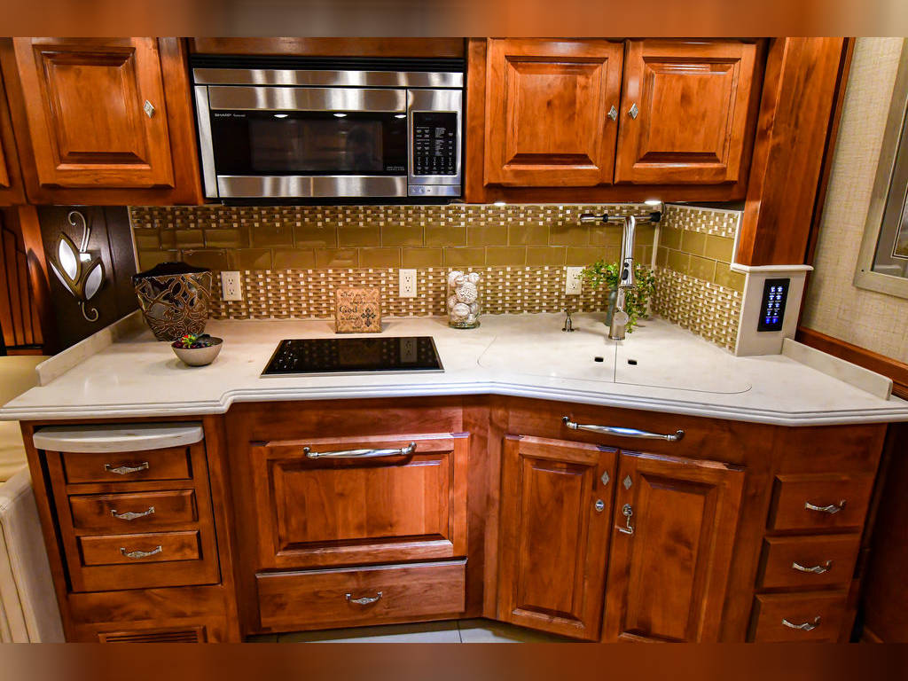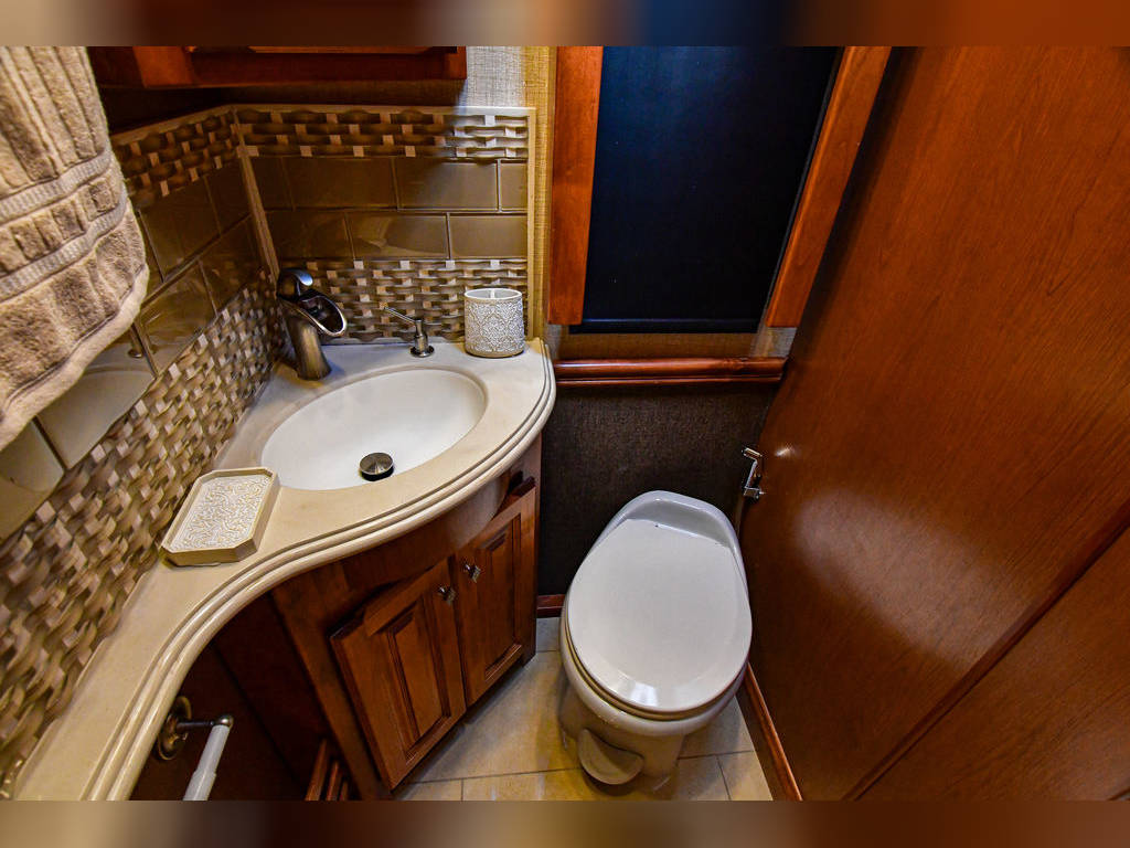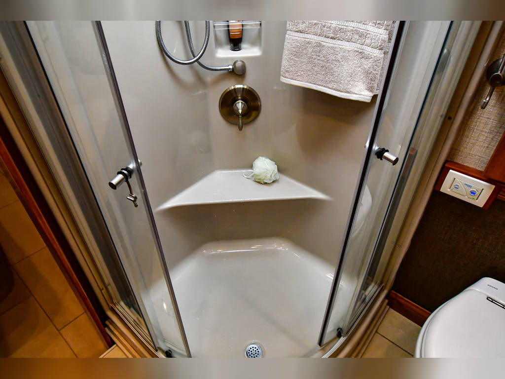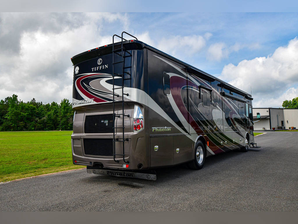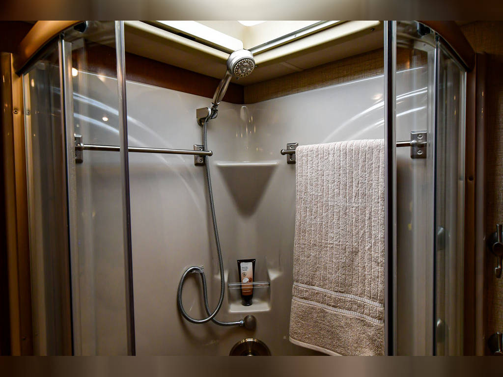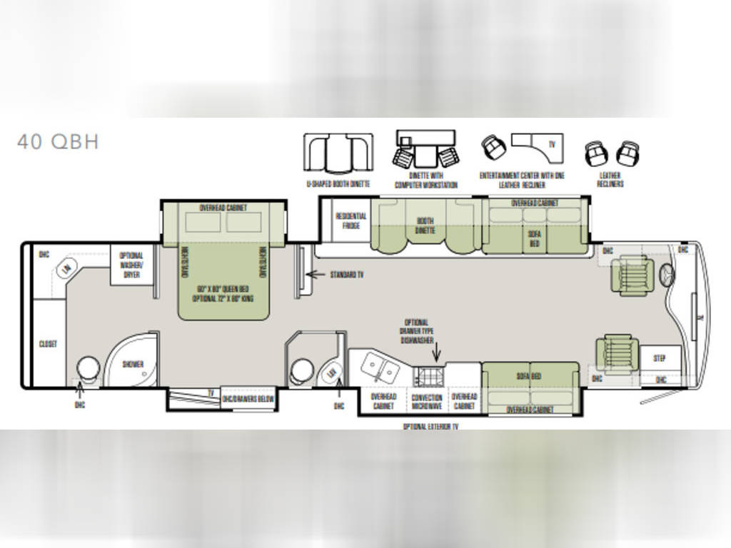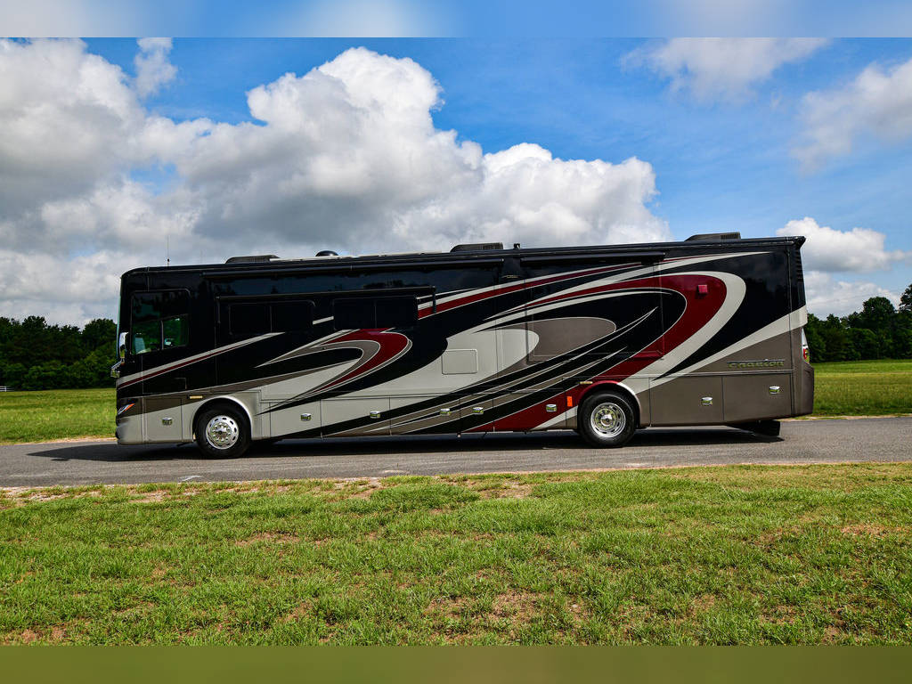 Air Horns, 10,000 lbs. Hitch Capacity, All Wheel Air ABS Brakes, Adjustable Brake and Accelerator Pedals, 2 12v Engine Batteries, Polished Aluminum Wheels, DEF Tank Capacity 13 Gal., Extended Cycle House Batteries, Tow Car Brake Air Connection, Full Width Rear Mud Flap, Fuel Capacity 100 Gal, Automatic Air Dryer, Air Ride SuspensionRear Mount Engine Radiator, Six 6 V Auxiliary Batteries, 18″ VIP Steering Wheel, Computerized Hydraulic Leveling System