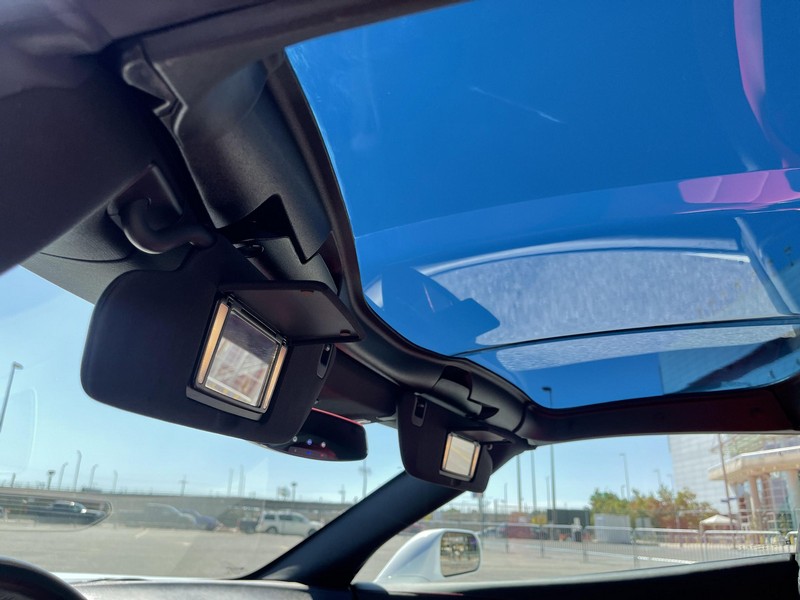 Factory equipment includes the Z07 Performance Package, the Body-Color Dual Roof Package, 19-inch front and 20-inch rear wheels, an electronic limited-slip differential, a performance exhaust system, a carbon fiber hood, Mulan leather upholstery, heated and ventilated Competition Sport bucket seats, a Bose 10-speaker audio system, and front curb view parking cameras.