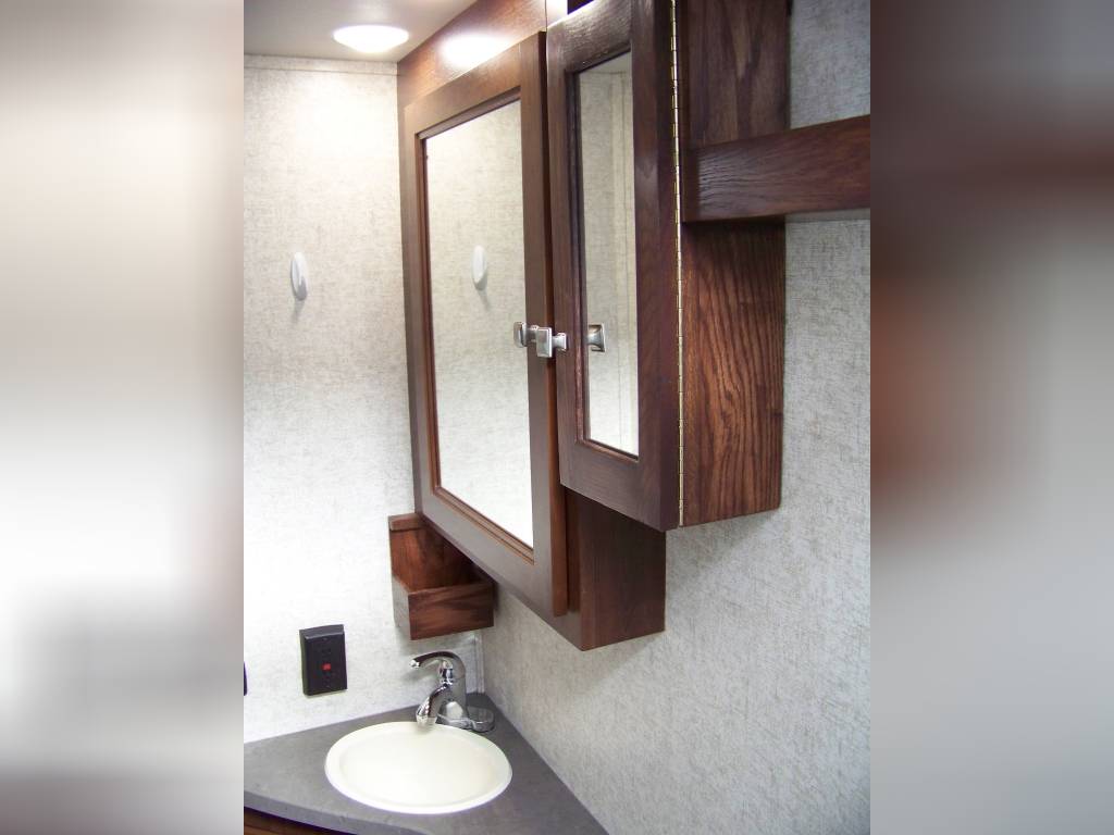 Unit Has: AC Power Monitor Rear Stabilizers Hellwig Sway Control Side Cameras Additional oak bathroom cabinet with mirror Porcelain Toilet Lots of storage Inside privacy panels for cab windows Microwave/Convection Oven Walk around queen sized bed One piece fiberglass roof, washed every year This unit has been very well maintained. Has always been stored indoors on a concrete floor, never out in the weather. Oil and filters changed every year. Cleaned and waxed 2-3 times per year. Averages 11.5-12.5 MPG towing a Chrysler Crossfire, non-towing 13-14 MPG. All airbag recalls have been taken care of.