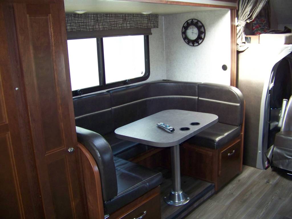 Sleep Options: queen bed, over cab bed, dinette converts to bed