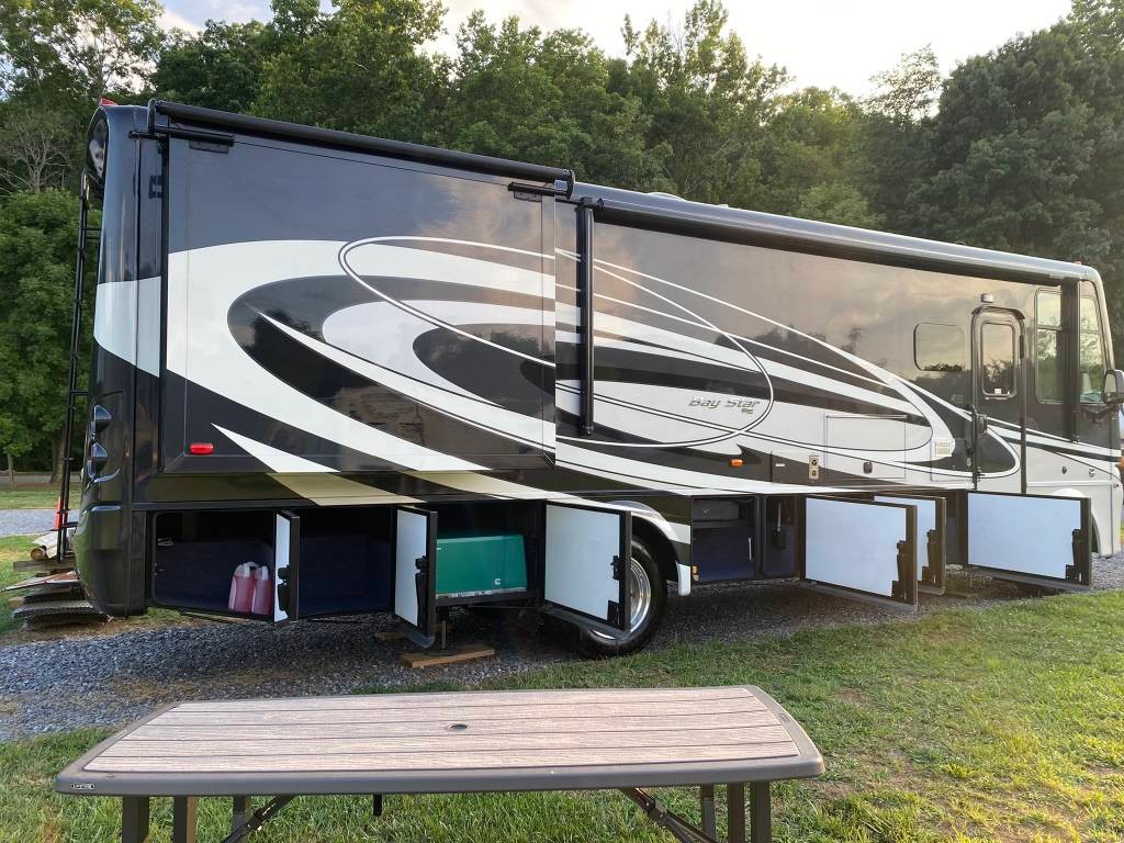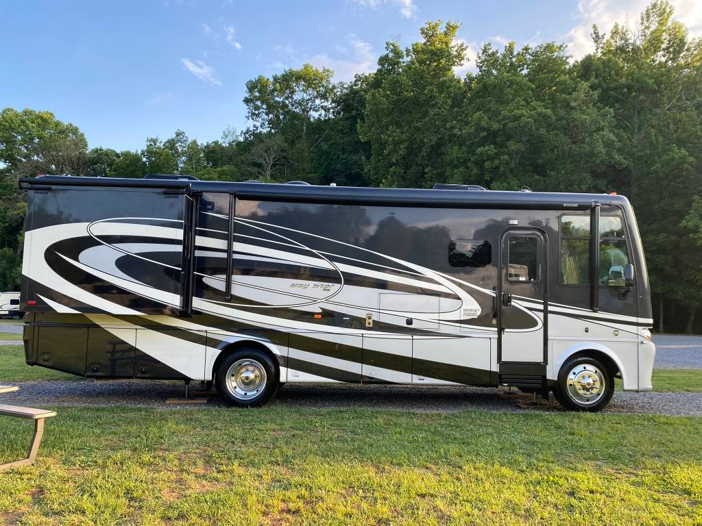 We are selling this due to health reasons. This motorhome has been lovingly cared for and it shows! One owner. Has 25850 low miles. Never smoked in, There are warranties that are transferable which include: Tire Shield Road Hazard coverage and Coach-Net for any problems that may occur including simple locked out without your keys to major need of anything that should go wrong. Has been meticulously maintained by my husband. Brand New front AC unit installed 03/2022. Amazing VALUE for this Beautifully maintained 2017 Newmar 3124 Coach!!! Very spacious and roomy 31 feet, 11 inches!! Perfect for road trips, state parks that have tight spots, and even long stays. In excellent condition with desirable on trend color schemes of black. white and greys! Carpet was always covered when we traveled. Mattress was protected with cover. Original bedding still new+ stored. King master suite that has slides on both sides! Full storage under the King bed. Entire wall of storage closets and drawers opposite bed. Has a full wall slide on the drivers side which extends from the drivers seat to the back of the coach. Hydraulic leveling system, 50 AMP, slide awnings, new coach batteries, lighted outside storage compartments, passenger work station, pull-out pantry shelves, tinted windshield, custom made block out front and side cab screens, skylight in bathroom, slide-out covers, LED ceiling lights, door-step storage, DVD players, walkable roof decking, wind sensor outdoor full awning and more.