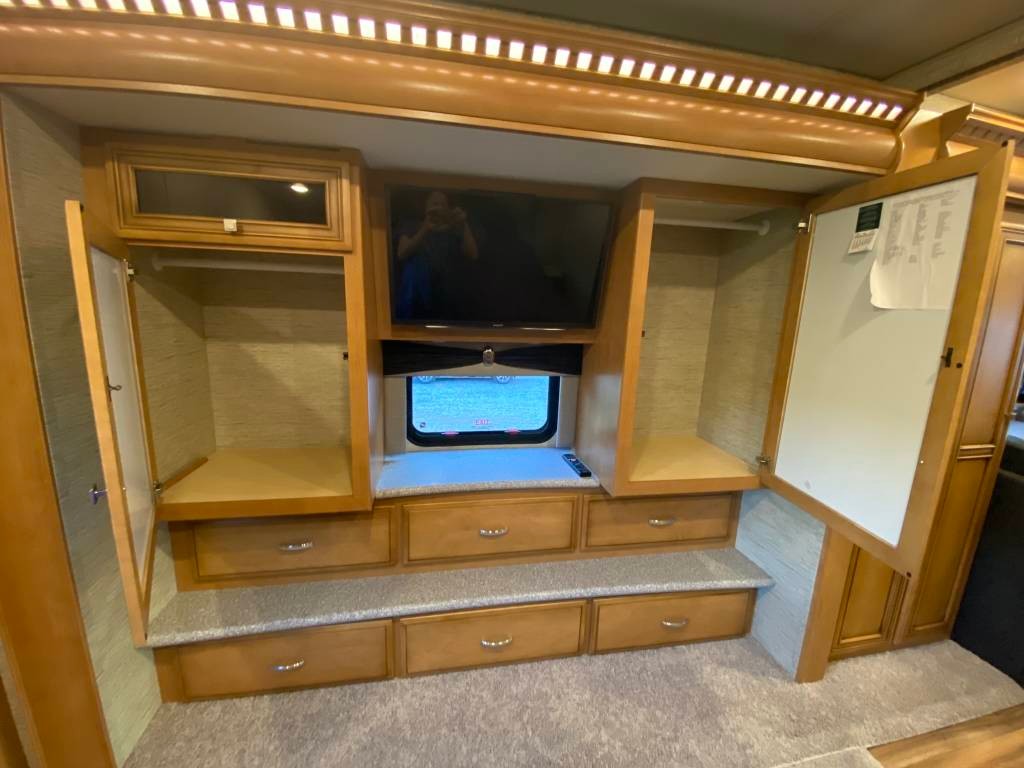 In ADDITION, this coach has MANY upgrades and options added to the standard pricing by NEWMAR including Winegard Road Trip Satellite, 2 A/C units, rear ladder, exterior mirrors with defrost and remote control, Sienna maple glazed cabinets with Sienna flooring. Intrigue Interior decor package. 84″ Hide-a-bed sofa (not jackknife), 6 way driver seat, electric fridge , convection/micro combo, 2 blue ray players , 2 interior Sony TV’s and one exterior Sony TV, 4000 watt generator, rear and side view cameras displayed onto rear view monitor screen, Sirius XM capability with antenna, rear bedroom back window, Fantastic power roof and awning w rain sensor and cover in kitchen and bath, 15M Penguin Heat Pump, polar package, solar prep with six guage wire from roof to house battery compartment. Many extras are included are: Custom made sun screen protectors to reduce the heat and protects the front cab from the sun. Full body cover, 50 amp electrical cords and a No Freeze water hose.