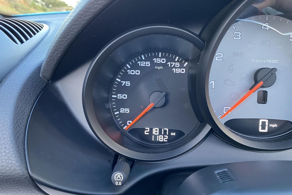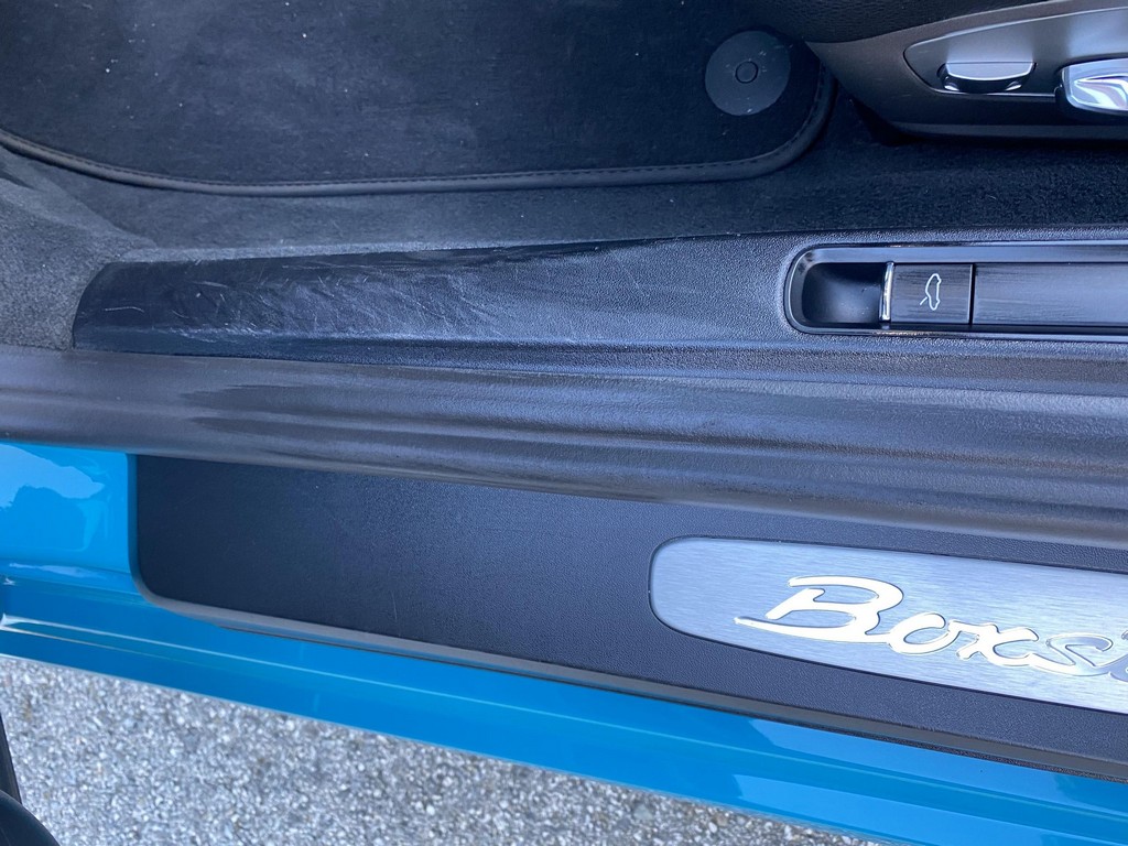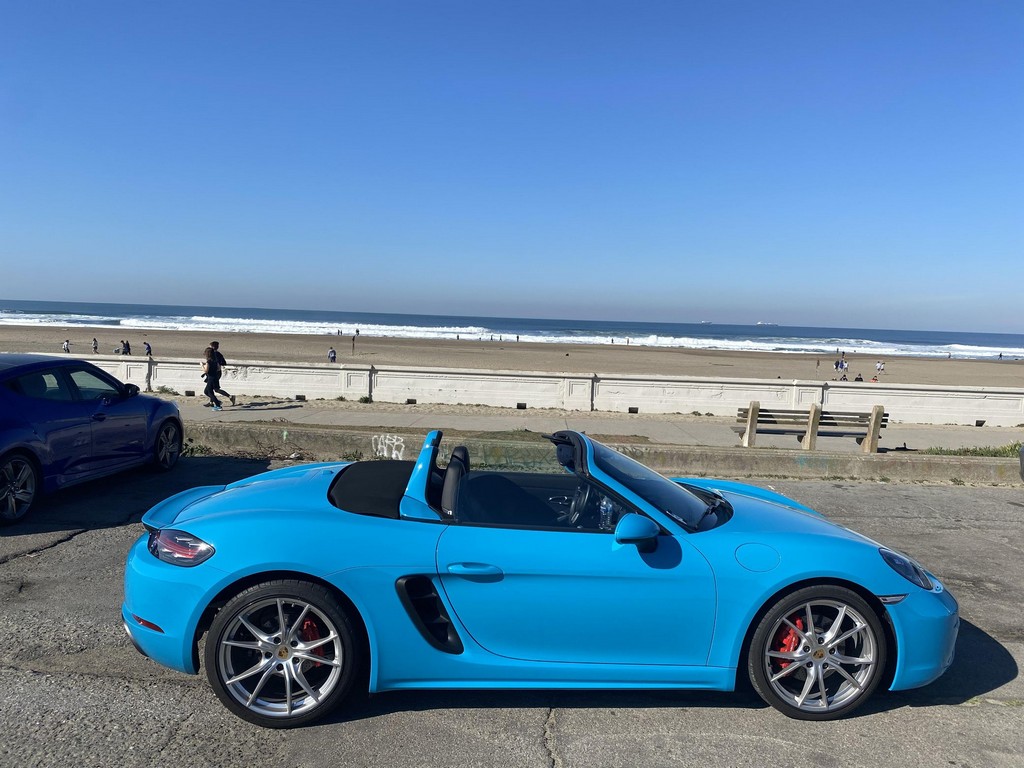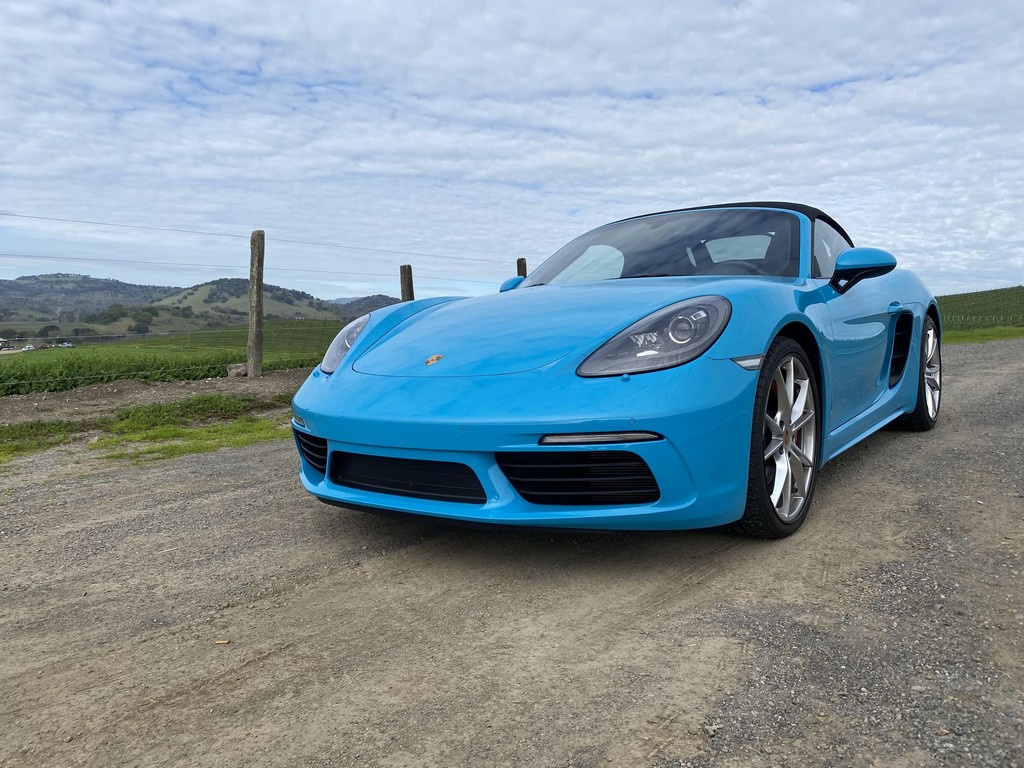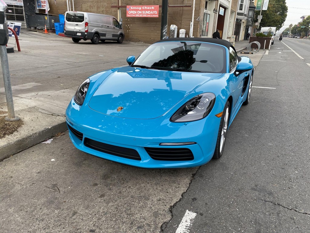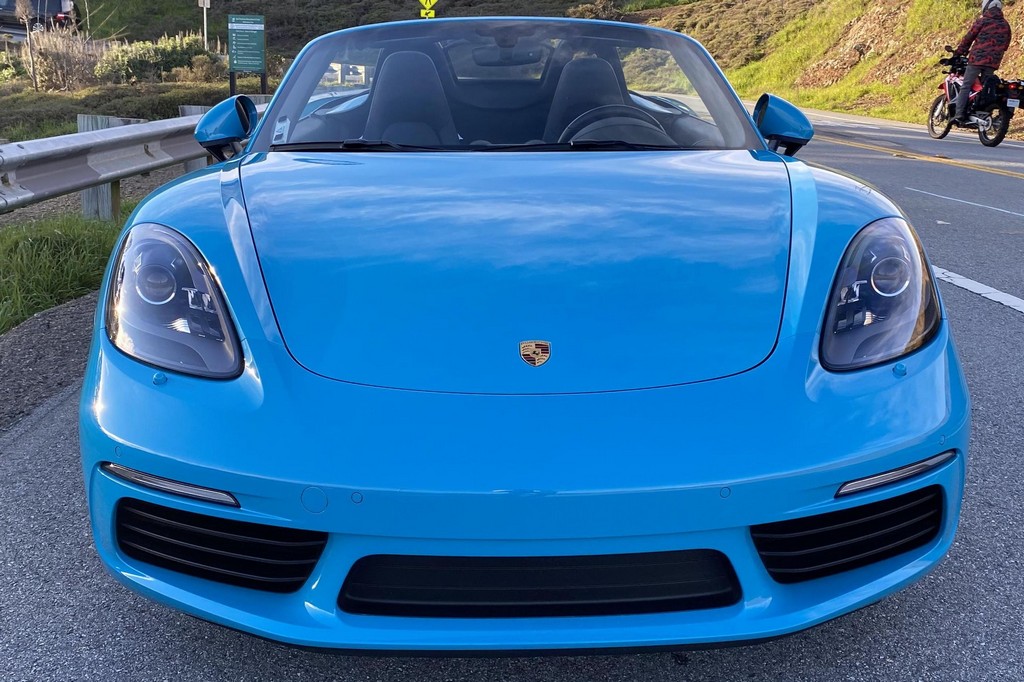 THIS… is a 2017 Porsche Boxster S, finished in Miami Blue with a black soft top and a black interior. The attached Carfax history report shows no accidents or mileage discrepancies in this Boxster’s past. Factory equipment includes the Premium Package Plus, which adds bi-xenon PDLS adaptive headlights, power-adjustable heated and ventilated sport seats with memory function, dual-zone automatic climate control, ambient lighting, rain-sensing wipers, and the Porsche Entry & Drive keyless system. Other notable equipment includes 20-inch Carrera S wheels, a body-colored roll bar, black sport tailpipes, and more as listed below. Modifications reported by the seller are limited to Euro-spec white side reflectors and a set of AlloyGator wheel curb protectors. The “982” generation of the mid-engine Porsche 718 Boxster introduced a new range of turbocharged 4-cylinder engines, replacing the 6-cylinder powerplants of previous Boxster models. The intent was to increase performance and efficiency but retain the nimble handling and distinct styling of past Boxsters. Power comes from a turbocharged 2.5-liter flat-4 engine, rated at 350 horsepower and 309 lb-ft of torque. Output is sent to the rear wheels via a 6-speed manual transmission.