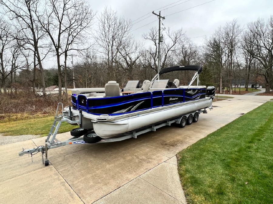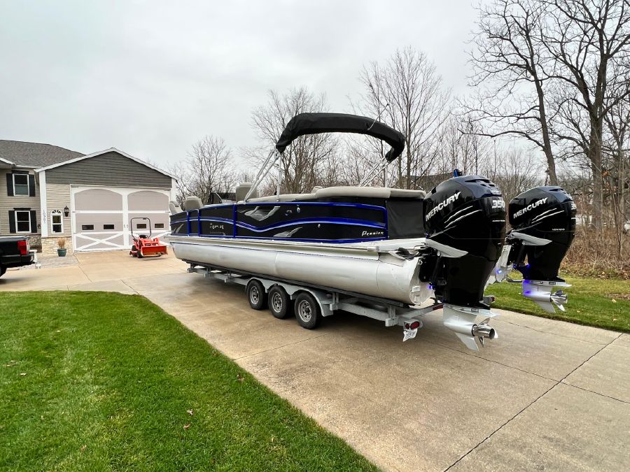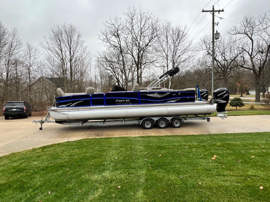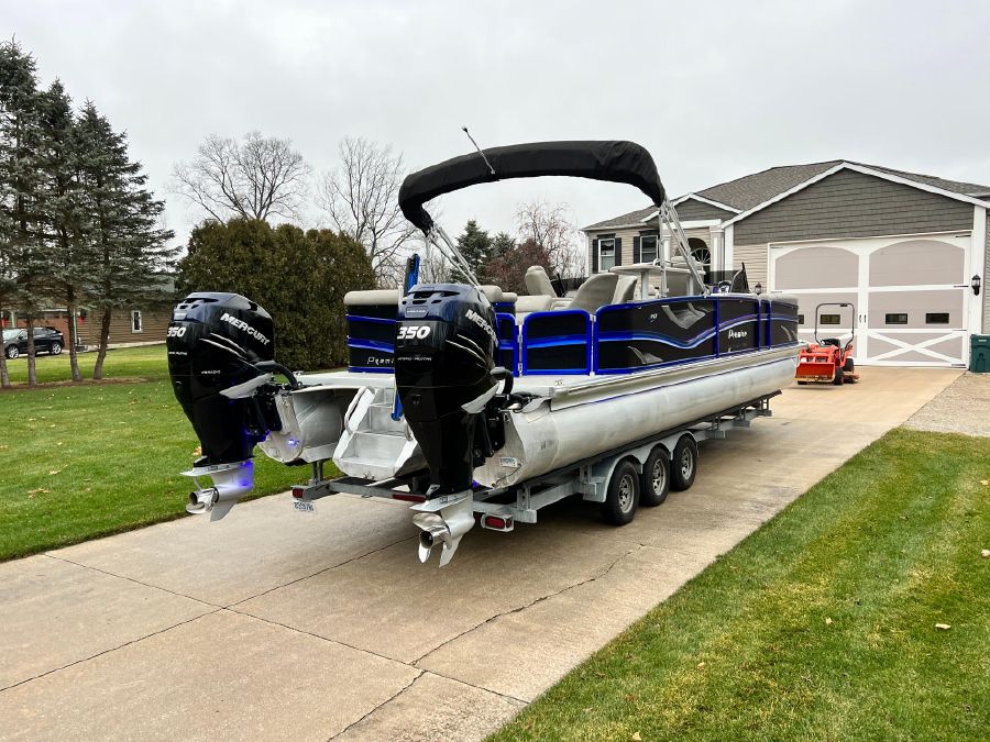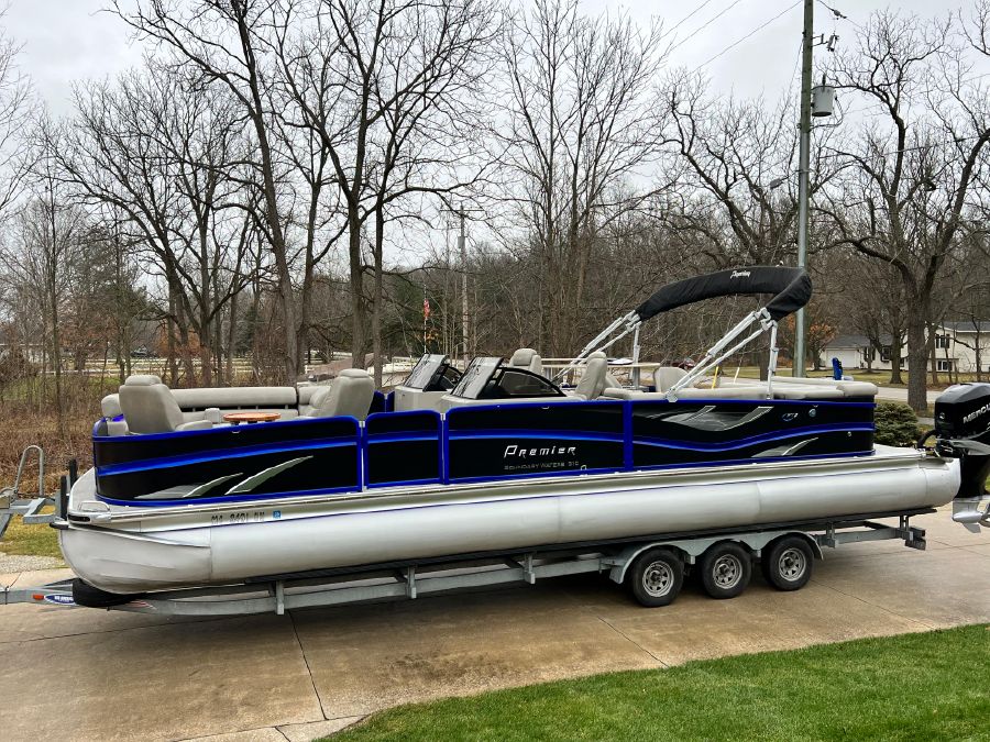 The ultimate Tri-toon! 2017 Premier 310 Boundary Waters. 10’ Beam. Loaded. Twin 350 Verados w/ 800hrs, joystick, and Skyhook. Canvas enclosure for those early spring and fall cruises. Boat is a one owner custom build. Trailer included. Very well cared for and needs nothing