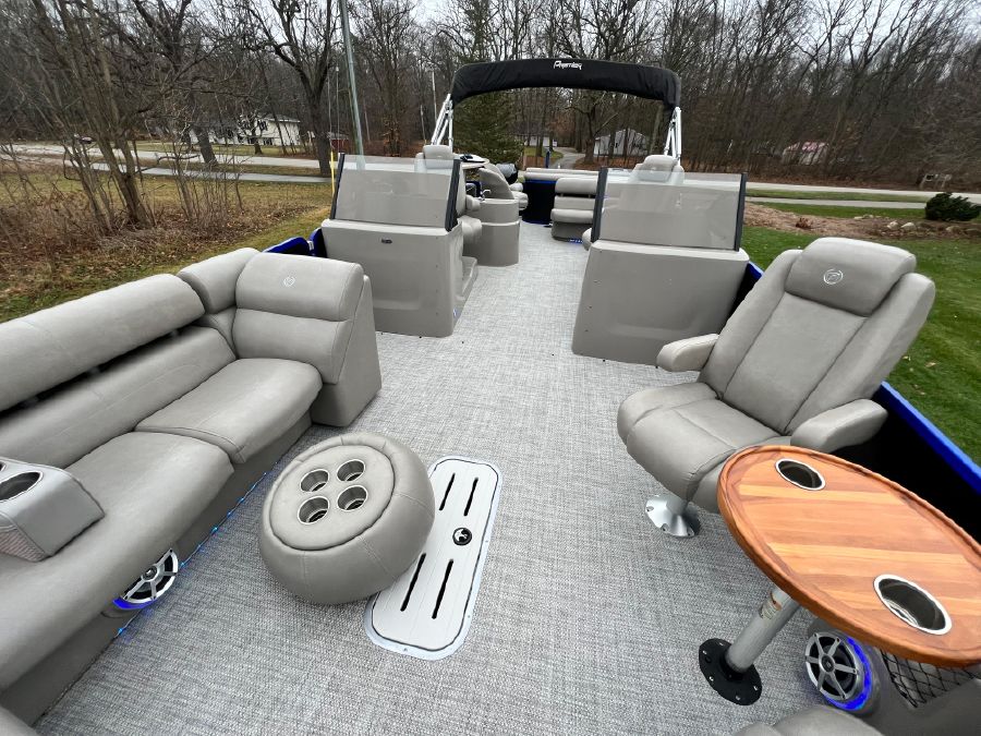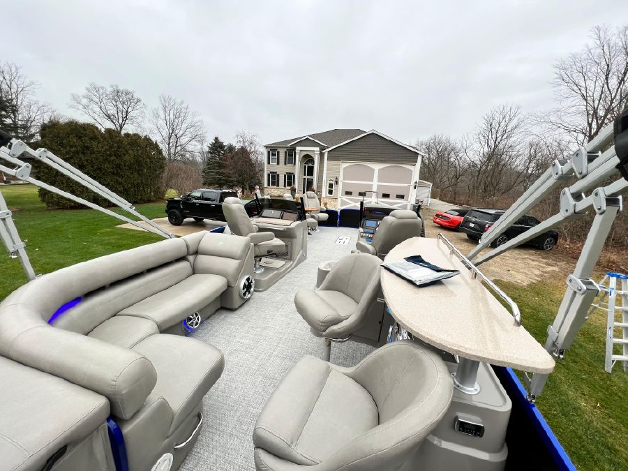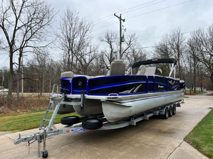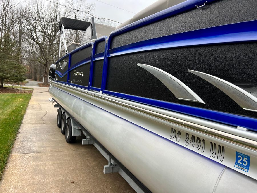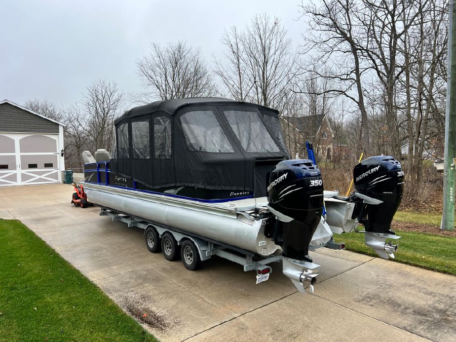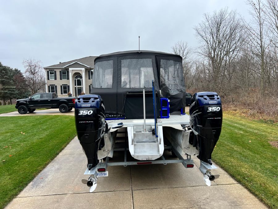 The ultimate Tri-toon! 2017 Premier 310 Boundary Waters. 10’ Beam. Loaded. Twin 350 Verados w/ 800hrs, joystick, and Skyhook. Canvas enclosure for those early spring and fall cruises. Boat is a one owner custom build. Trailer included. Very well cared for and needs nothing