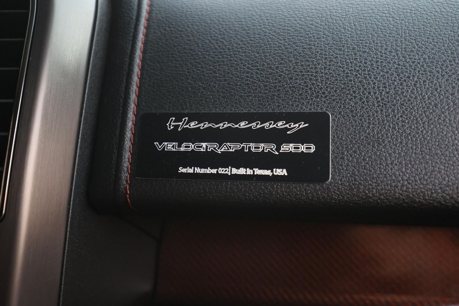 THIS… is a 2018 Ford F-150 Raptor, finished in Shadow Black with a black interior. The attached Carfax history report lists no mileage discrepancies in this truck’s past. It also shows just one owner prior to the selling delays acquisition. Built by Hennessey, this VelociRaptor is powered by a twin-turbocharged 3.5-liter V6 tuned to produce 500 horsepower, a 50-horsepower increase over a non-modified Ford F150 Raptor. It also features a 3-inch suspension lift, an array of model-specific exterior badges, and embroidered headrests, among other modifications made by the Texas-based tuner. Hennessey builds a small handful of VelociRaptors annually; this is number 22, according to a plaque in the engine bay and on the dash.