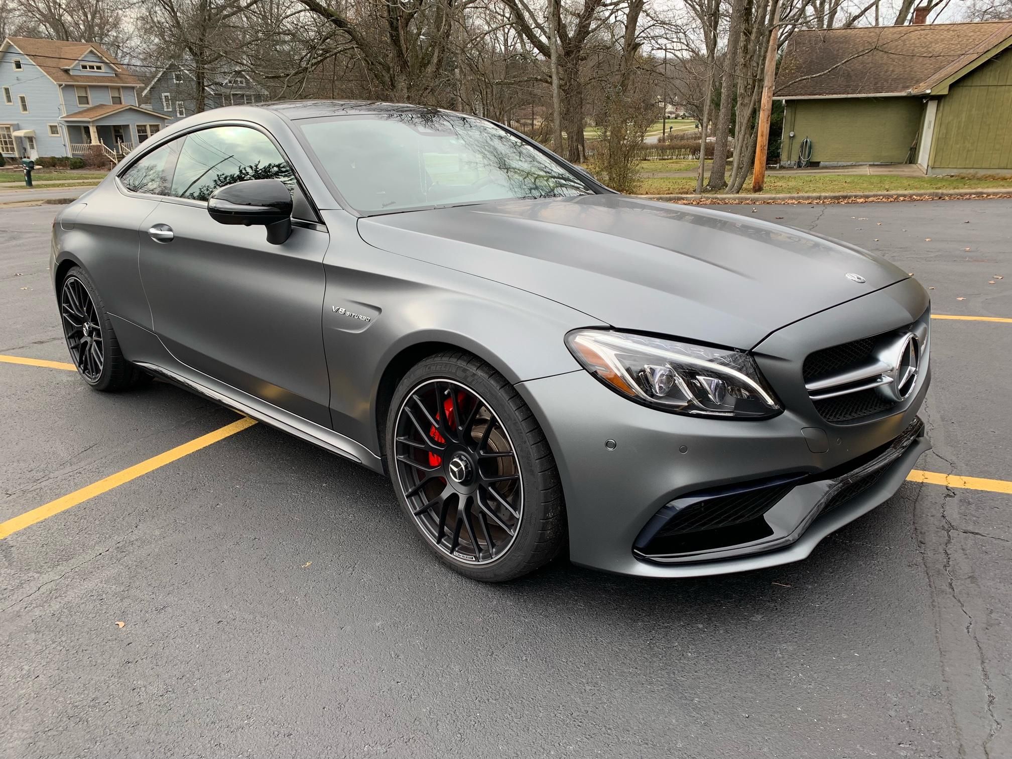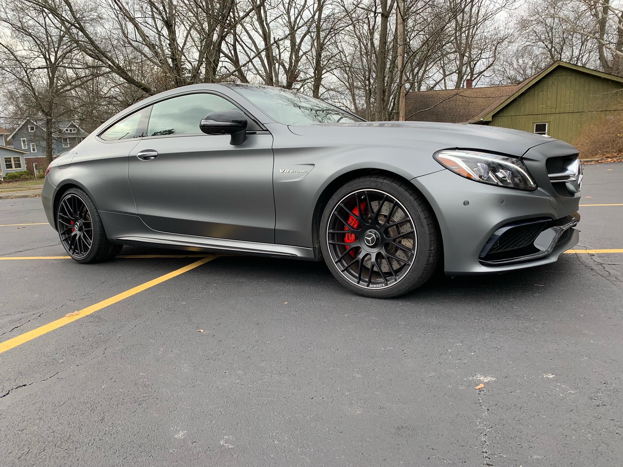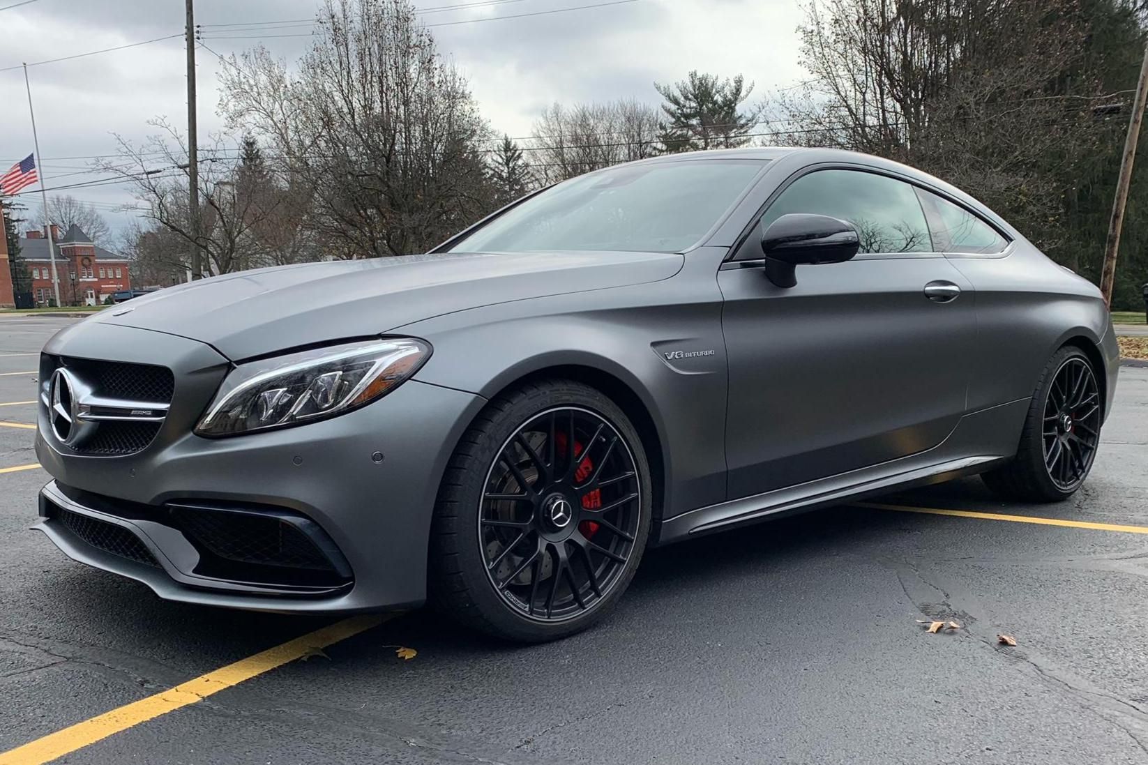 THIS… is a 2018 Mercedes-AMG C63 S Coupe finished in Designo Selenite Grey Magno with a Red Pepper/Black interior. No accidents or mileage discrepancies in this C63’s past. It also confirms that this is a one-owner car. It comes equipped with the Advanced Lighting Package (adaptive LED headlights, ambient lighting, AMG illuminated door sills), the Multimedia Package (COMAND infotainment with 8.4-inch display, touchpad and voice control, navigation system), the AMG Night Package (body and window trim in black, black chrome-plated exhaust tailpipes), the Advanced Parking Assist Package (Parktronic with Active Parking Assist, Surround View system), and more as detailed below. The seller reports no modifications. Mercedes-AMG introduced the “W205”-based C63 for the 2015 model year, shortly after it morphed into a sub-brand within Mercedes-Benz. Offered as a sedan and as a coupe, the C63 surfed the downsizing wave sweeping across the industry by trading displacement for forced induction, yet it was quicker and sharper to drive than its predecessor. Production ended in 2021, and Mercedes-AMG has confirmed that it won’t build another V8-powered C63. Power comes from a 4.0-liter twin-turbocharged V8, rated at 503 horsepower and 516 lb-ft of torque. Output is sent to the rear wheels via a 7-speed automatic transmission.