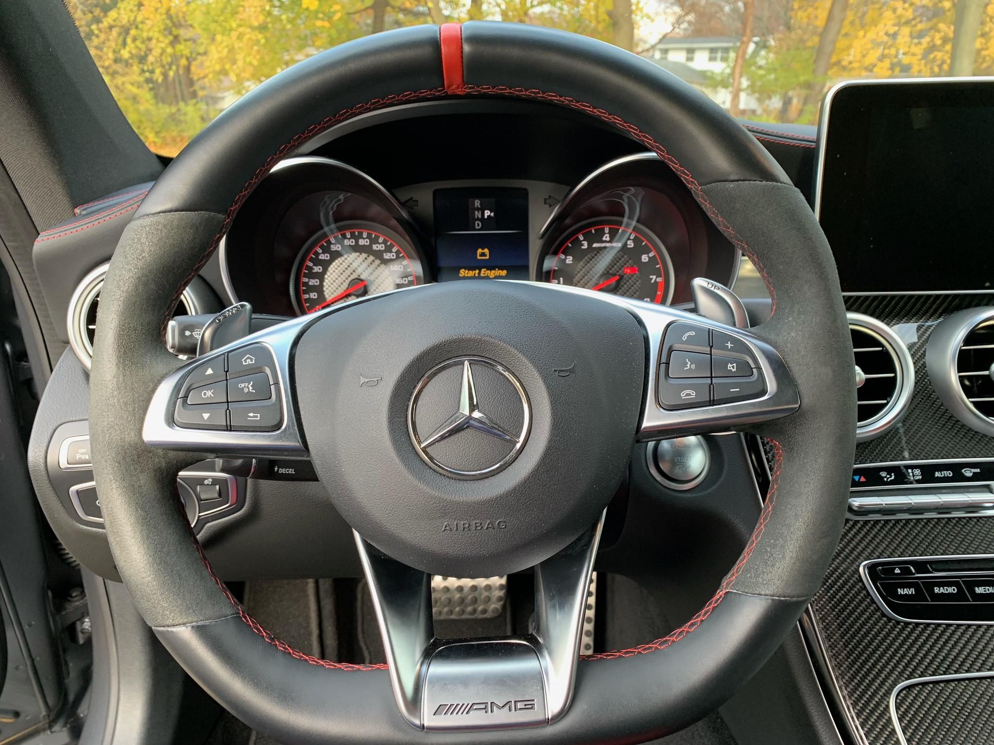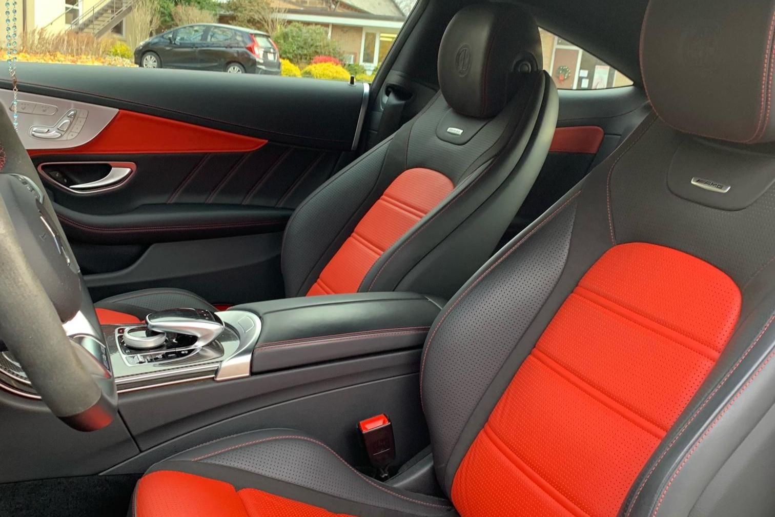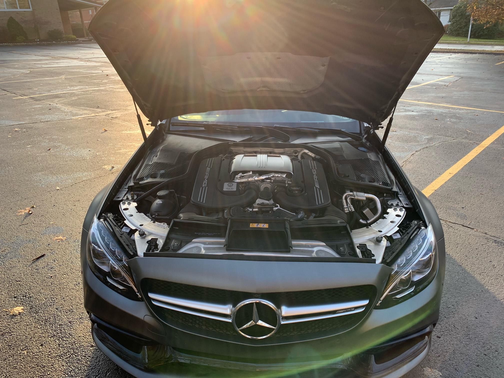 THIS… is a 2018 Mercedes-AMG C63 S Coupe finished in Designo Selenite Grey Magno with a Red Pepper/Black interior. No accidents or mileage discrepancies in this C63’s past. It also confirms that this is a one-owner car. It comes equipped with the Advanced Lighting Package (adaptive LED headlights, ambient lighting, AMG illuminated door sills), the Multimedia Package (COMAND infotainment with 8.4-inch display, touchpad and voice control, navigation system), the AMG Night Package (body and window trim in black, black chrome-plated exhaust tailpipes), the Advanced Parking Assist Package (Parktronic with Active Parking Assist, Surround View system), and more as detailed below. The seller reports no modifications. Mercedes-AMG introduced the “W205”-based C63 for the 2015 model year, shortly after it morphed into a sub-brand within Mercedes-Benz. Offered as a sedan and as a coupe, the C63 surfed the downsizing wave sweeping across the industry by trading displacement for forced induction, yet it was quicker and sharper to drive than its predecessor. Production ended in 2021, and Mercedes-AMG has confirmed that it won’t build another V8-powered C63. Power comes from a 4.0-liter twin-turbocharged V8, rated at 503 horsepower and 516 lb-ft of torque. Output is sent to the rear wheels via a 7-speed automatic transmission.